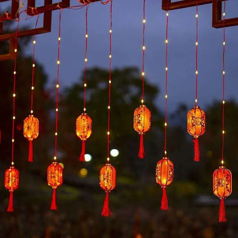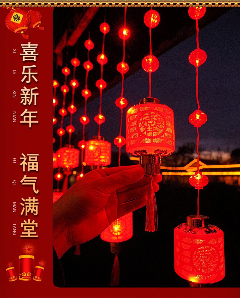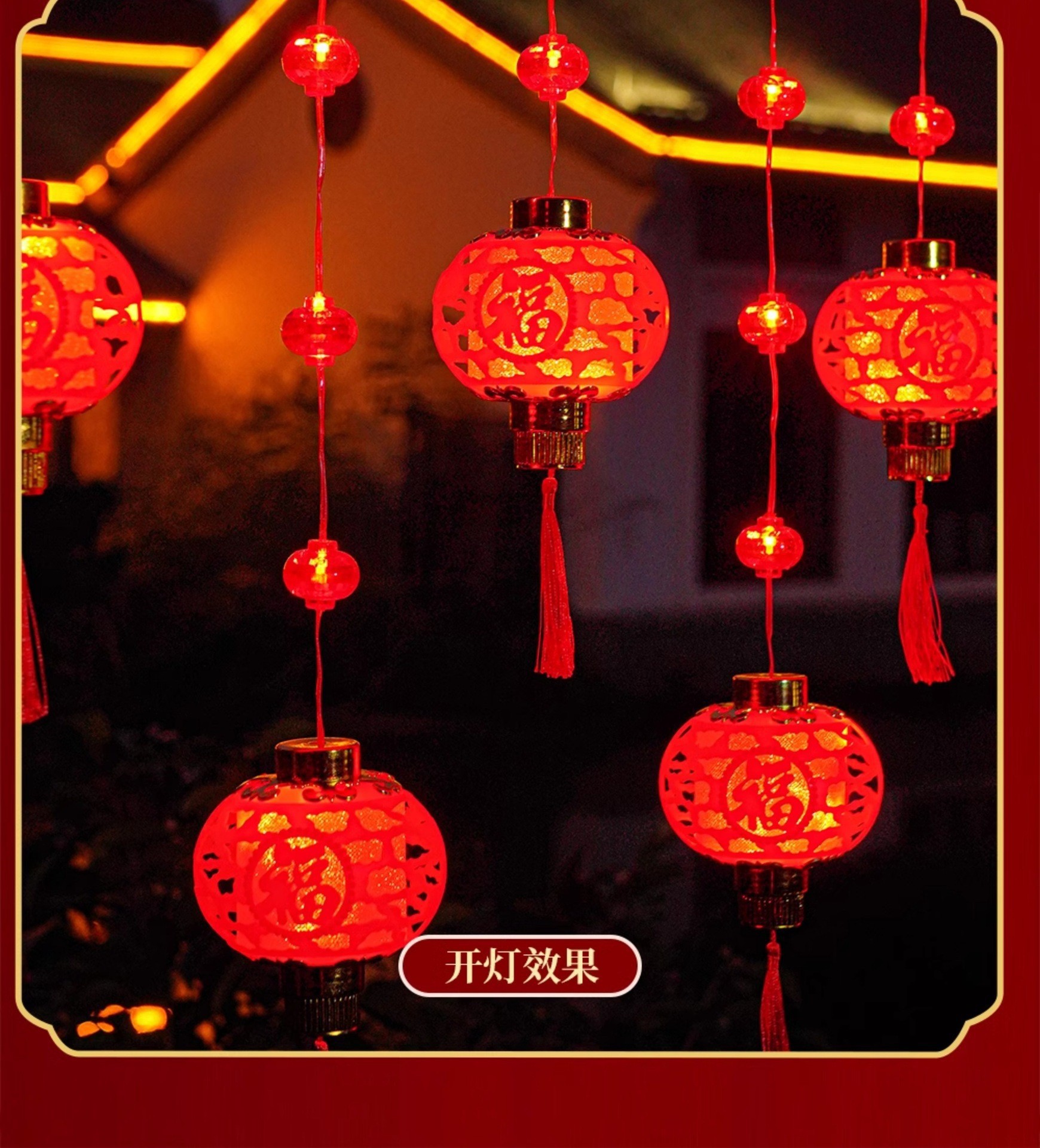 新款led皮线插电款福字灯笼春过年场景氛围布置彩灯春节庭院装饰