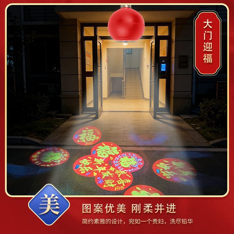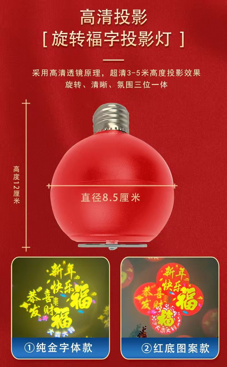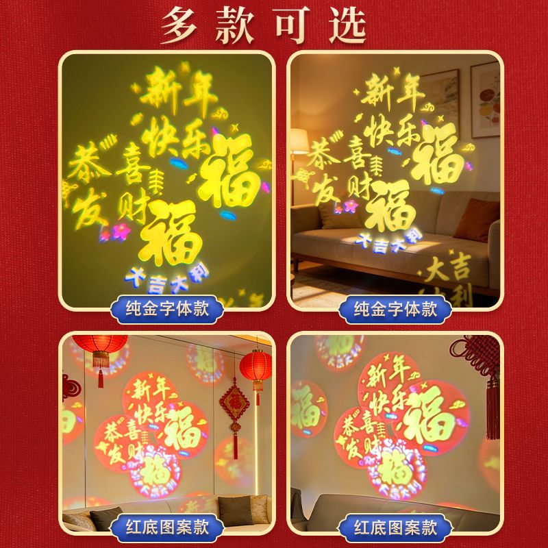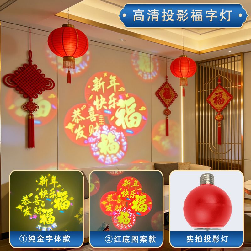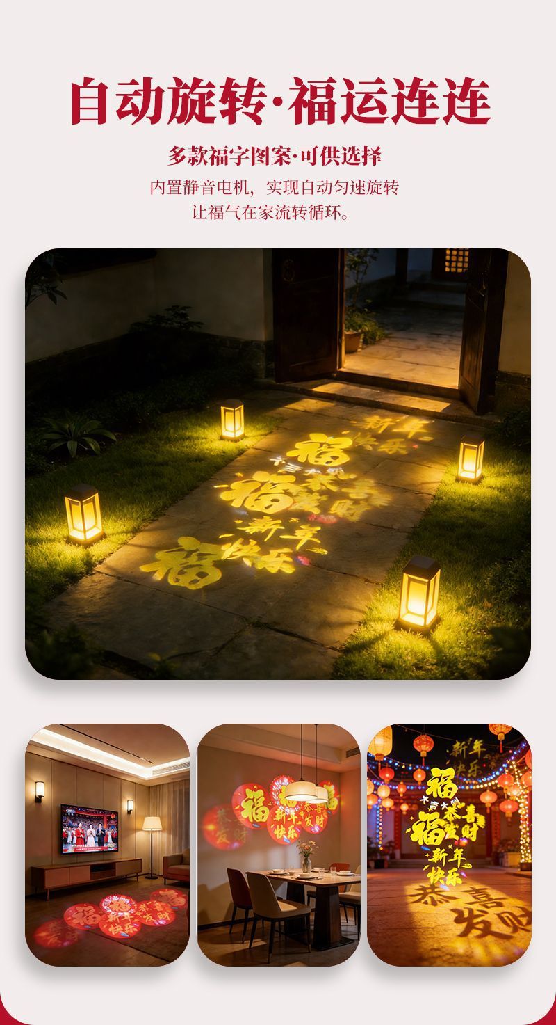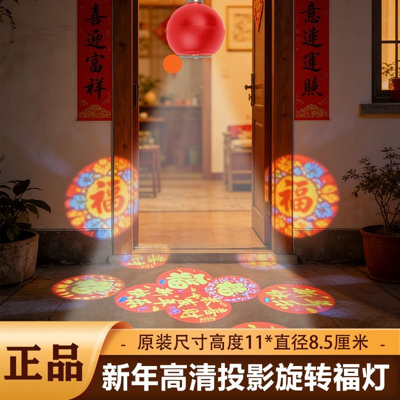 自动旋转投影灯七彩装饰灯新年喜庆过年led节日氛围高清福字灯笼