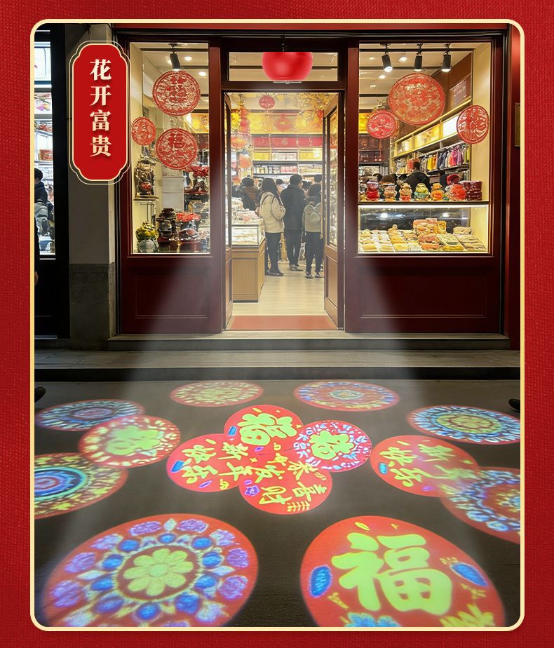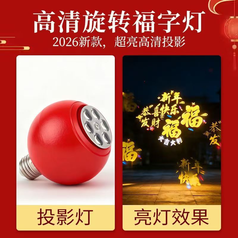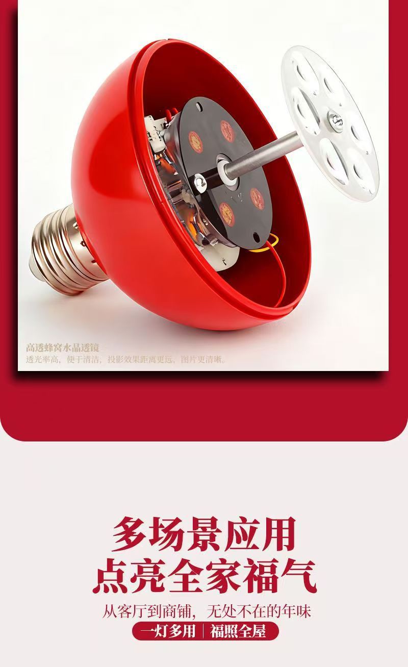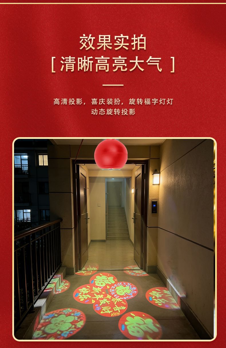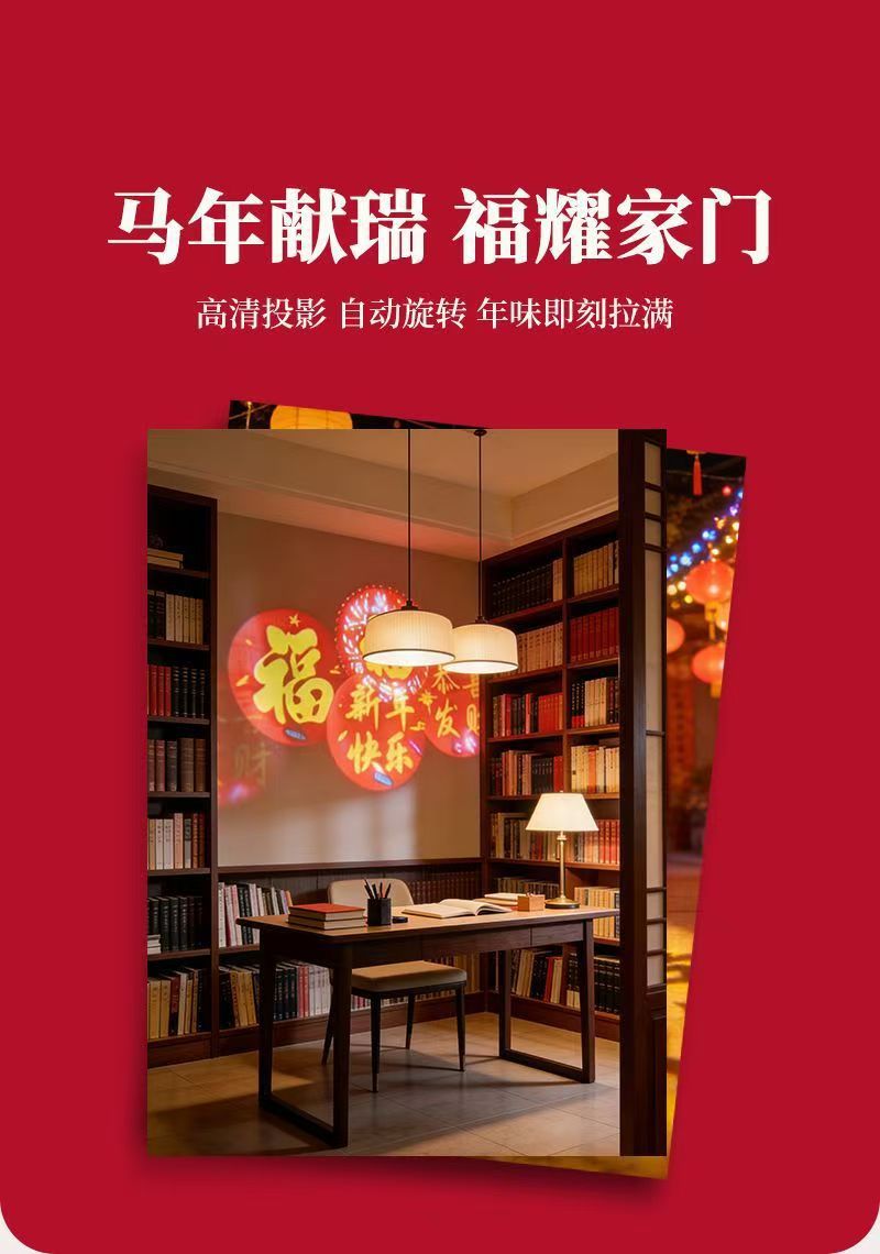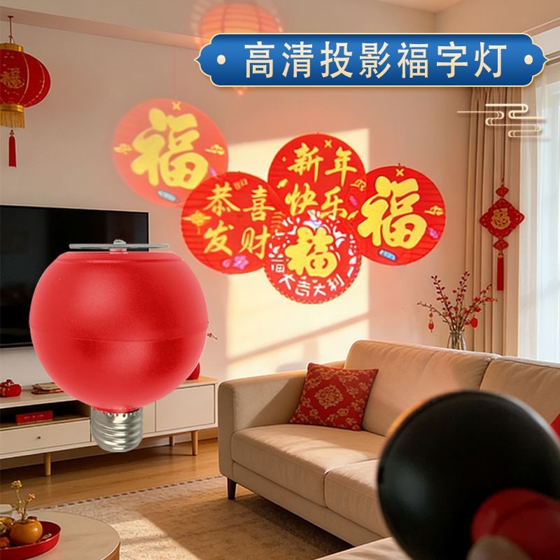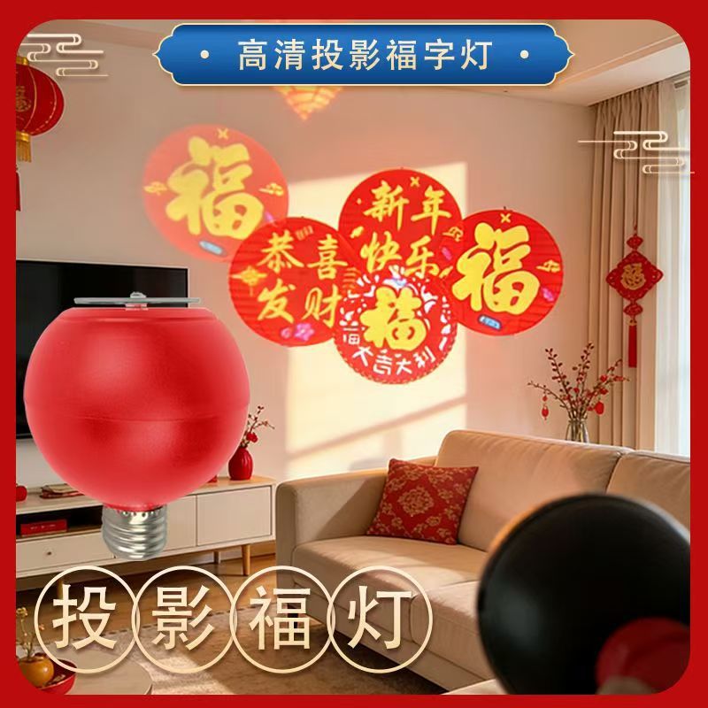 自动旋转投影灯七彩装饰灯新年喜庆过年led节日氛围高清福字灯笼