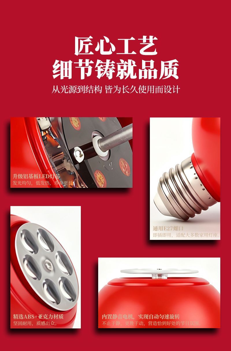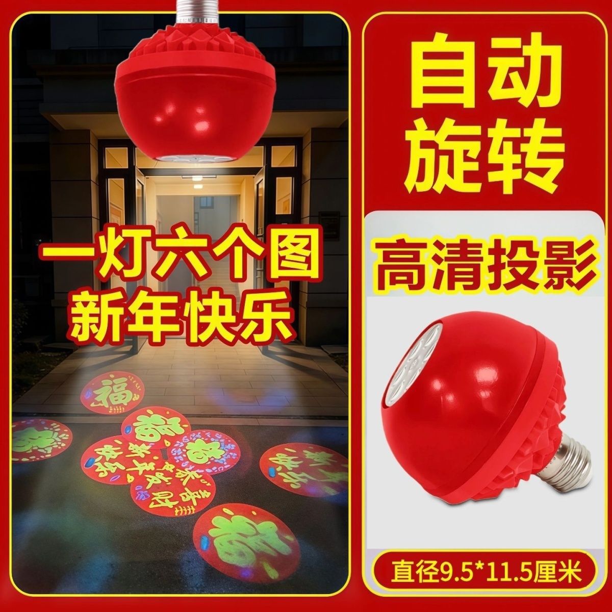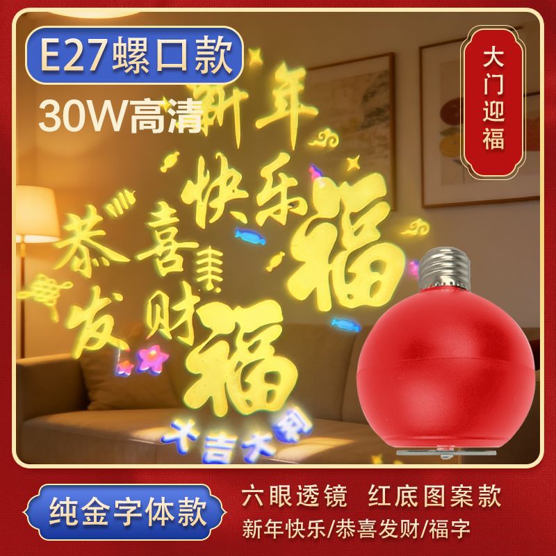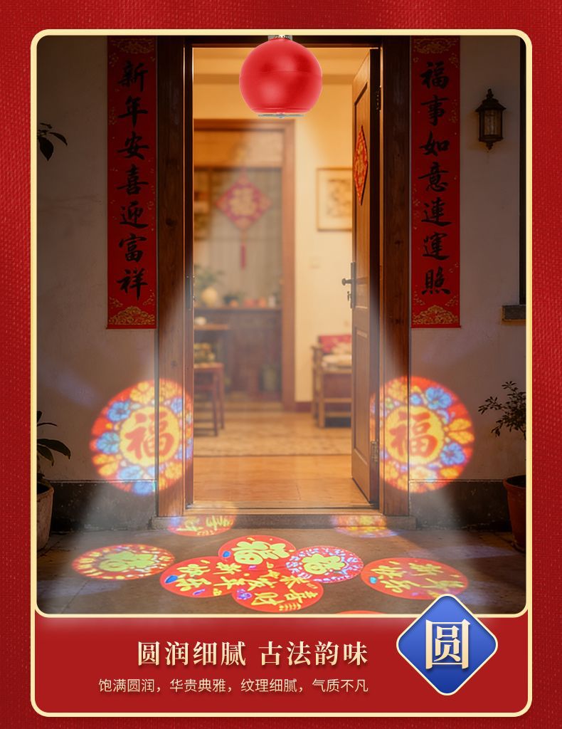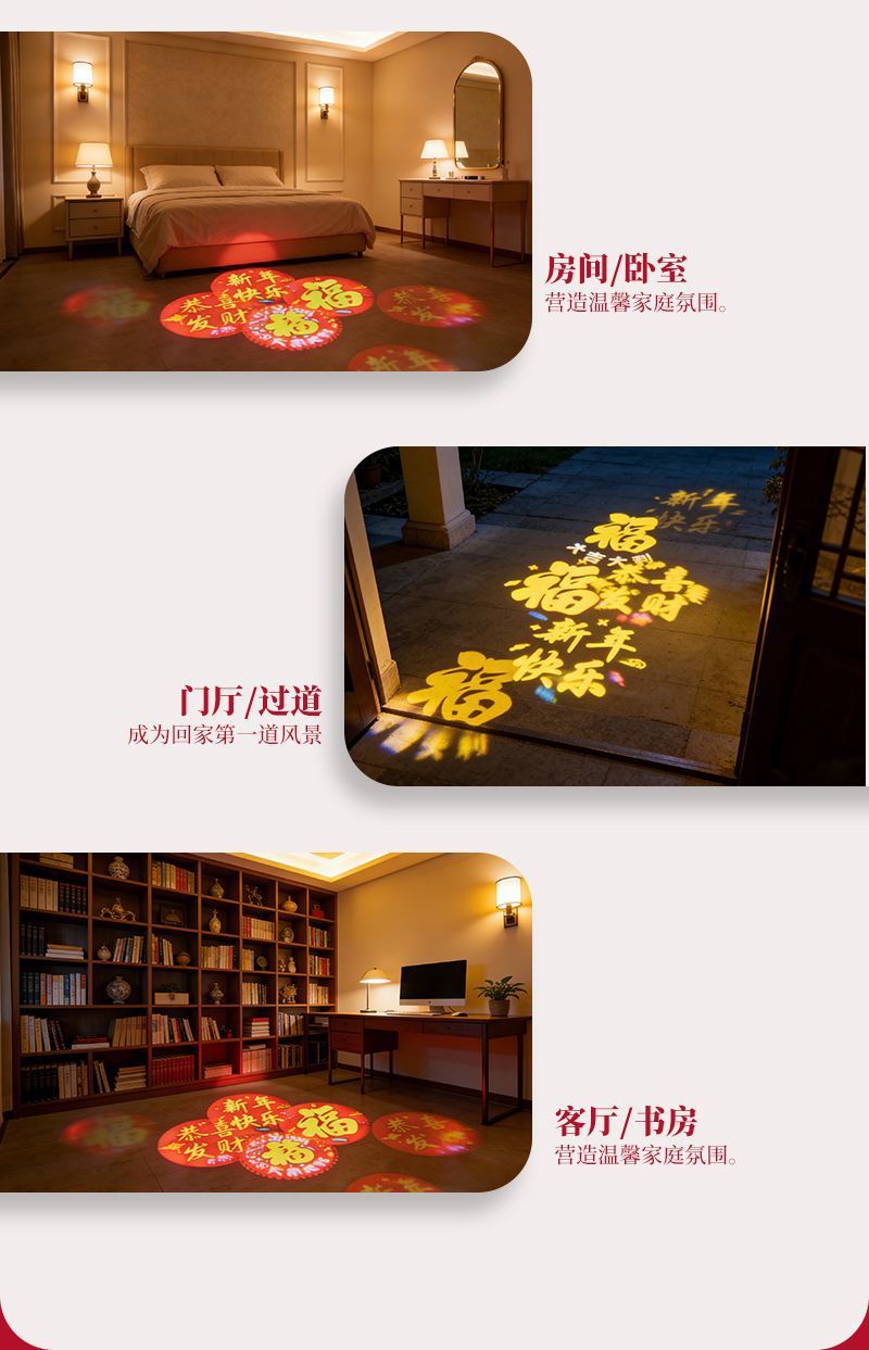 自动旋转投影灯七彩装饰灯新年喜庆过年led节日氛围高清福字灯笼