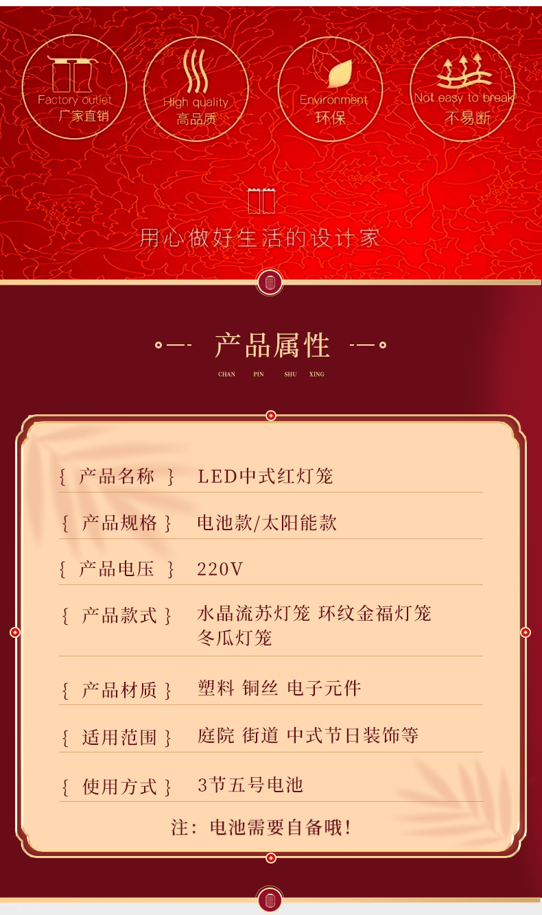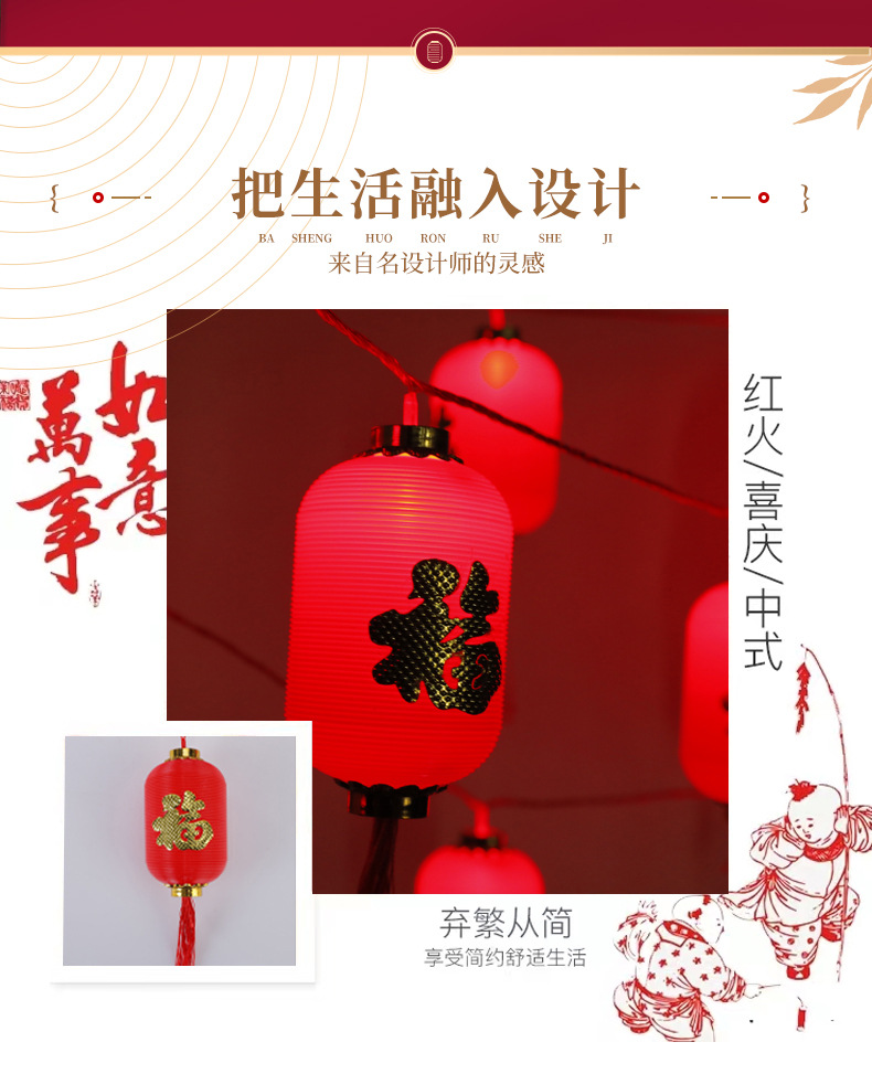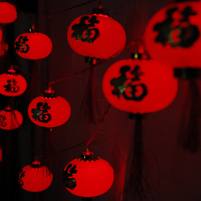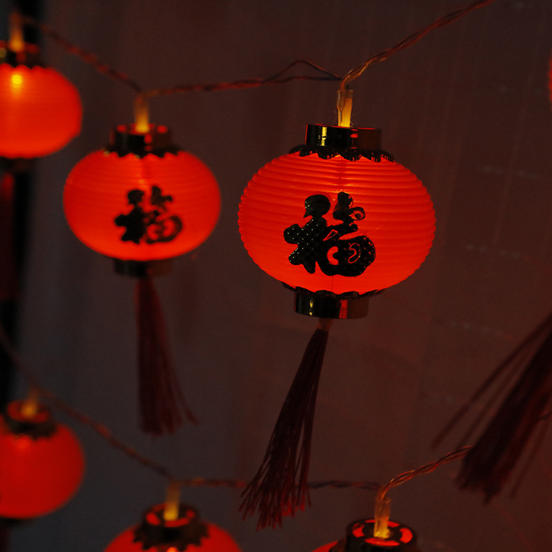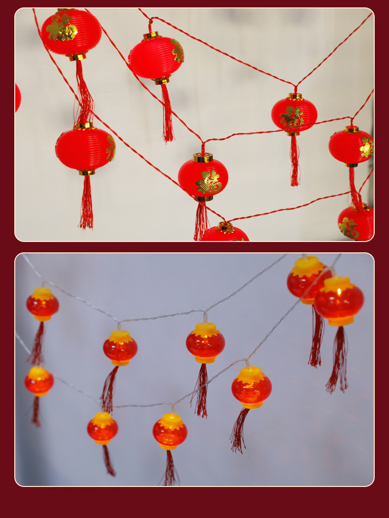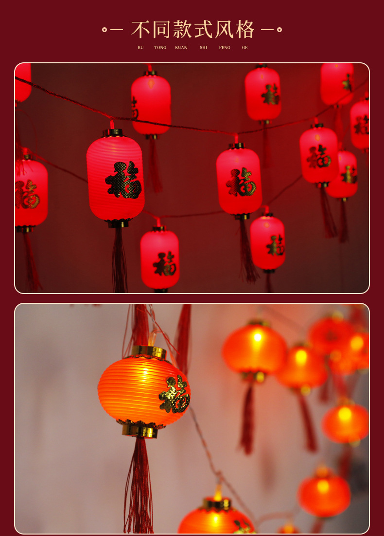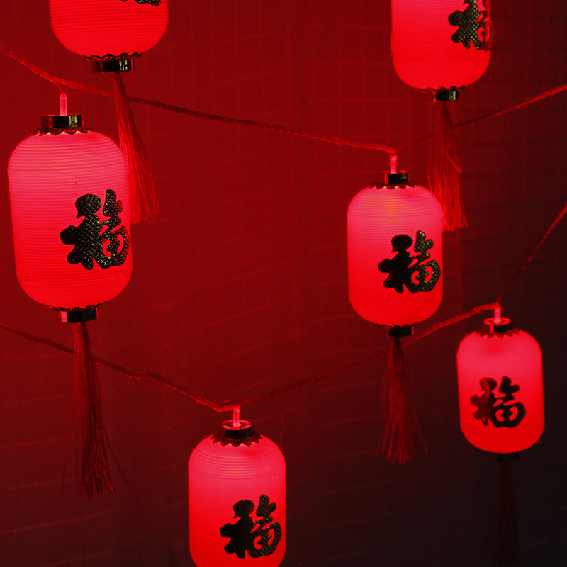 LED红灯笼灯串福字挂件春节新年彩灯装饰防水塑料户外发光小灯笼