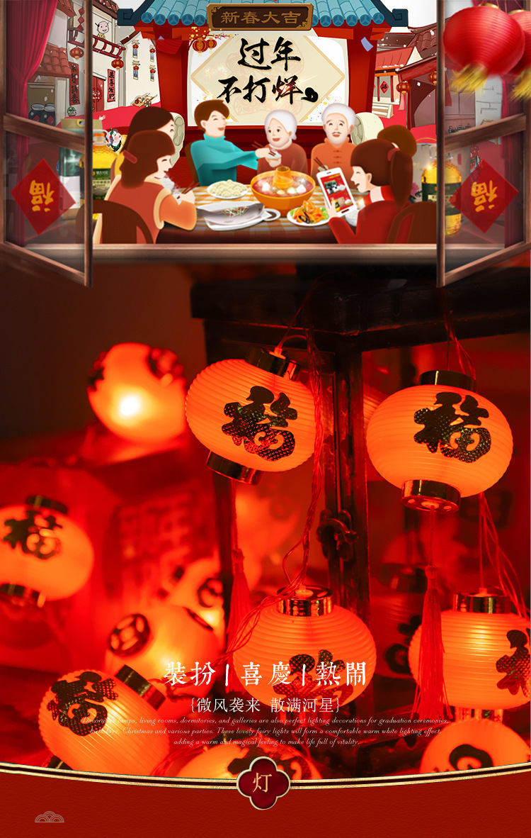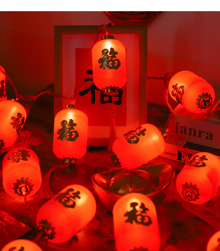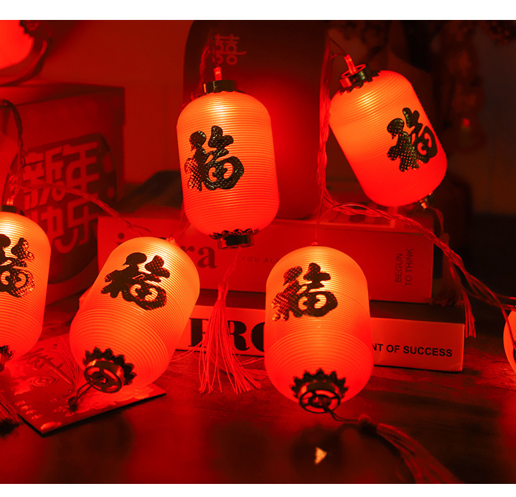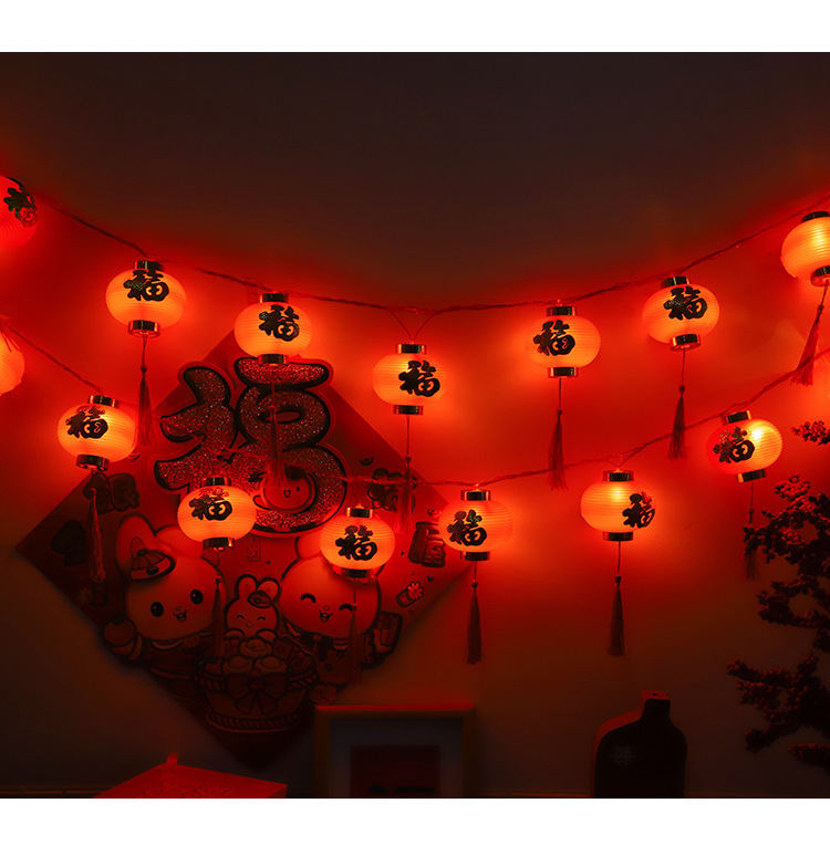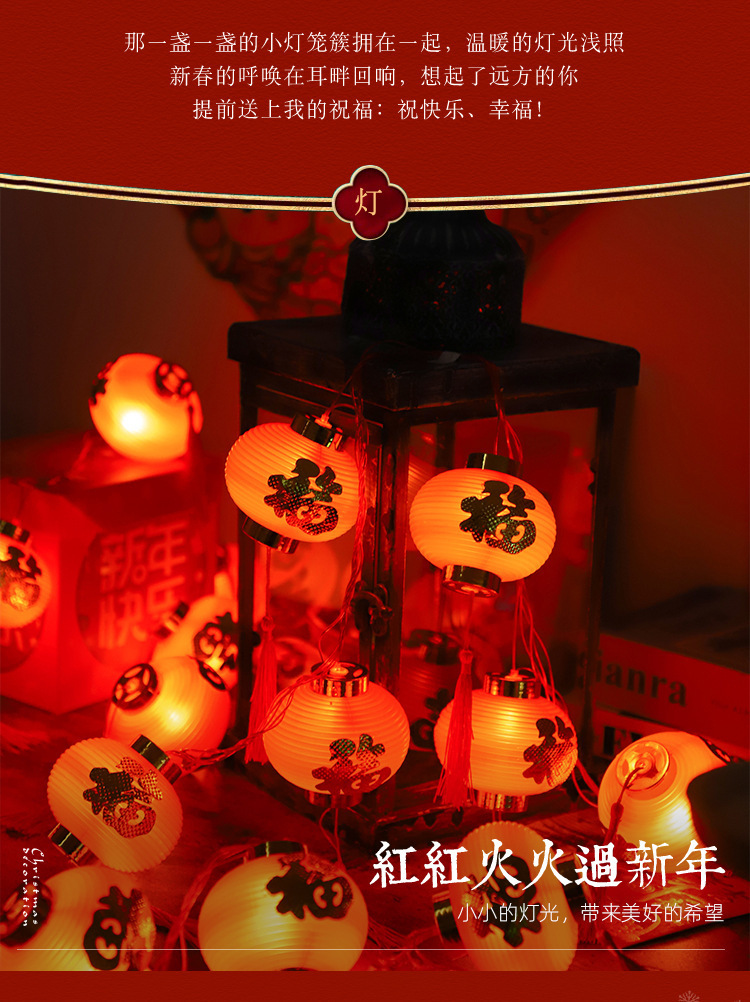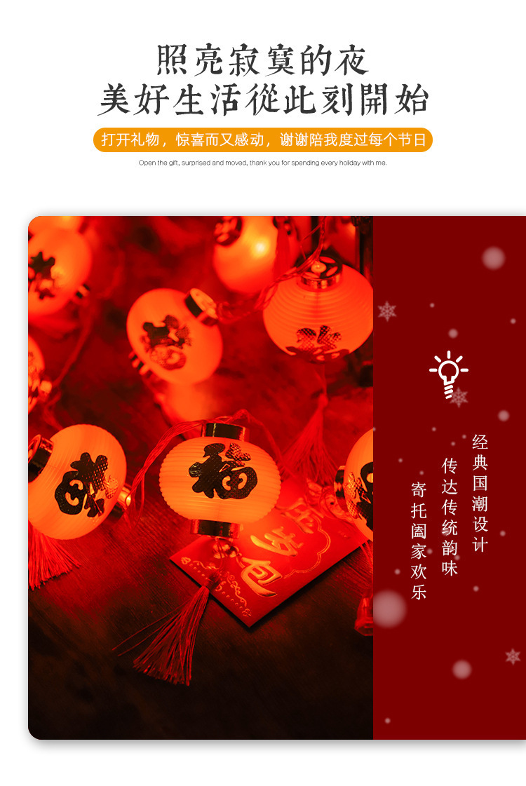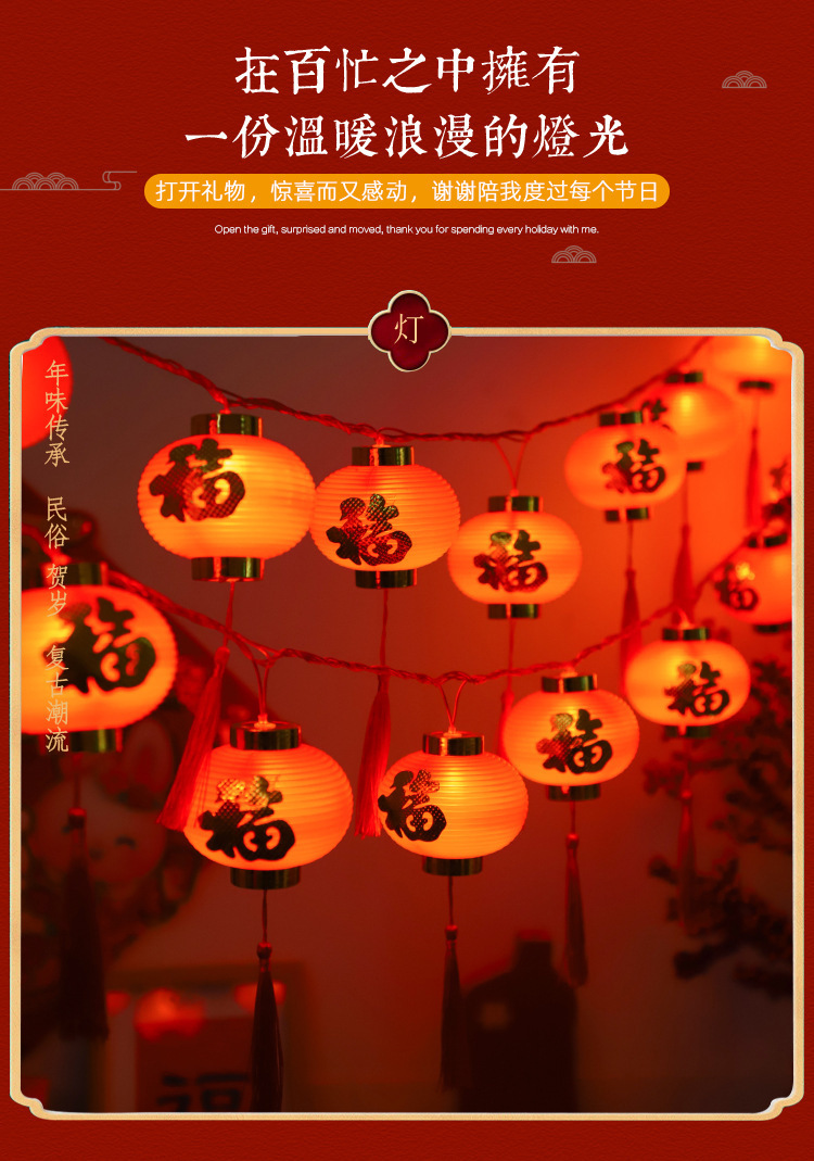 新年彩灯户外春节led过年布置福字小灯笼喜庆氛围装饰太阳能灯串