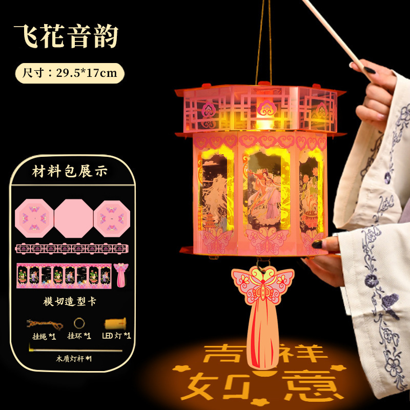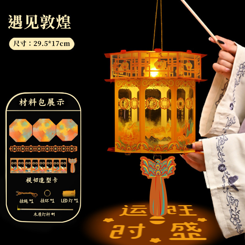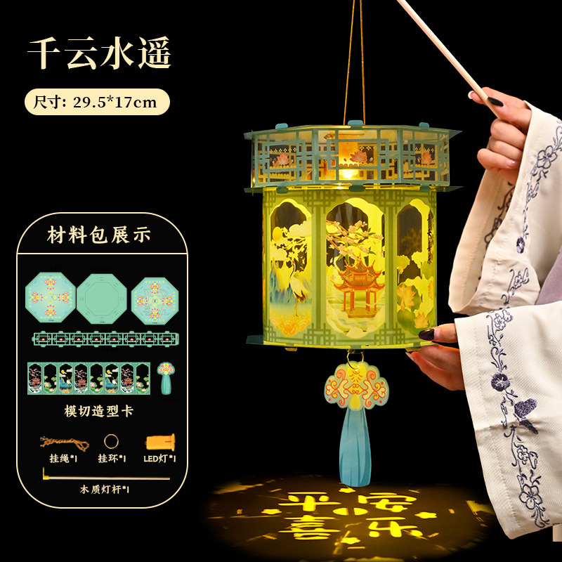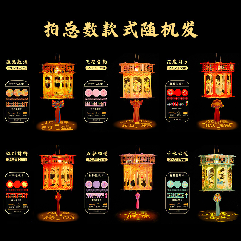新年灯笼儿童手提发光投影小灯笼 diy材料包国潮古风宫灯夜市摆摊