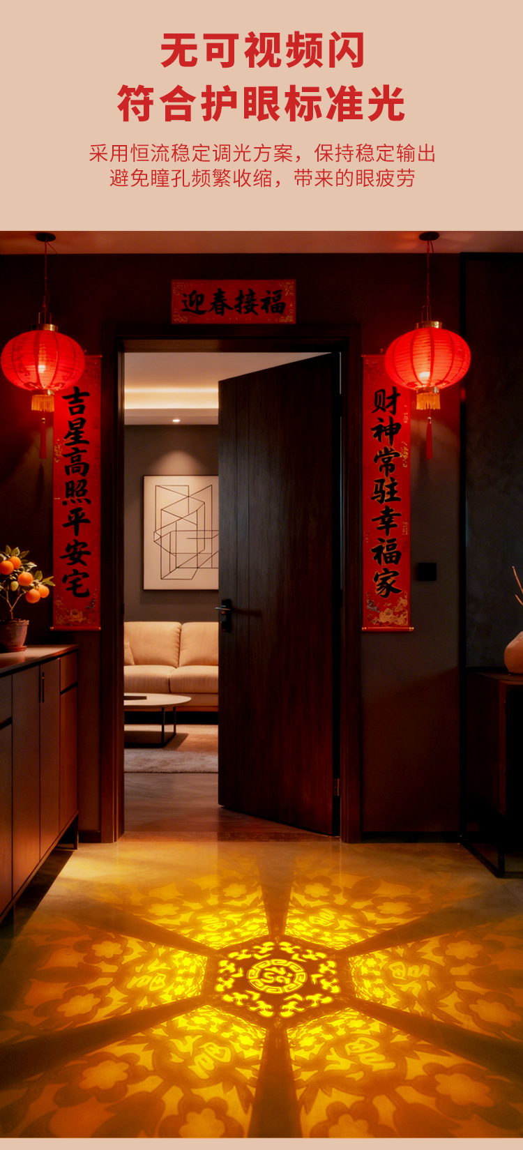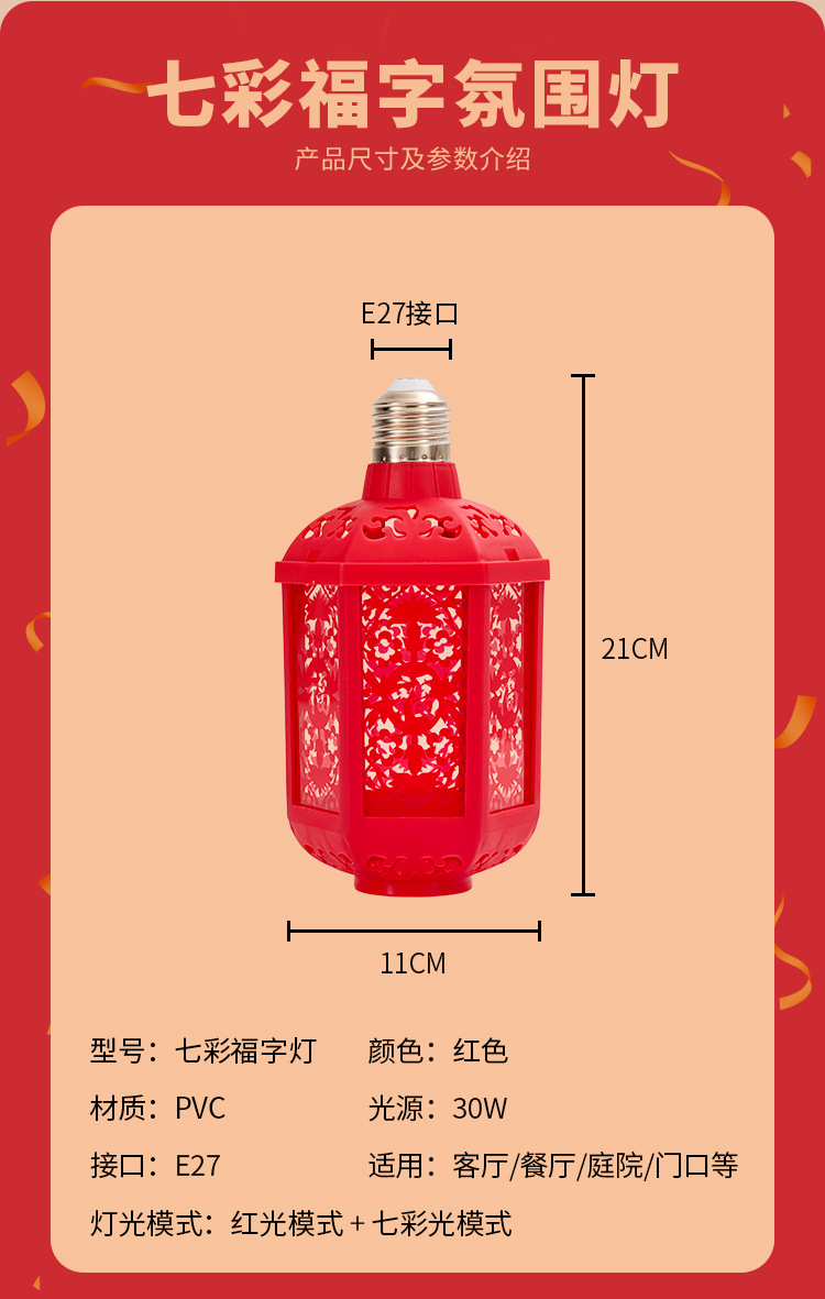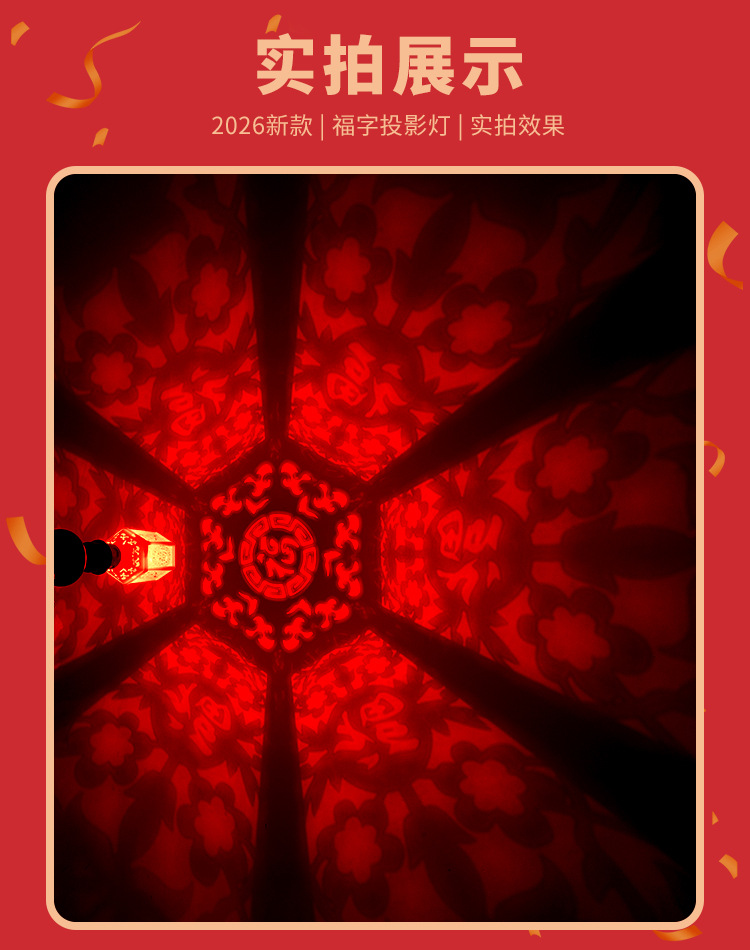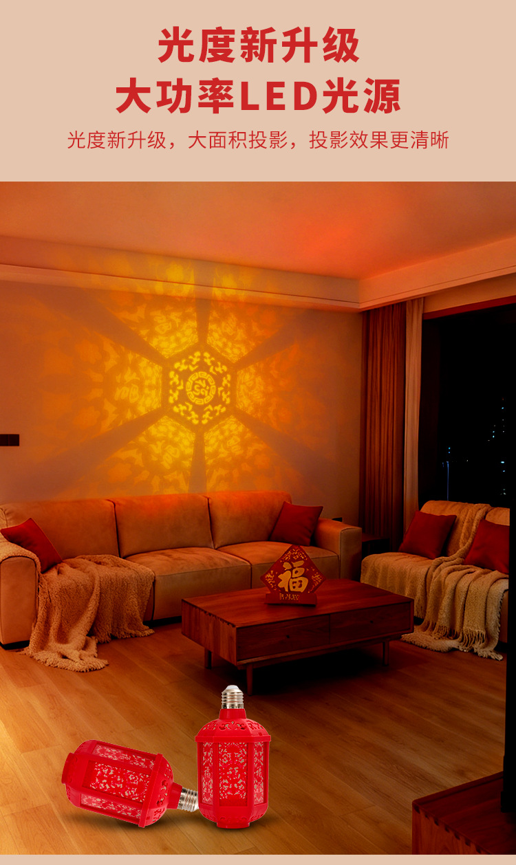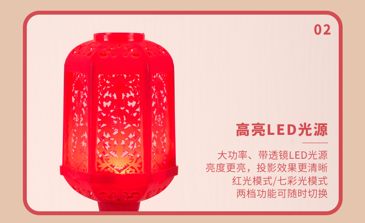 新年七彩福字灯提杆灯笼充电款投影灯E27螺口360度发光