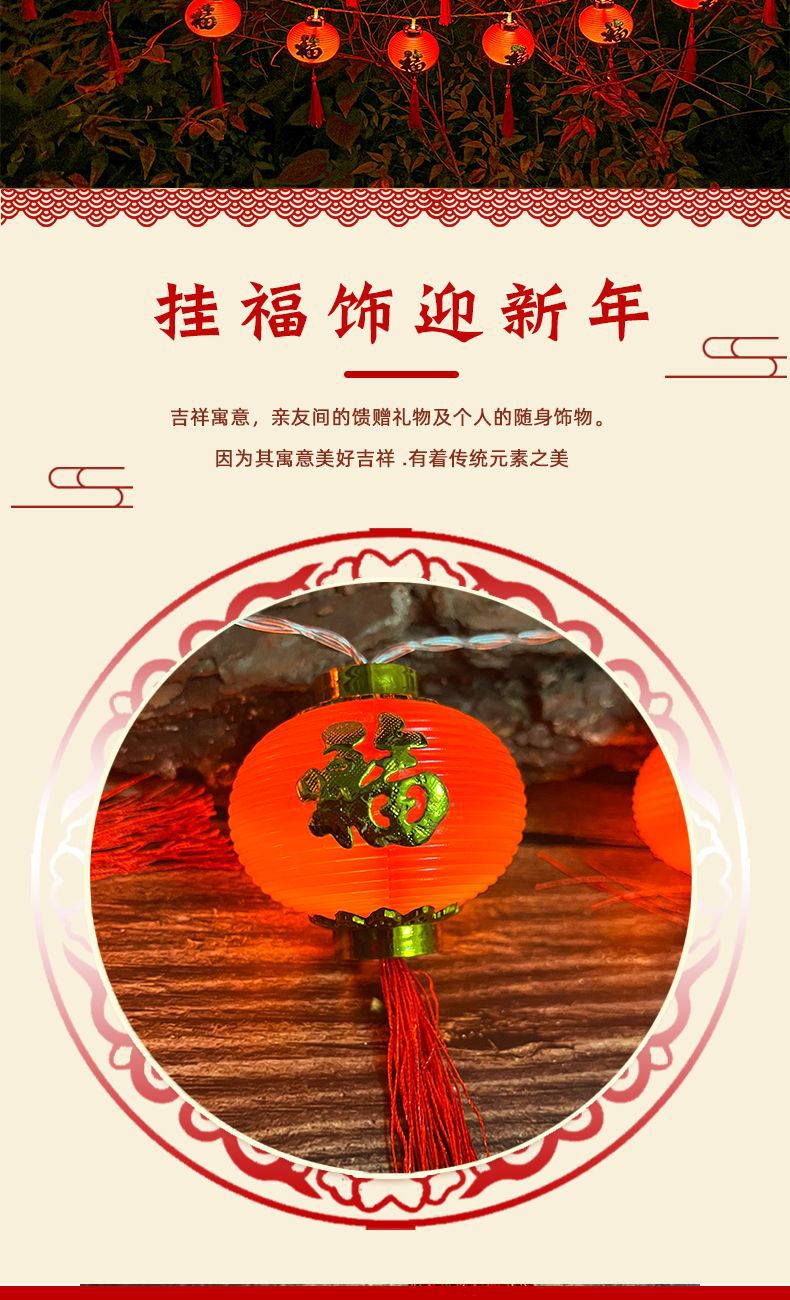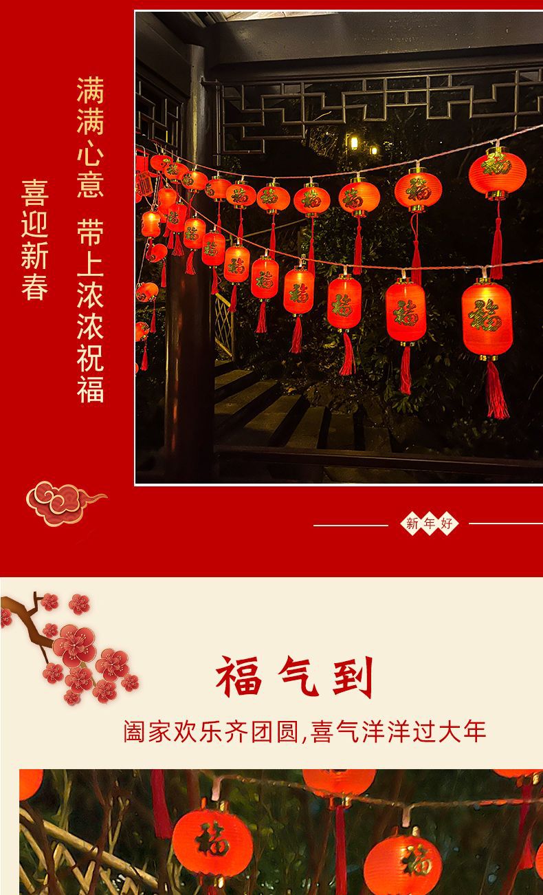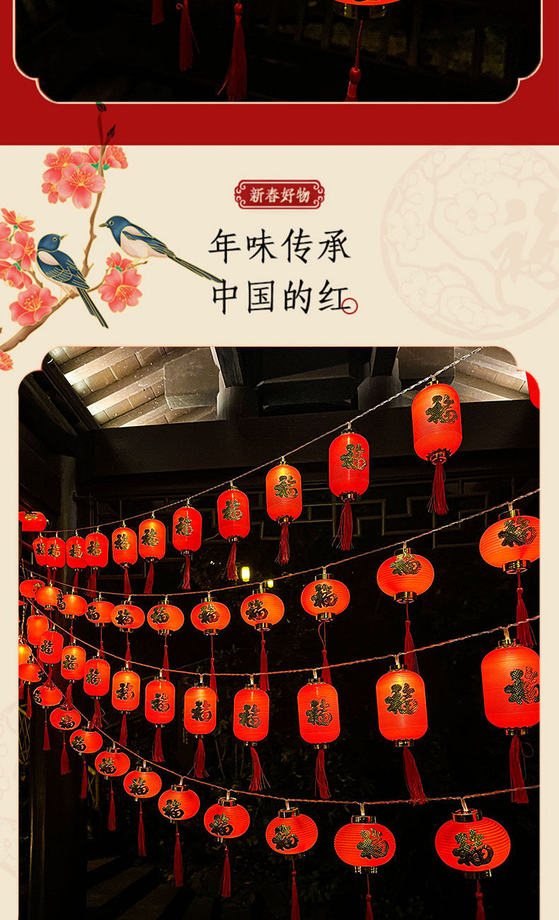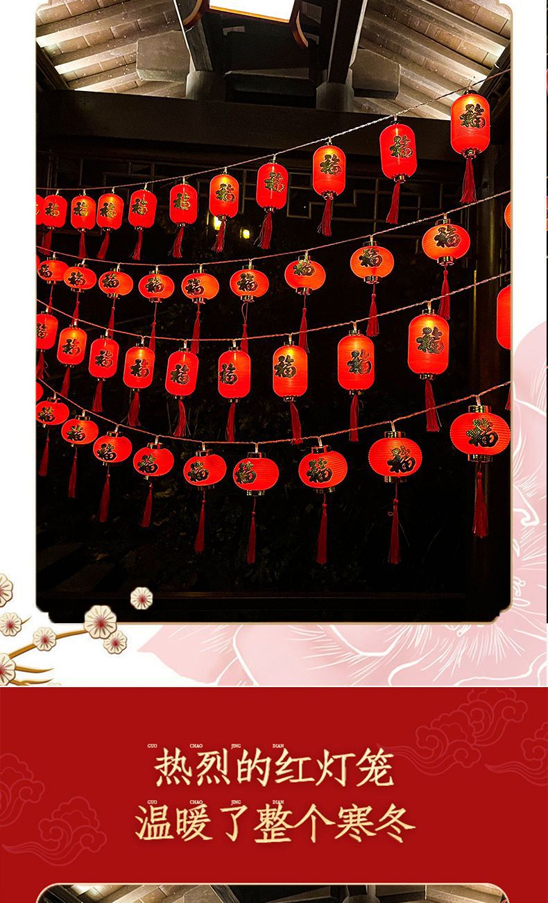 led新年装饰布置灯笼彩灯金边福字红灯笼LED串灯氛围室内
