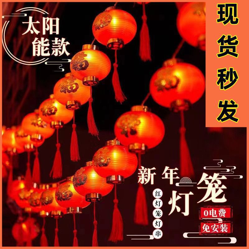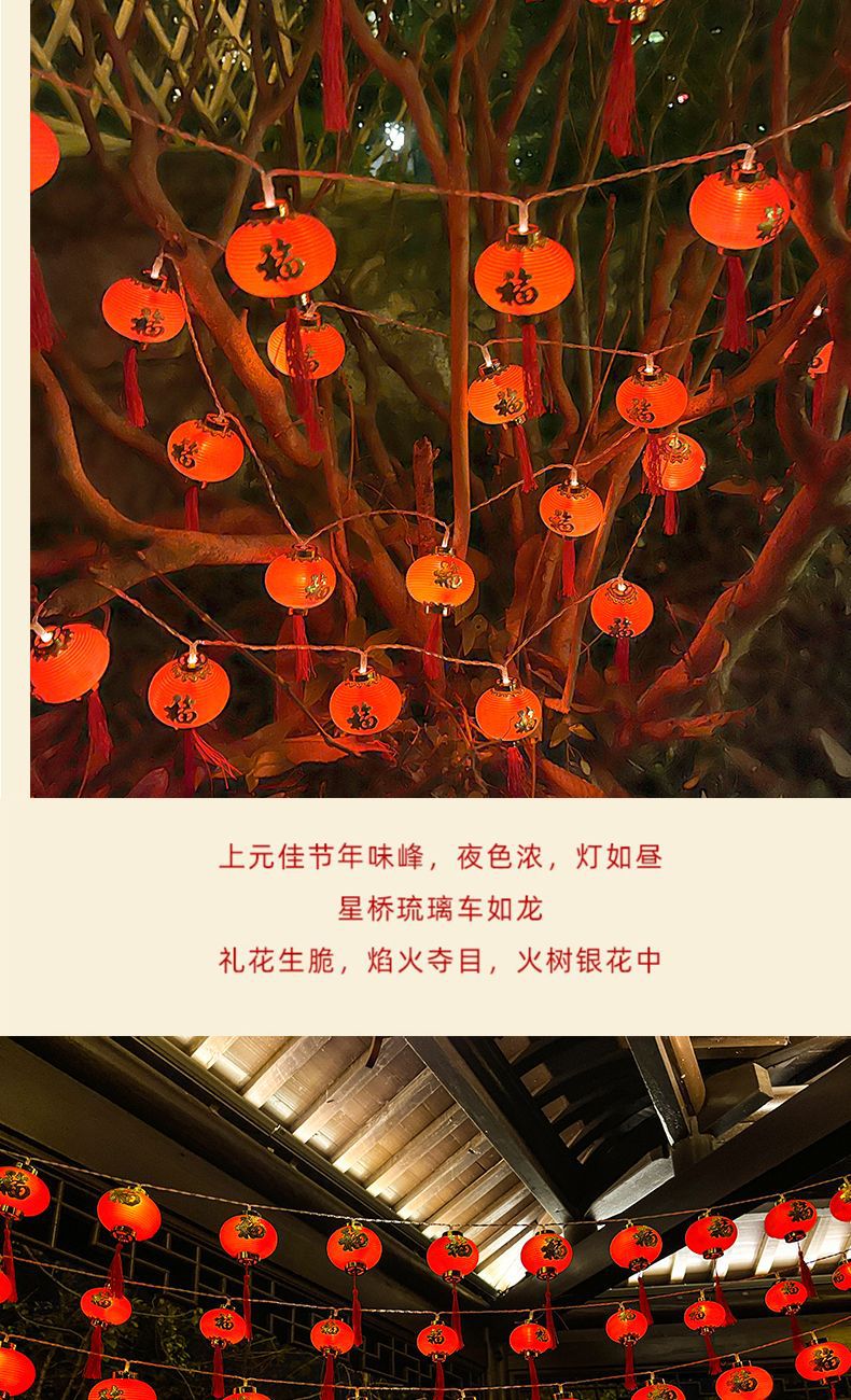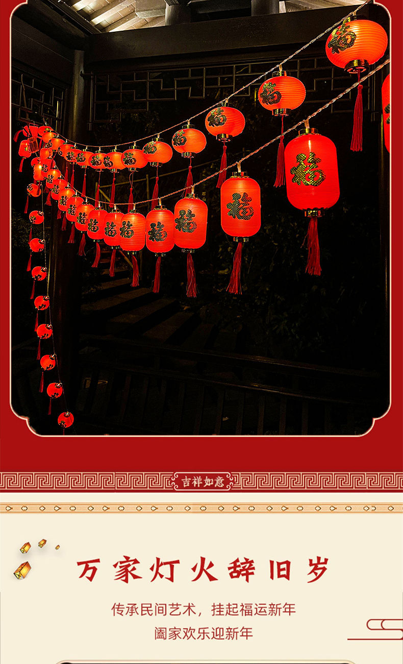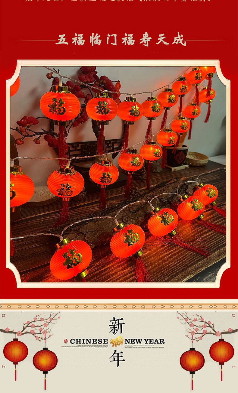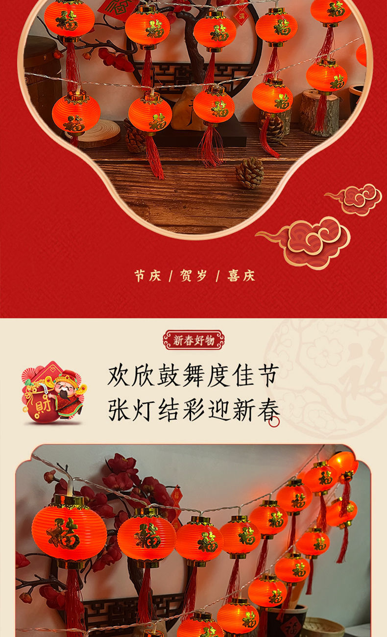 led新年装饰布置灯笼彩灯金边福字红灯笼LED串灯氛围室内