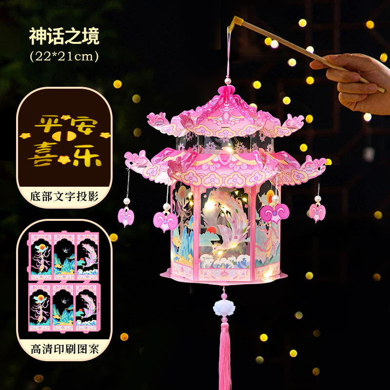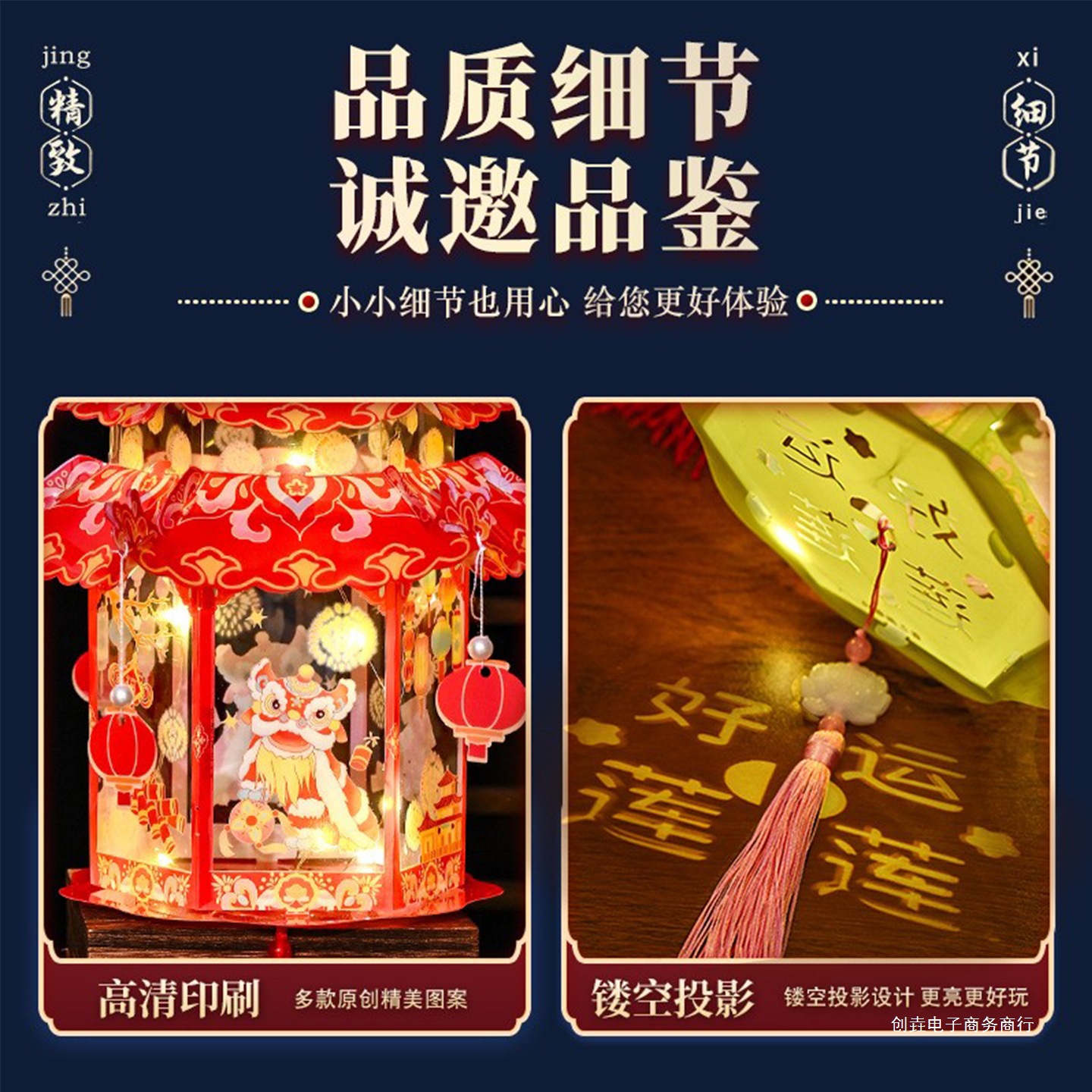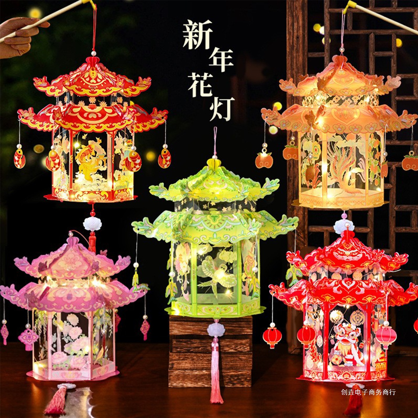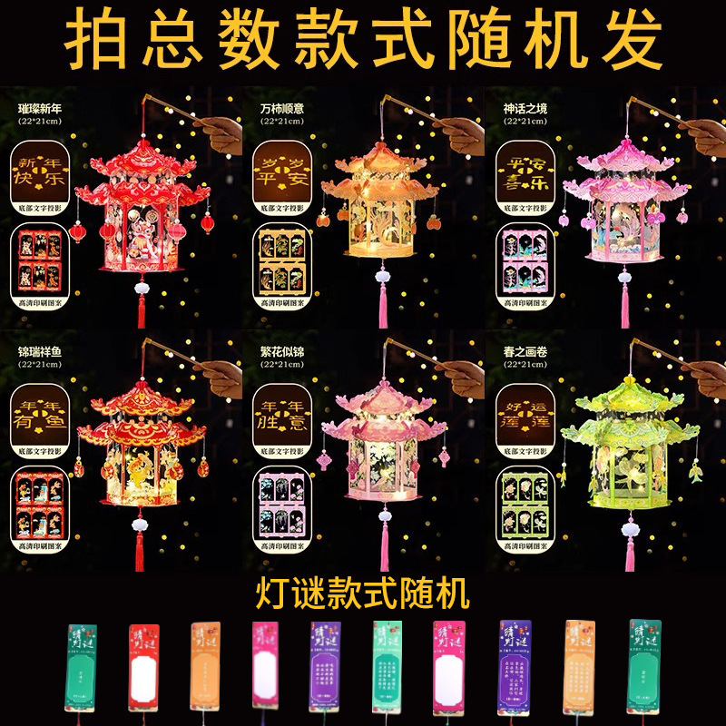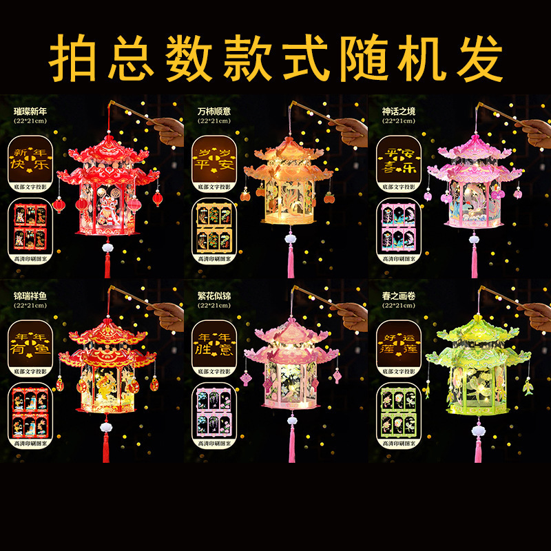 创垚春节元宵灯笼儿童手工diy材料手提花灯古风pvc投影发光宫灯