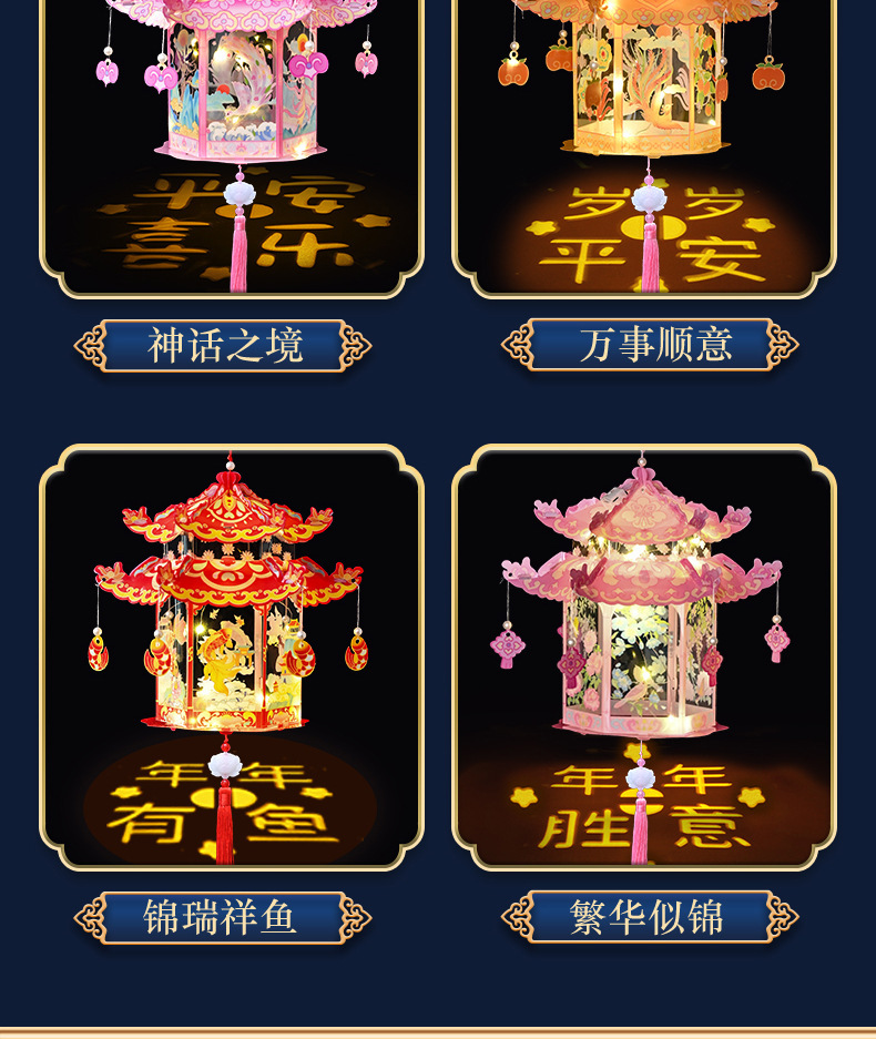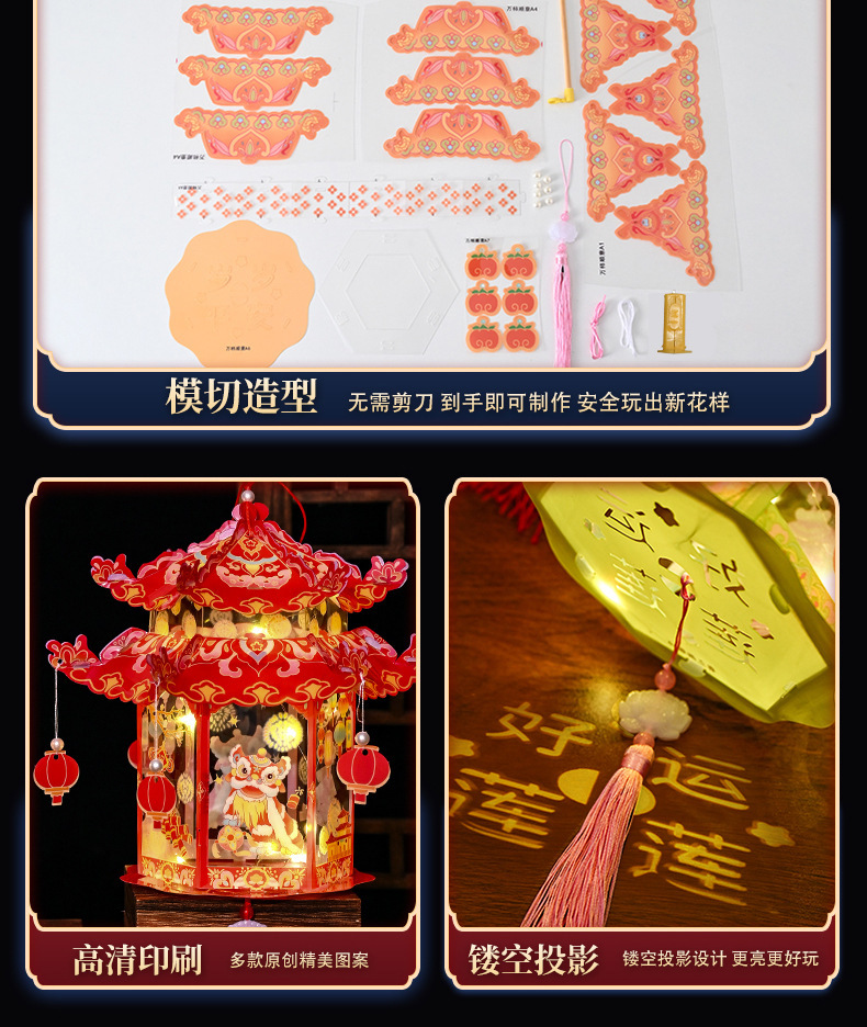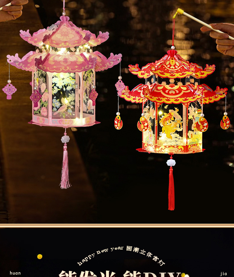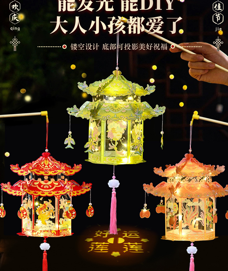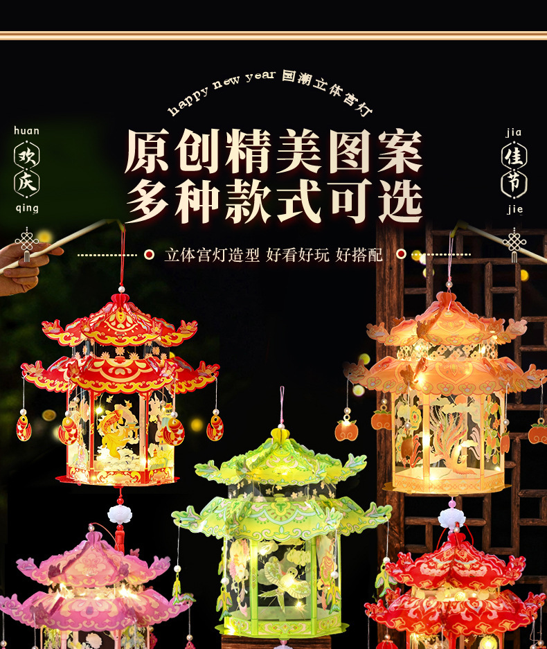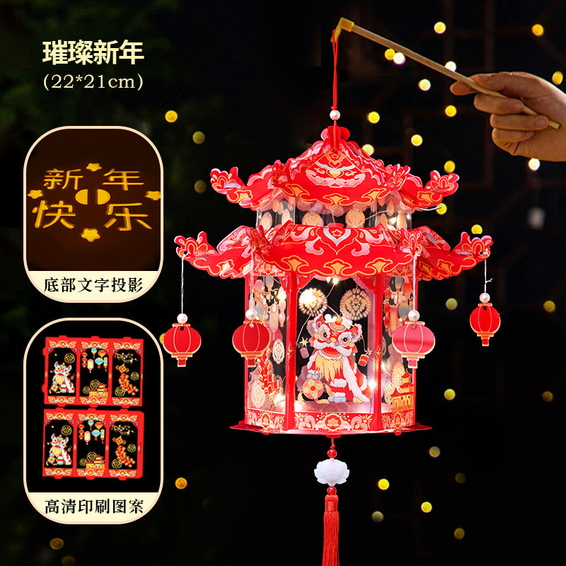 创垚春节元宵灯笼儿童手工diy材料手提花灯古风pvc投影发光宫灯