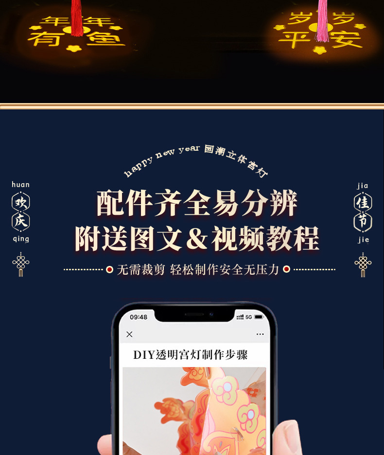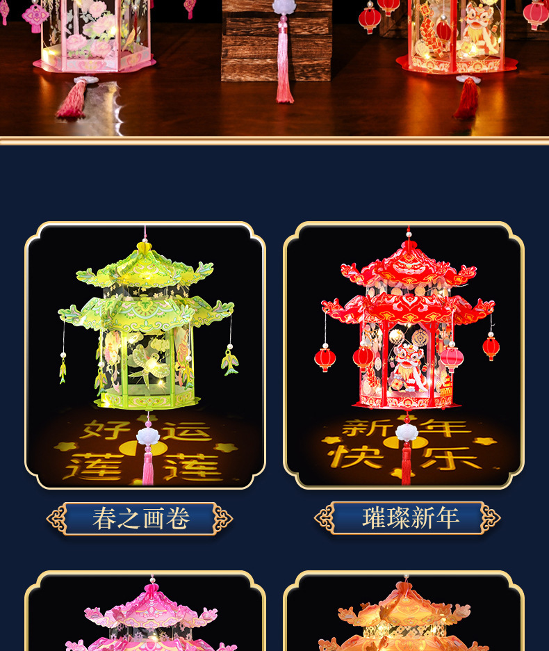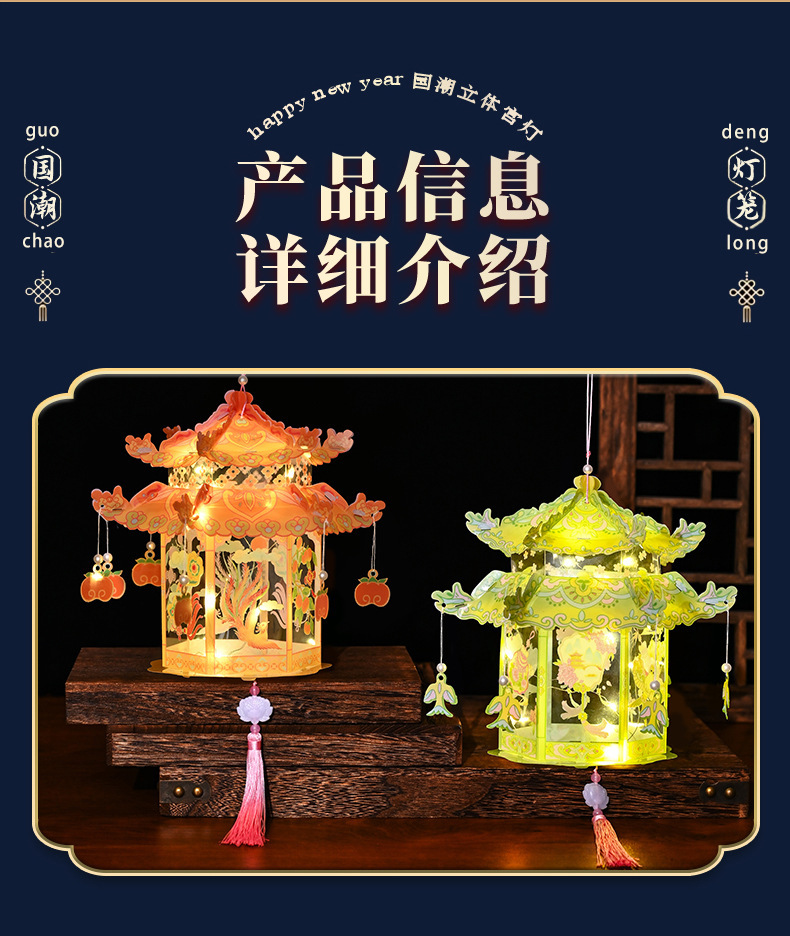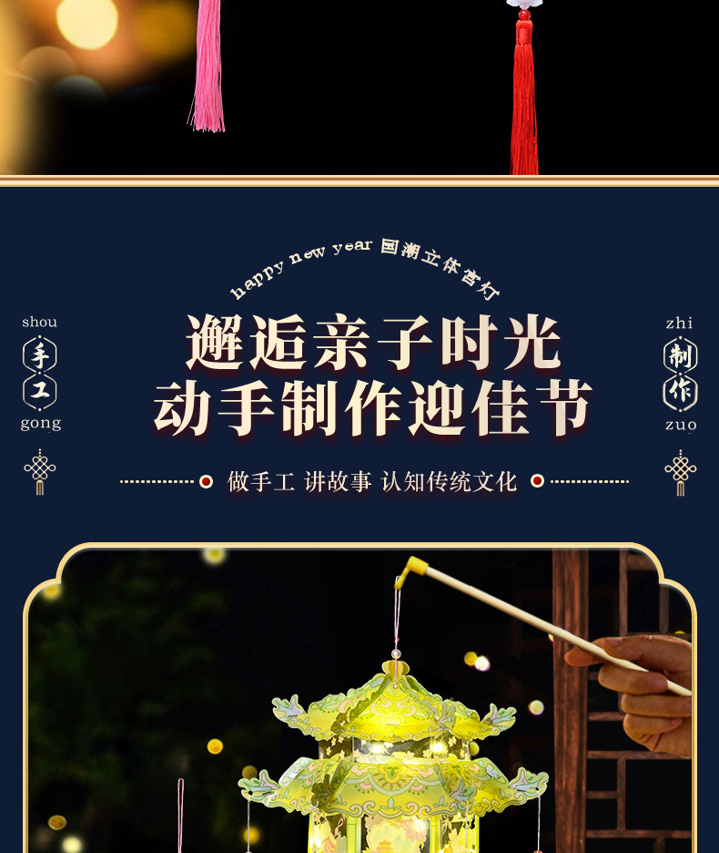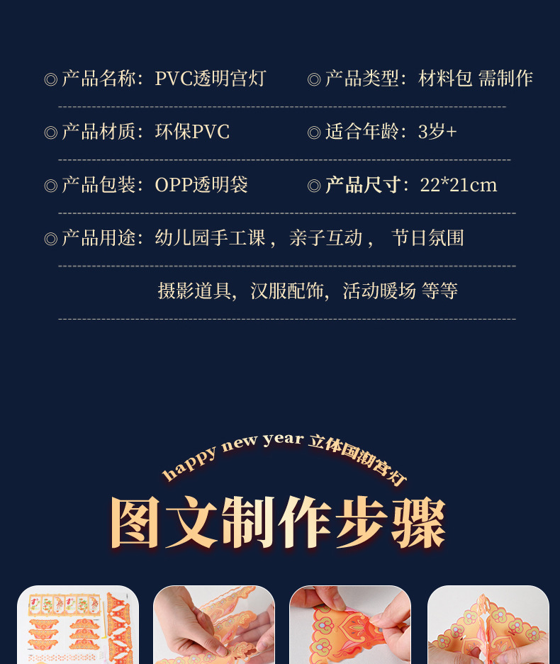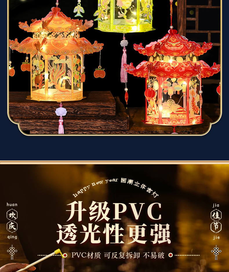 创垚春节元宵灯笼儿童手工diy材料手提花灯古风pvc投影发光宫灯