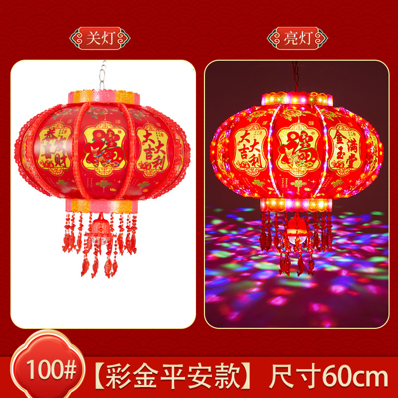 阳台走廊大红中式吊灯春节乔迁装饰挂饰 新年LED七彩旋转走马灯笼