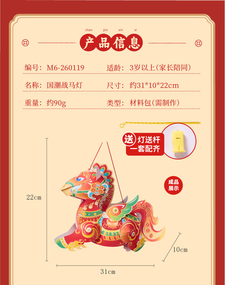马年国潮战马灯笼手工DIY材料幼儿园益智手持发光花灯闹元宵2026