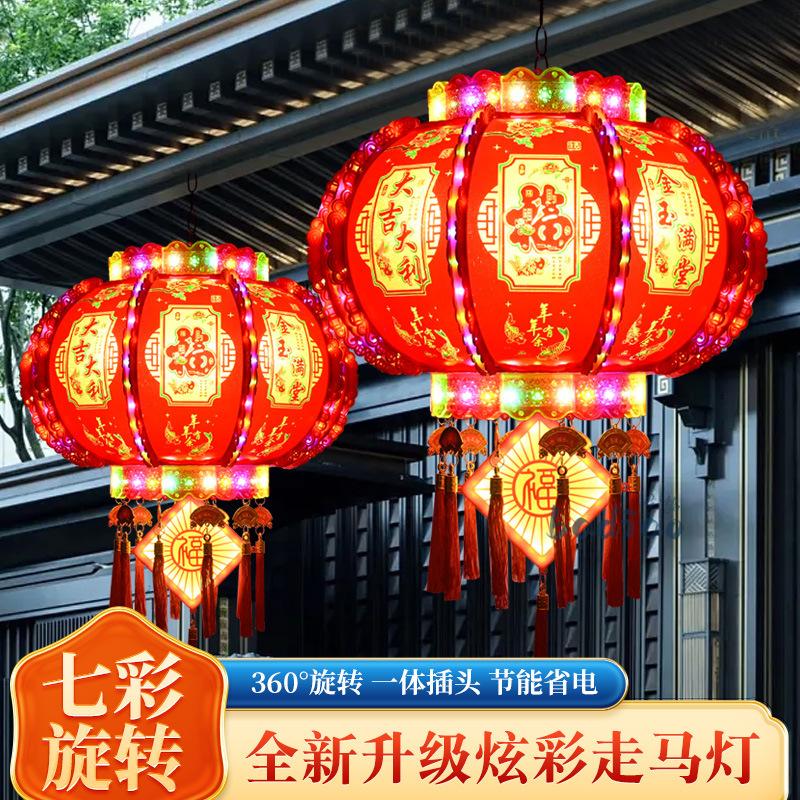 ✅2026新款旋转灯笼闪光灯笼阳台走马灯新年七彩春节灯笼