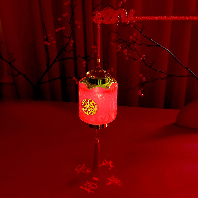 新年音乐灯笼充电款儿童手提投影复古红宫灯春节元宵喜庆布置