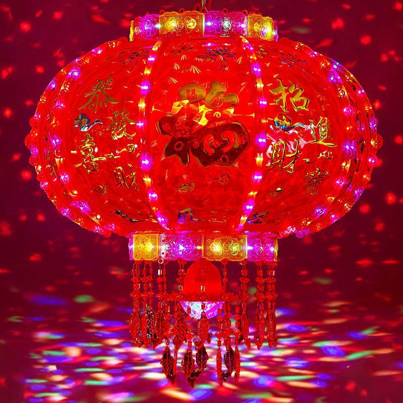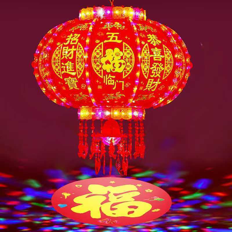 2025新款旋转灯笼一对七彩led走马灯阳台大门口中式宫灯新年装饰