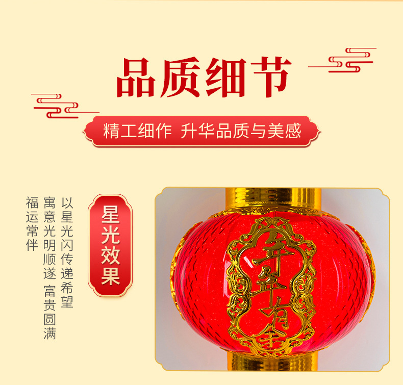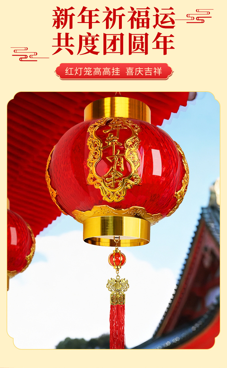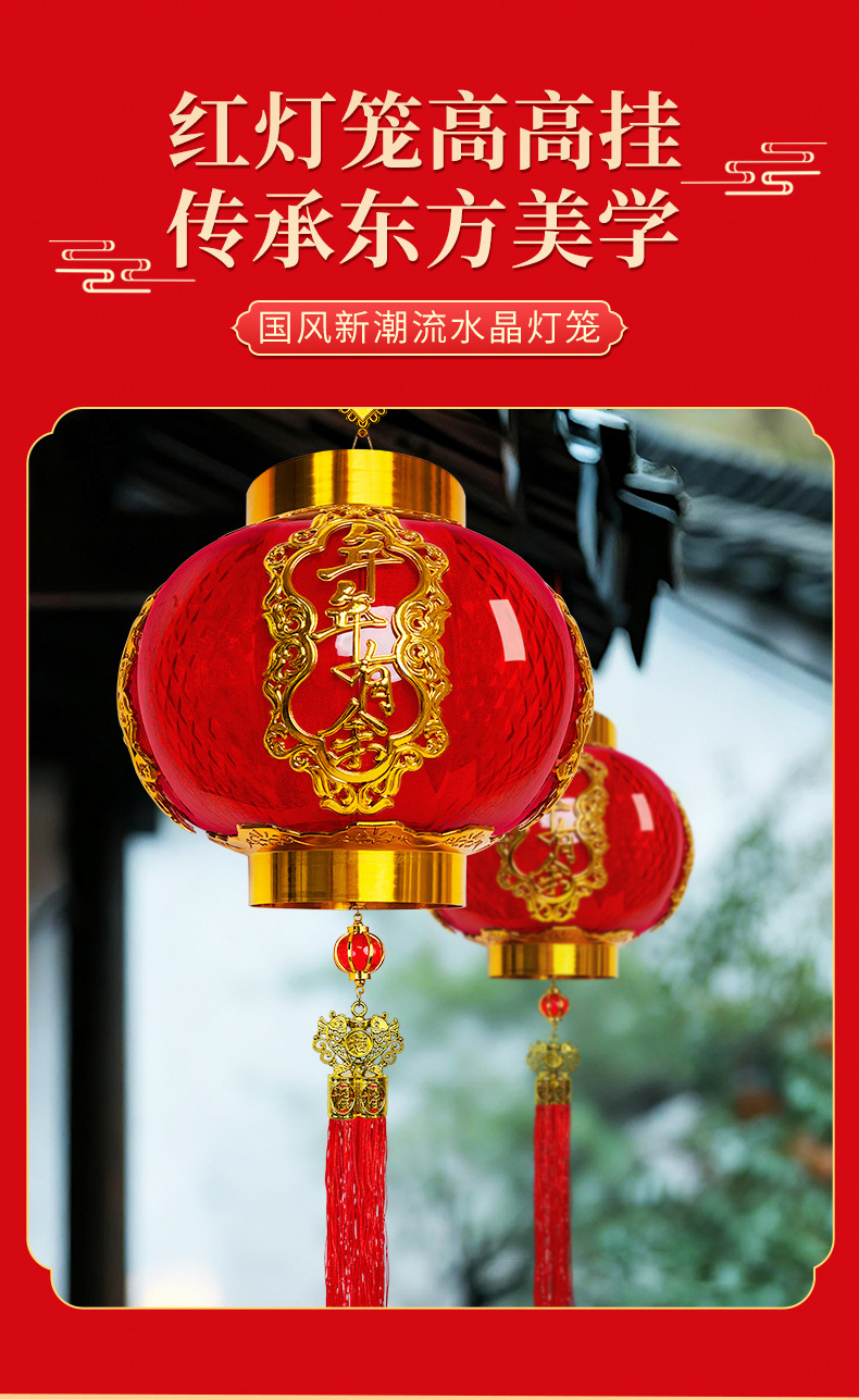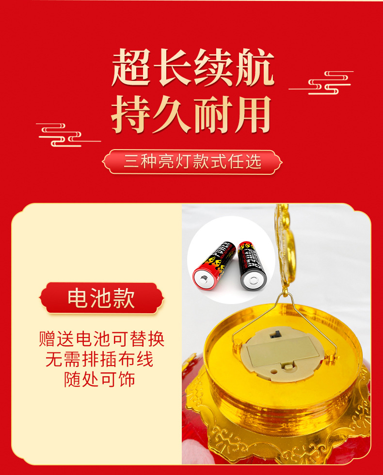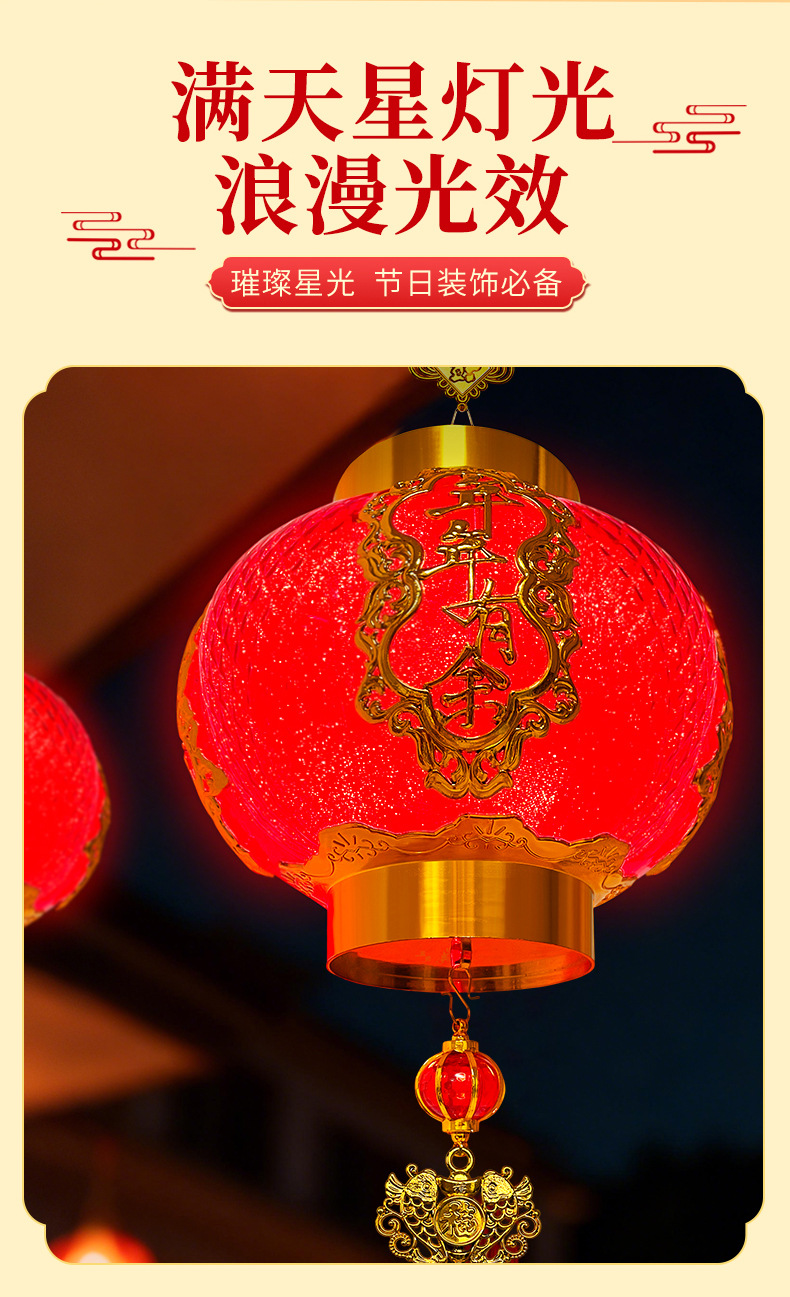 新中式风发光大红灯笼太阳能插电烫金边水晶灯笼春节客厅大门挂件