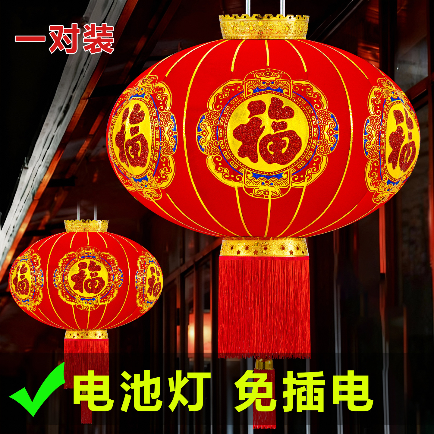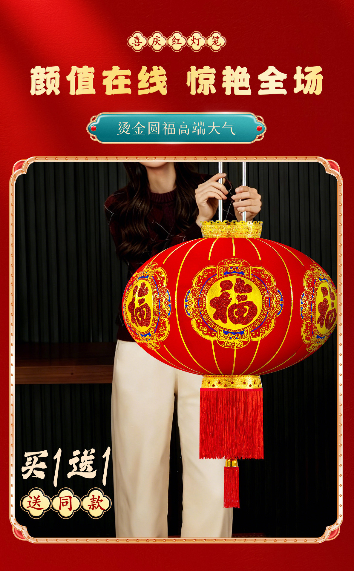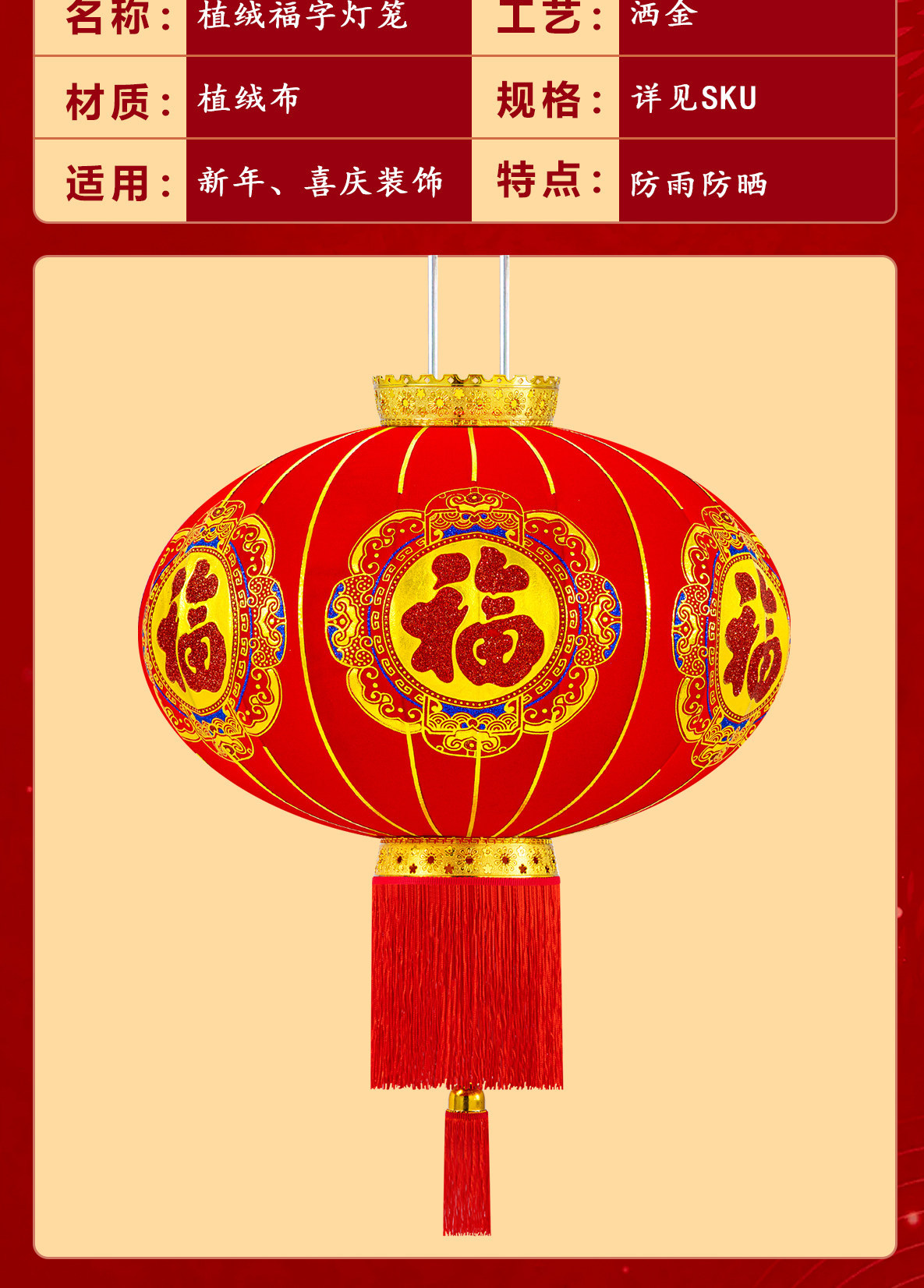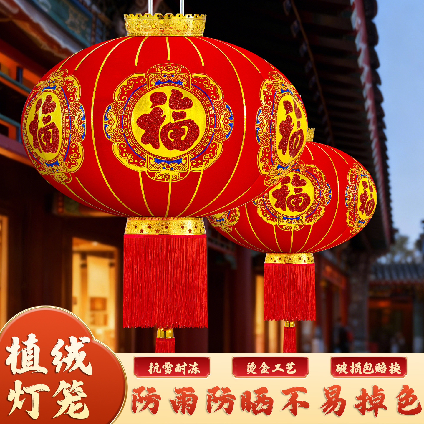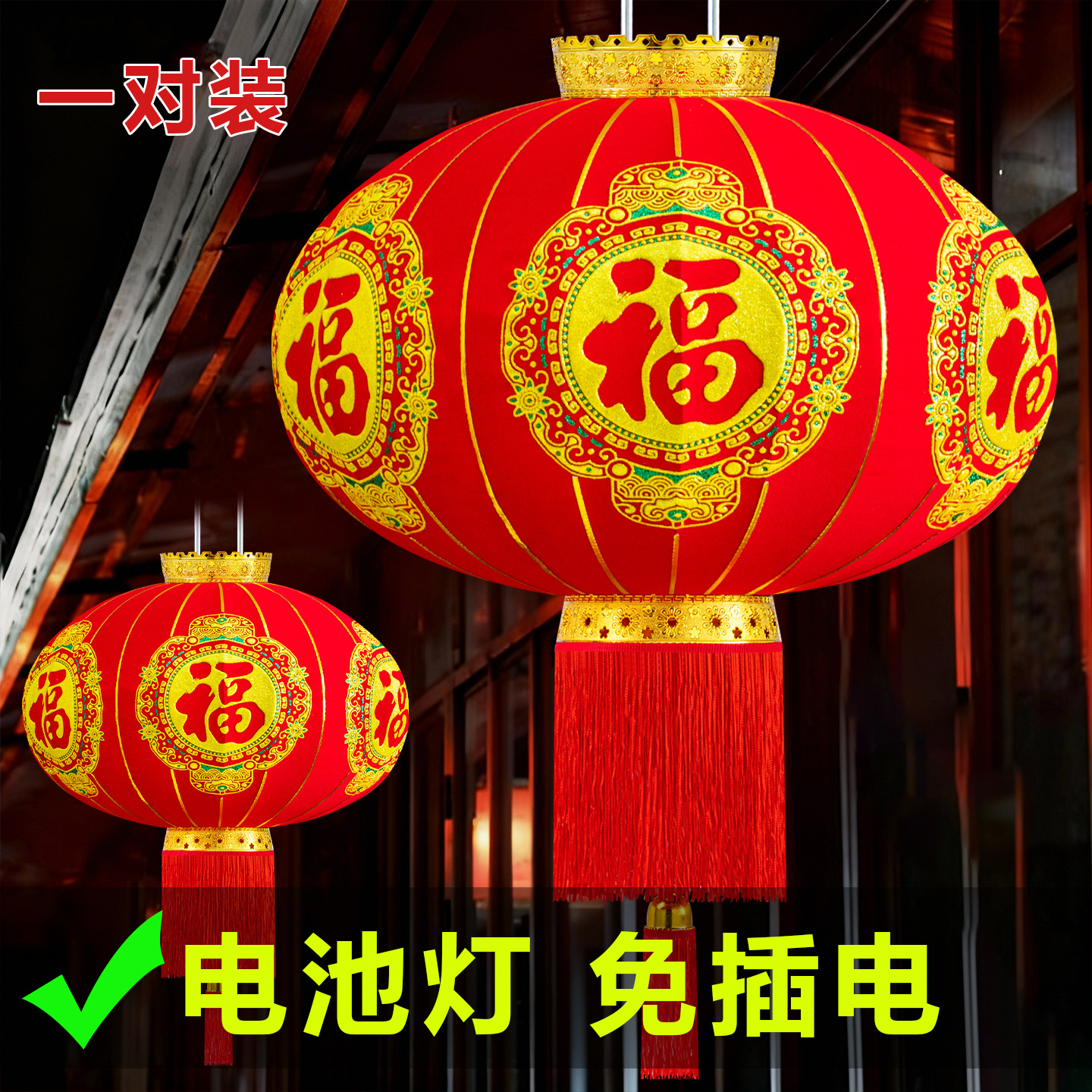 春节新年七彩福字灯笼2026新款高档大门口一对免插电绒布烫金灯笼
