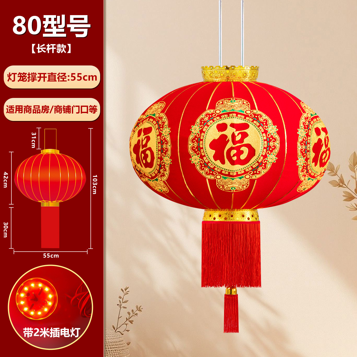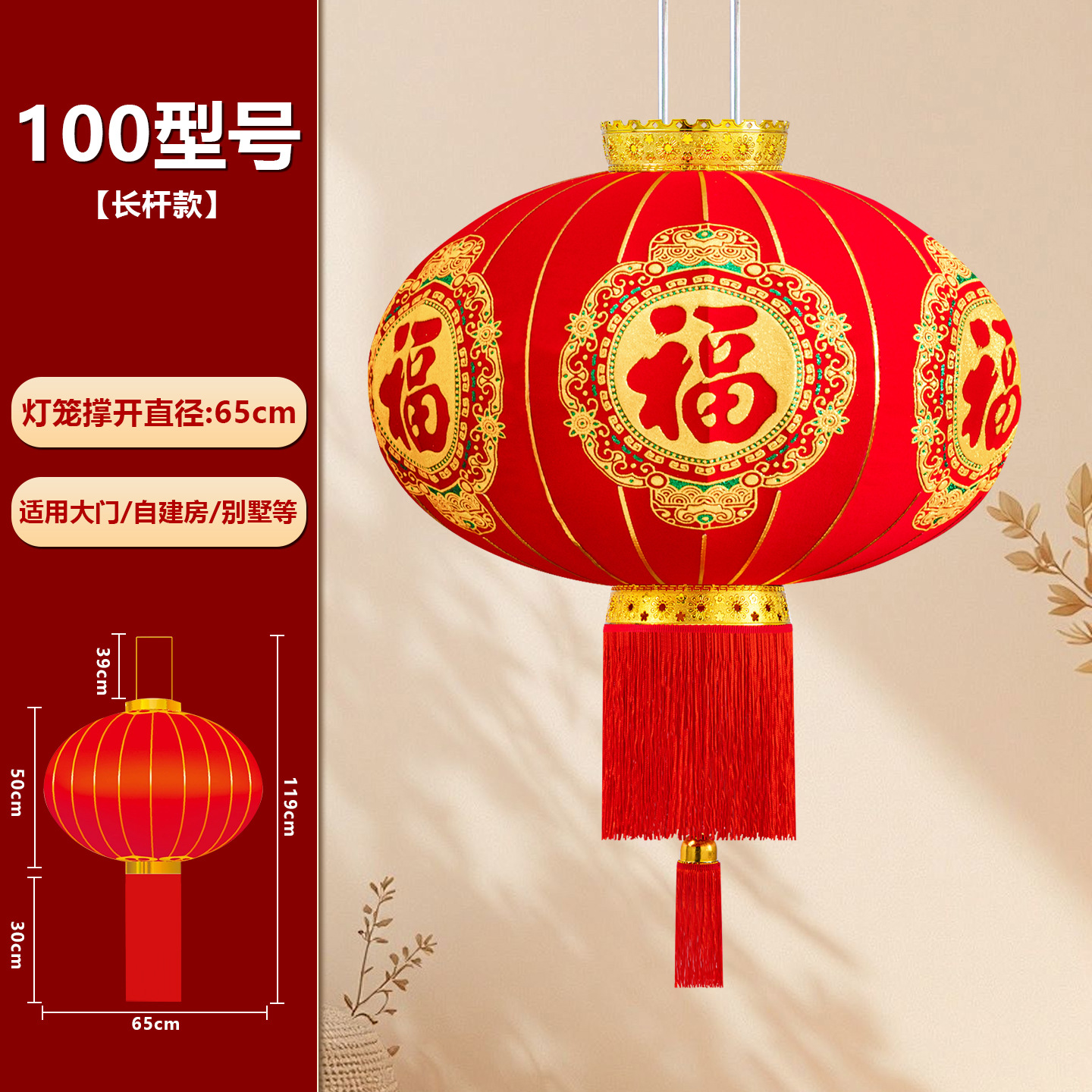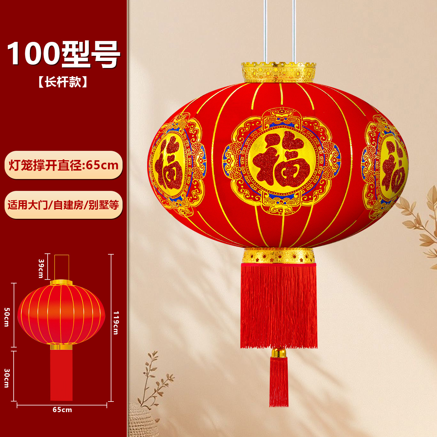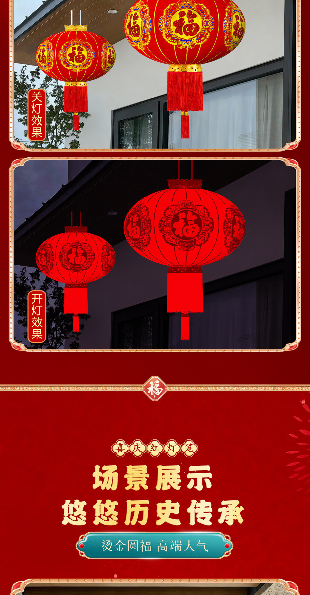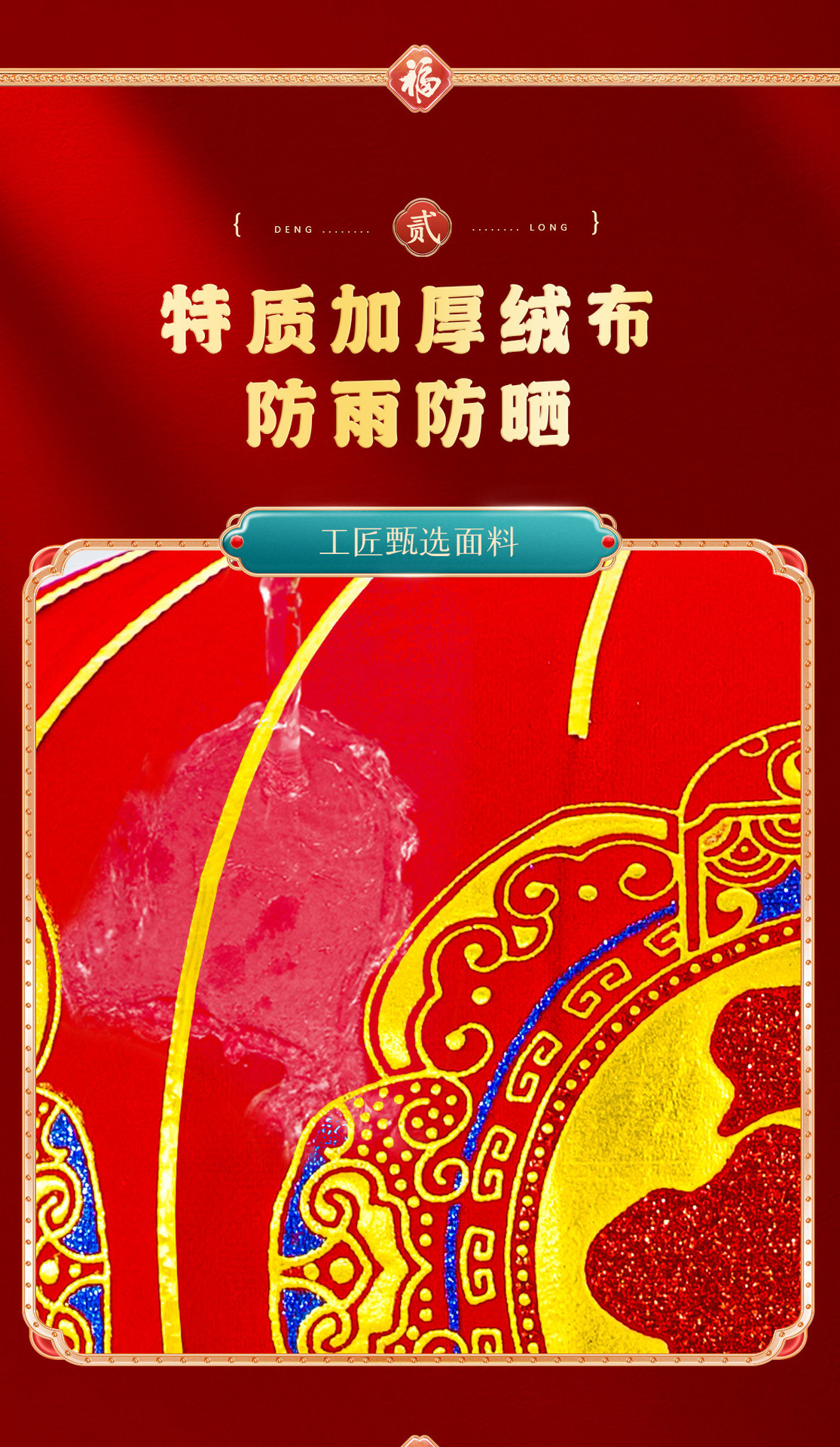 春节新年七彩福字灯笼2026新款高档大门口一对免插电绒布烫金灯笼