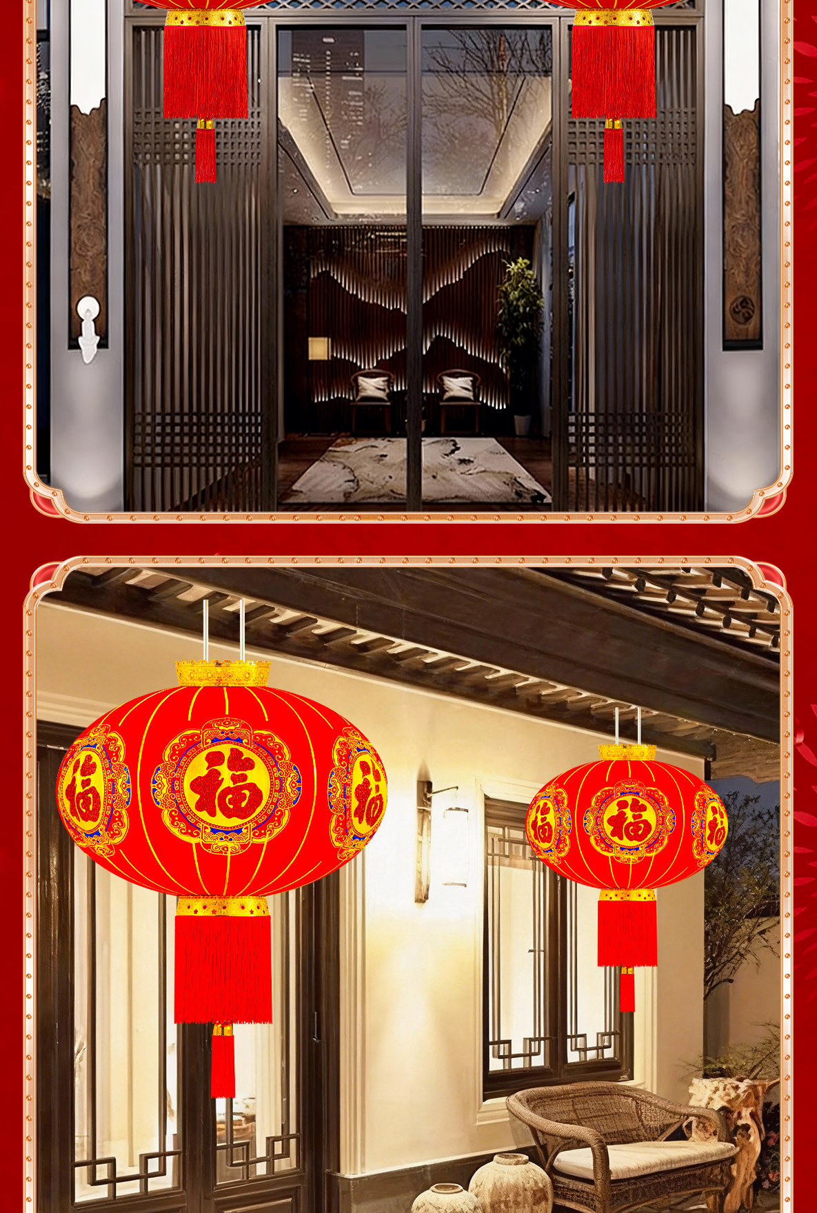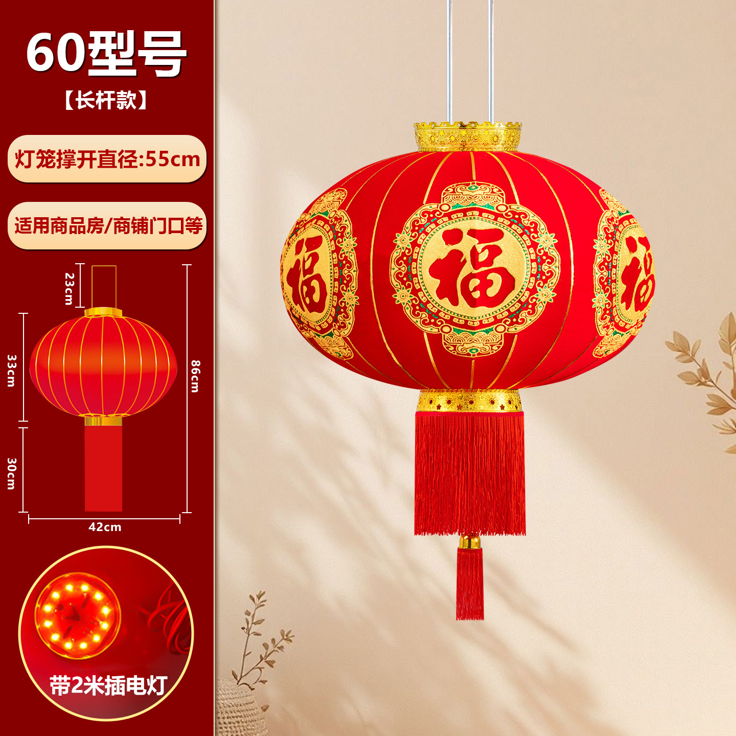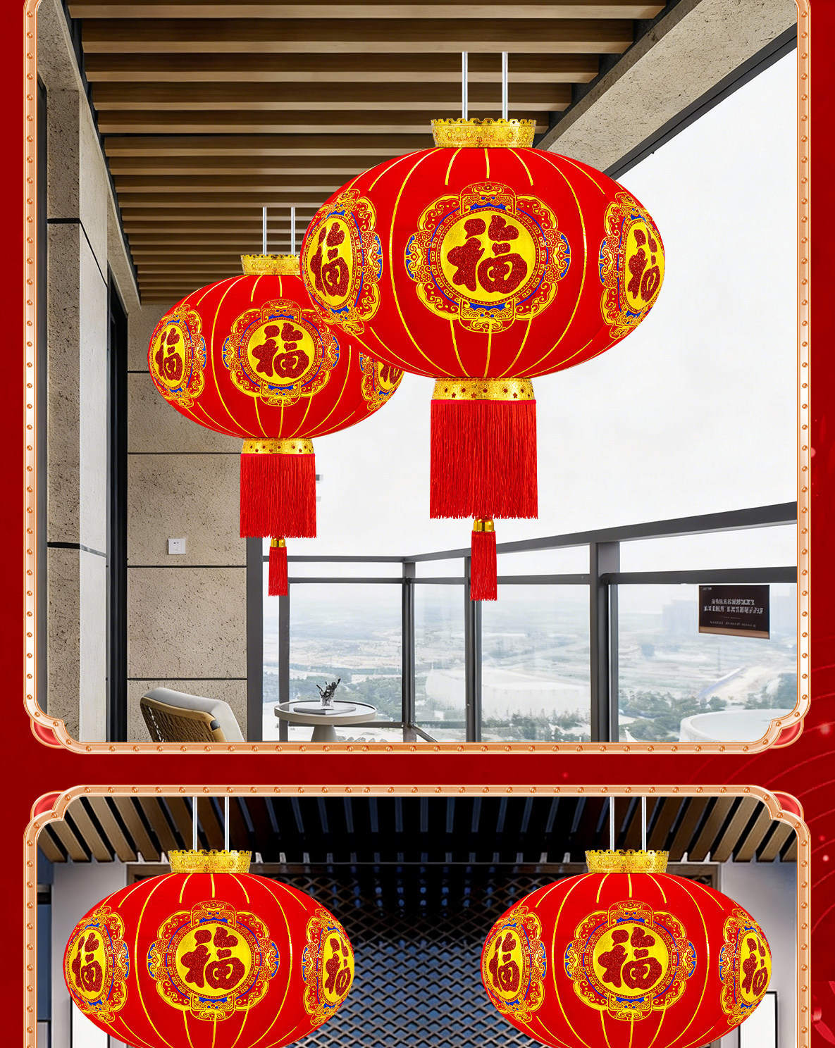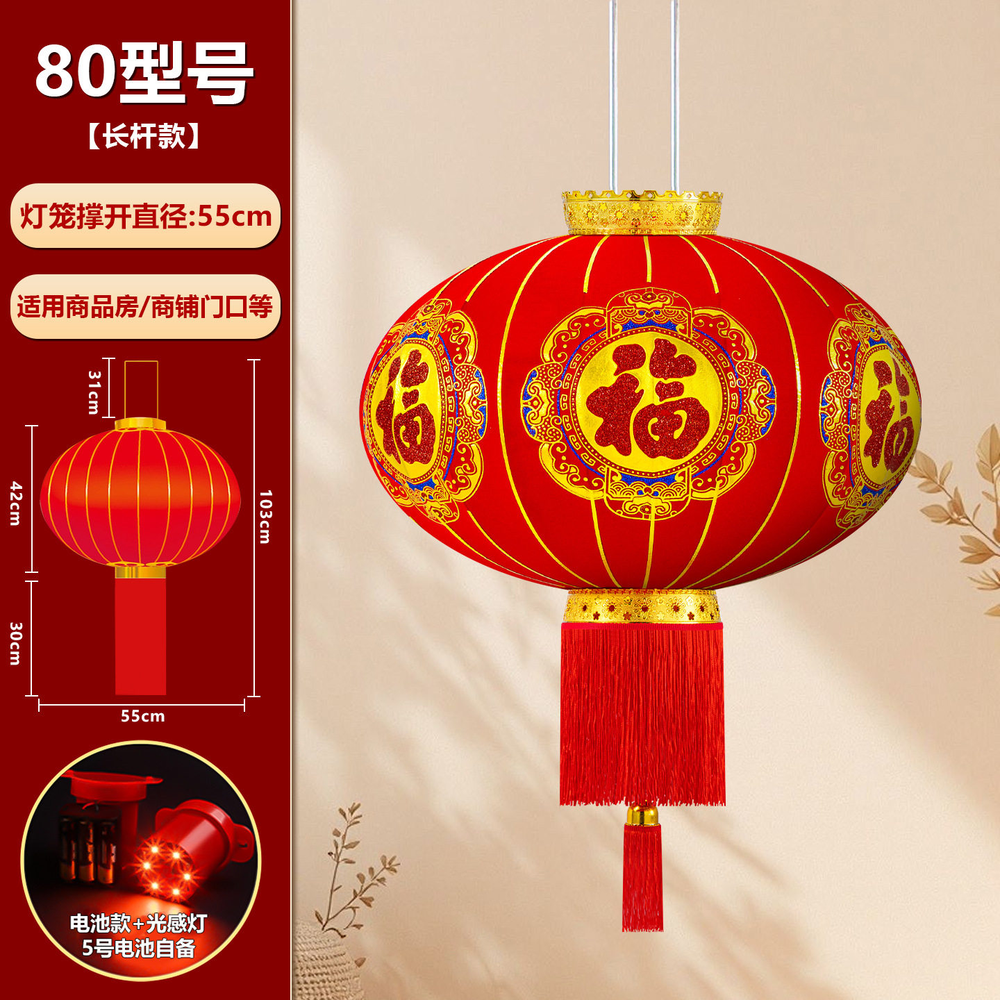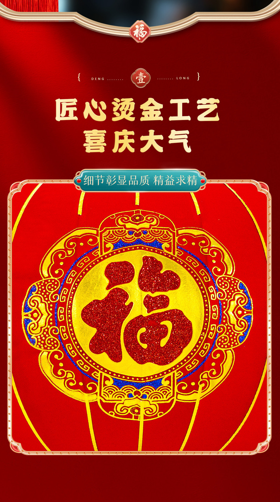 春节新年七彩福字灯笼2026新款高档大门口一对免插电绒布烫金灯笼