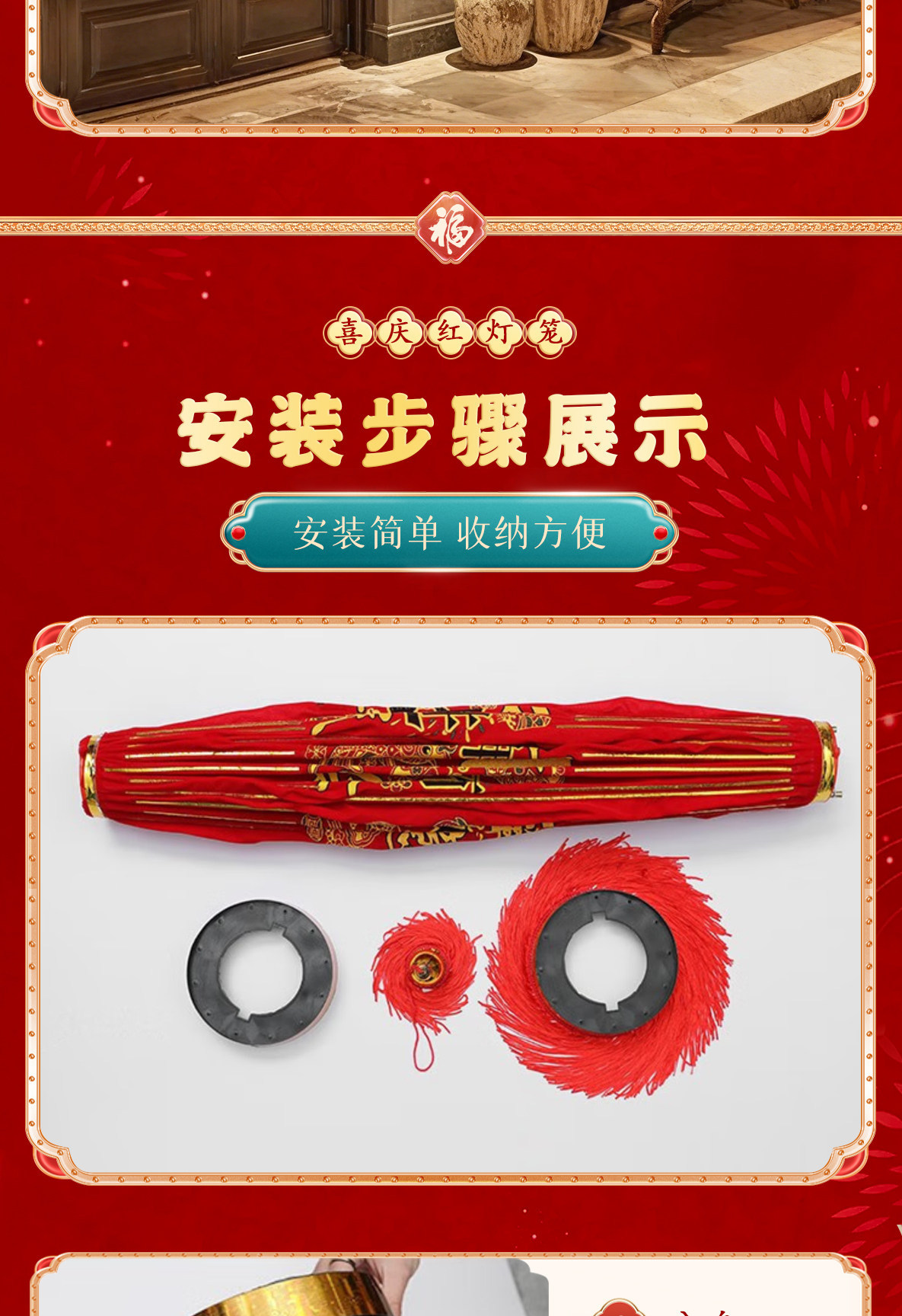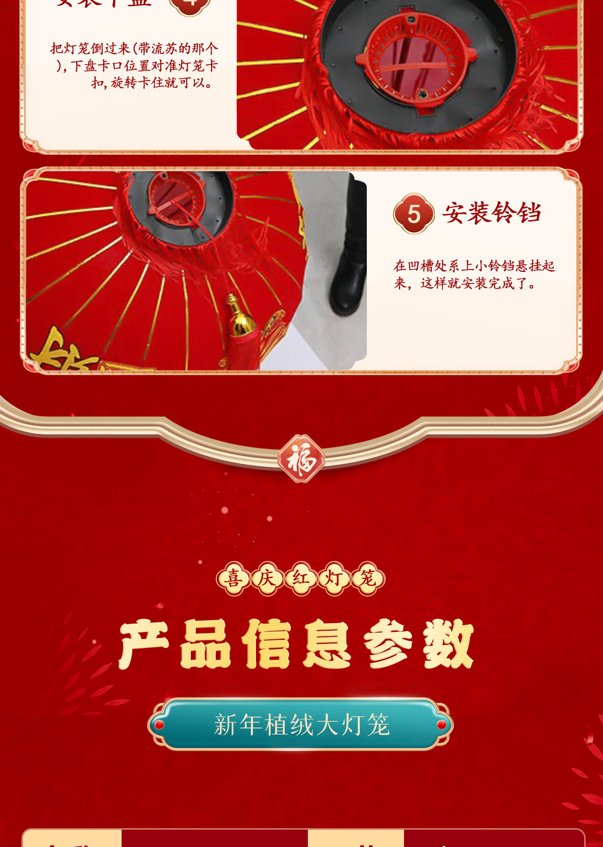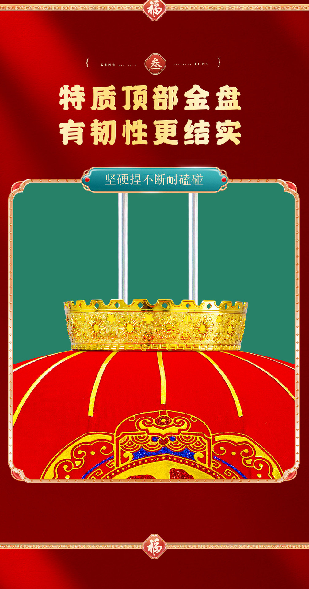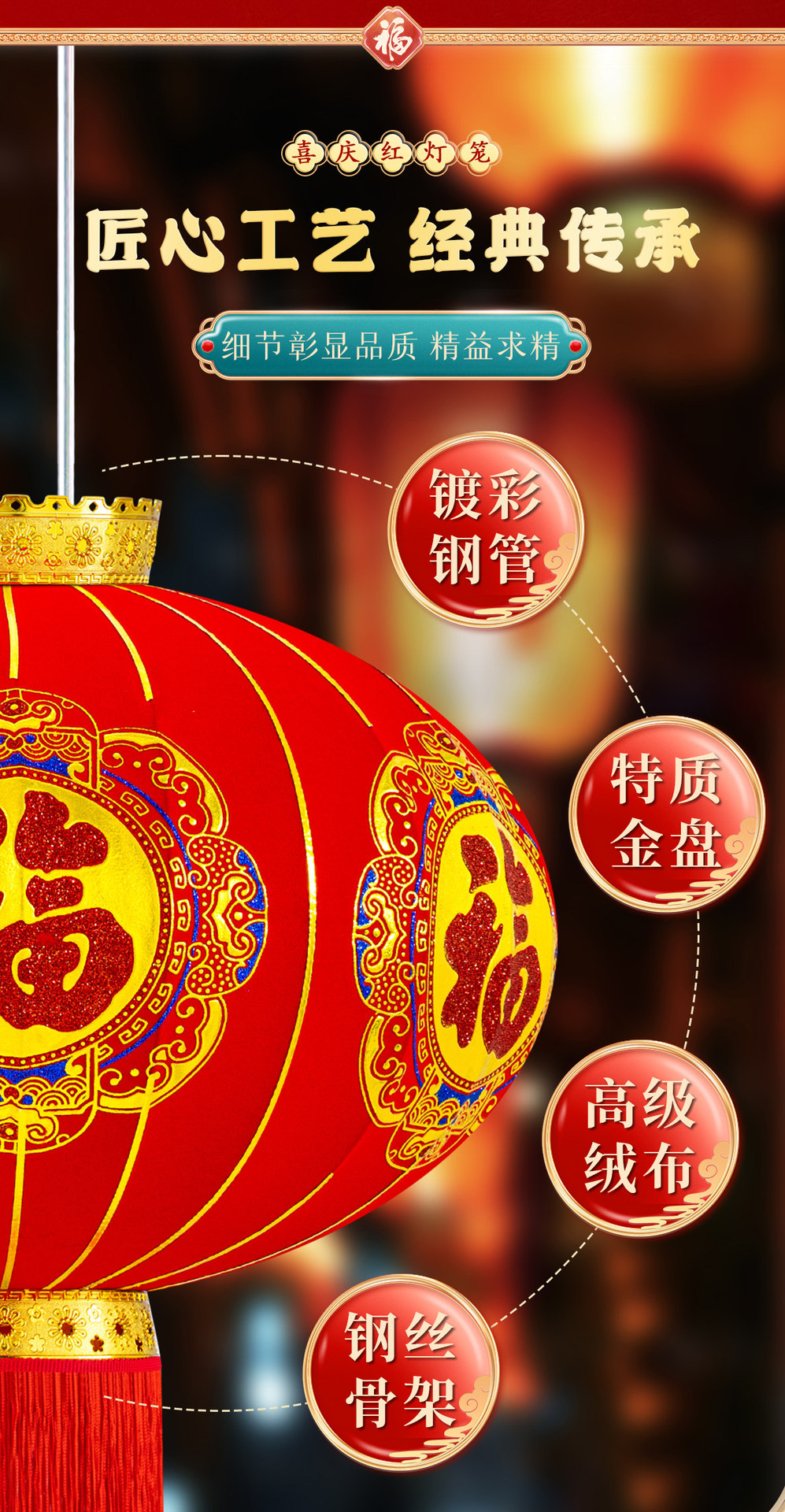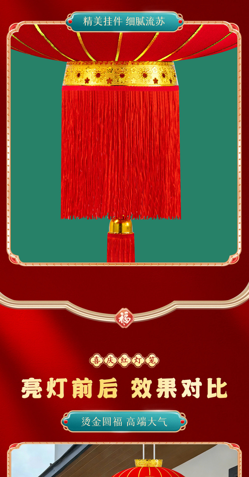 春节新年七彩福字灯笼2026新款高档大门口一对免插电绒布烫金灯笼
