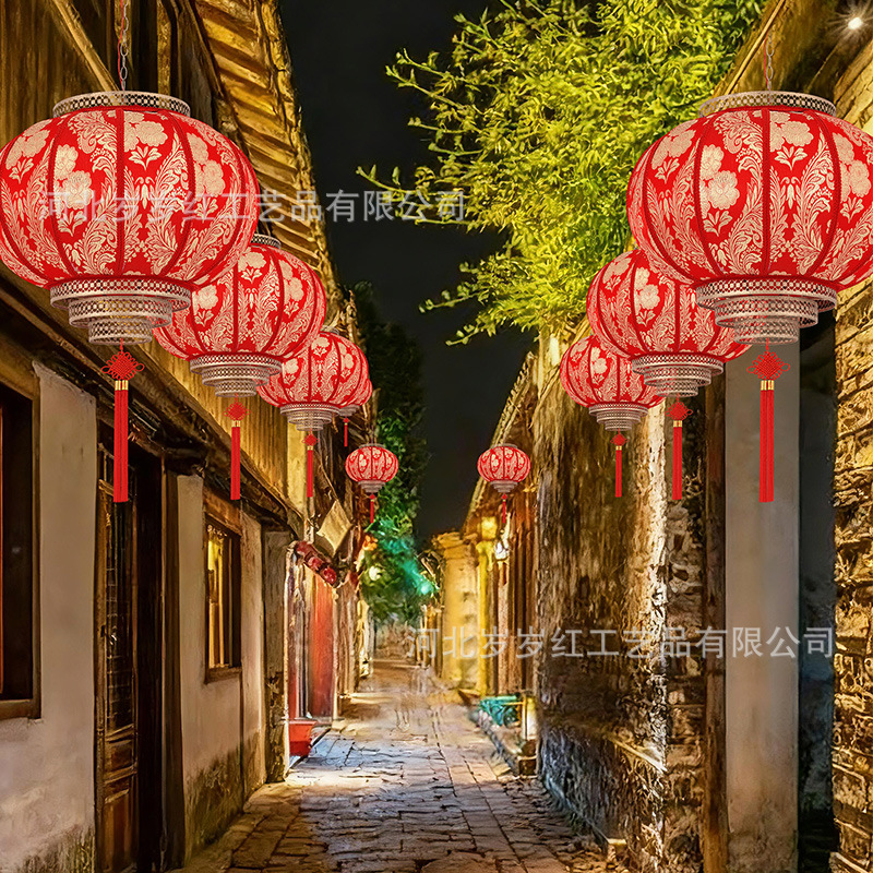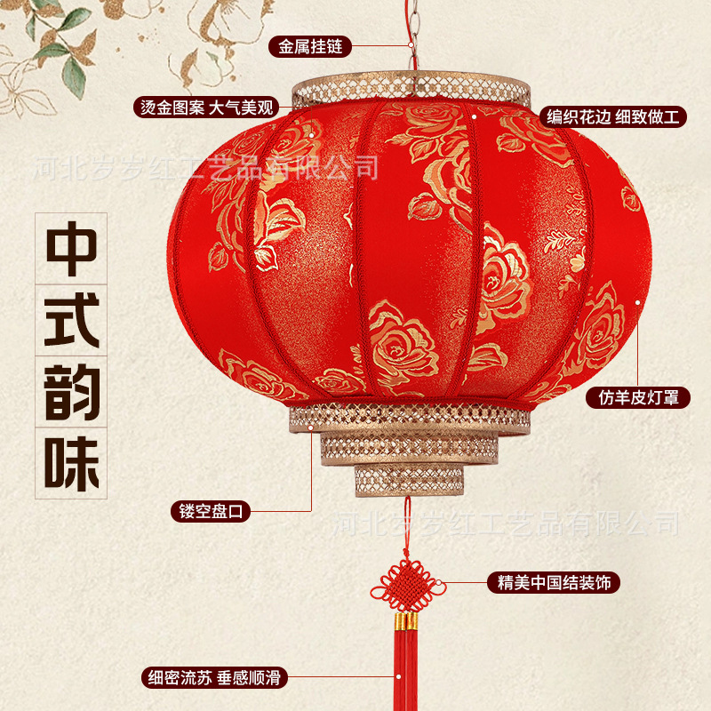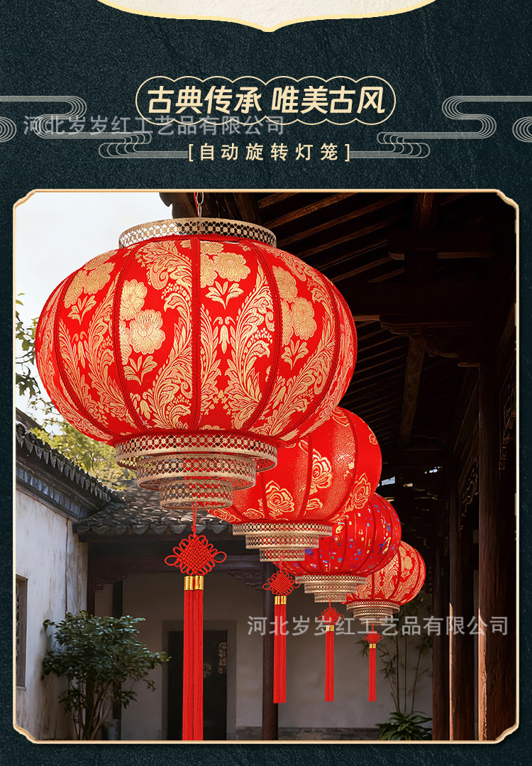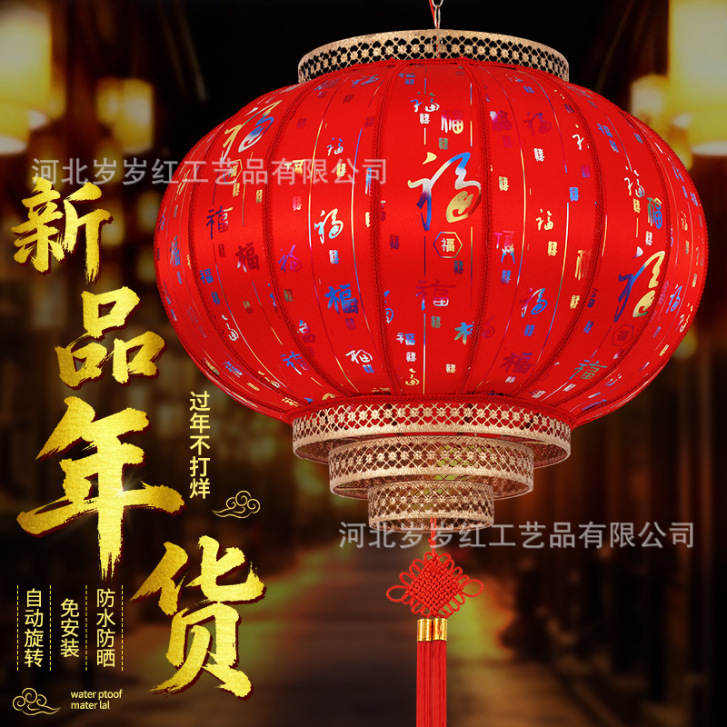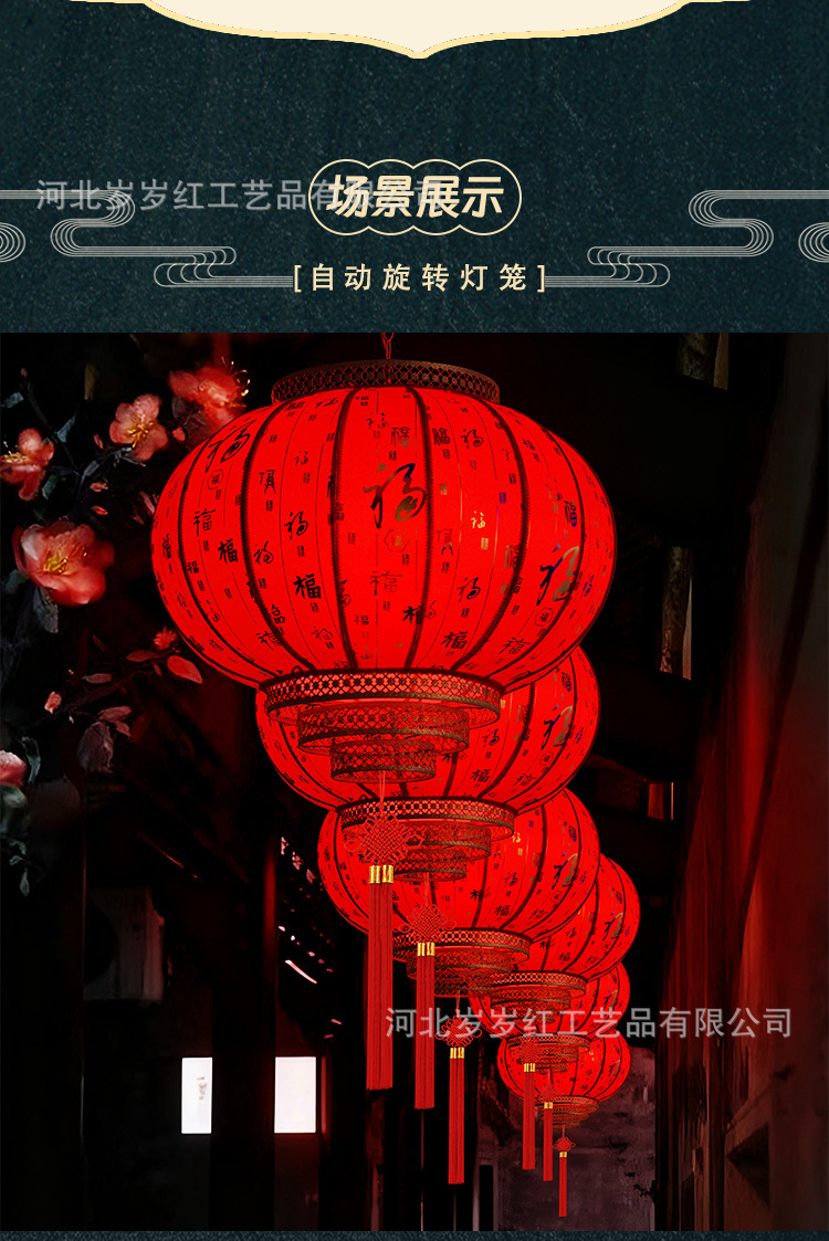 新款仿古圆旋转走马LED羊皮灯笼中式酒店茶楼防晒阳台乔迁新年