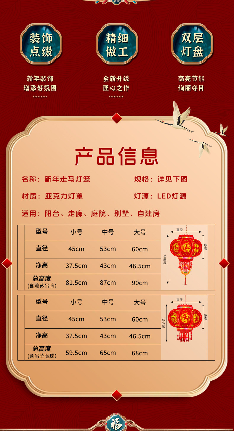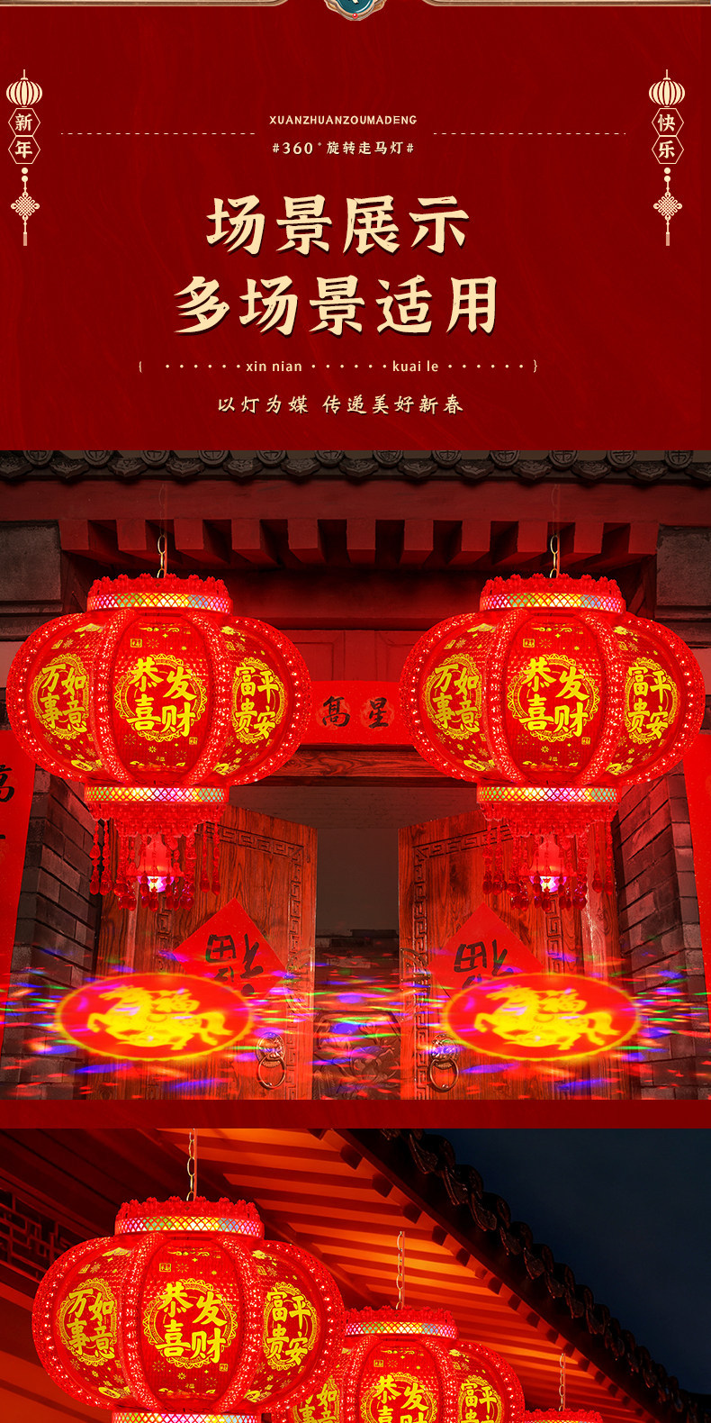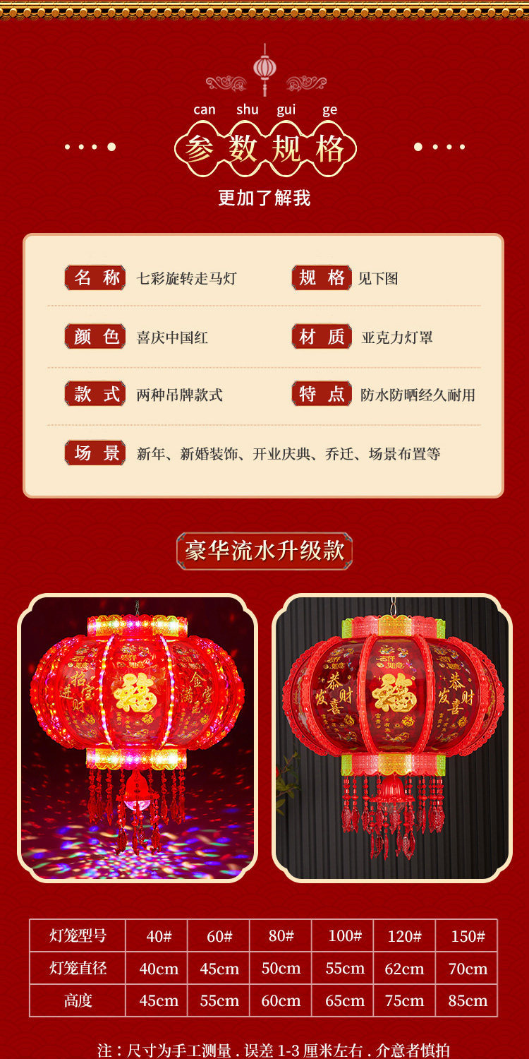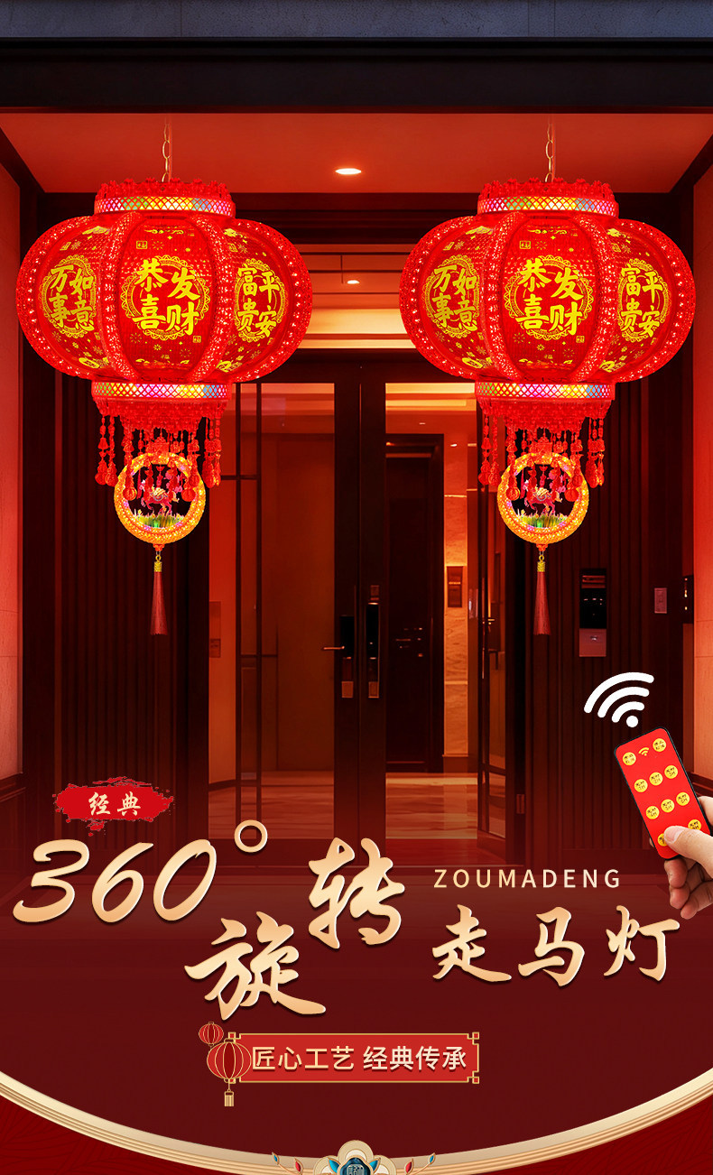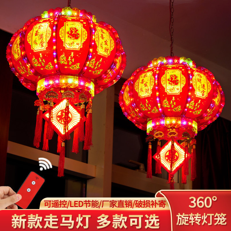 2026新款马年旋转灯笼春节七彩led走马灯插电阳台大门口新年挂饰