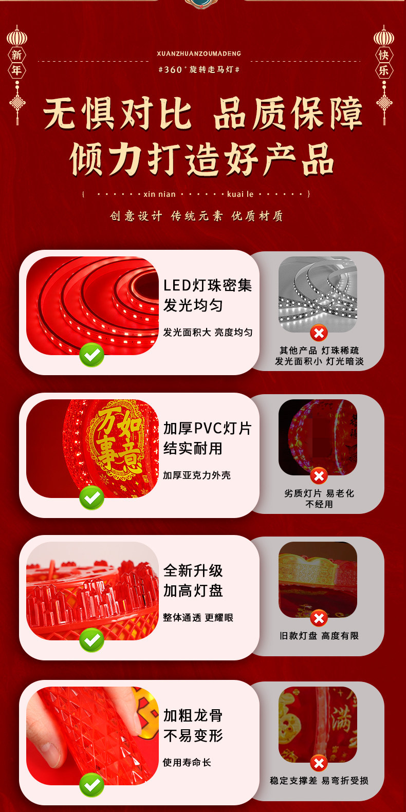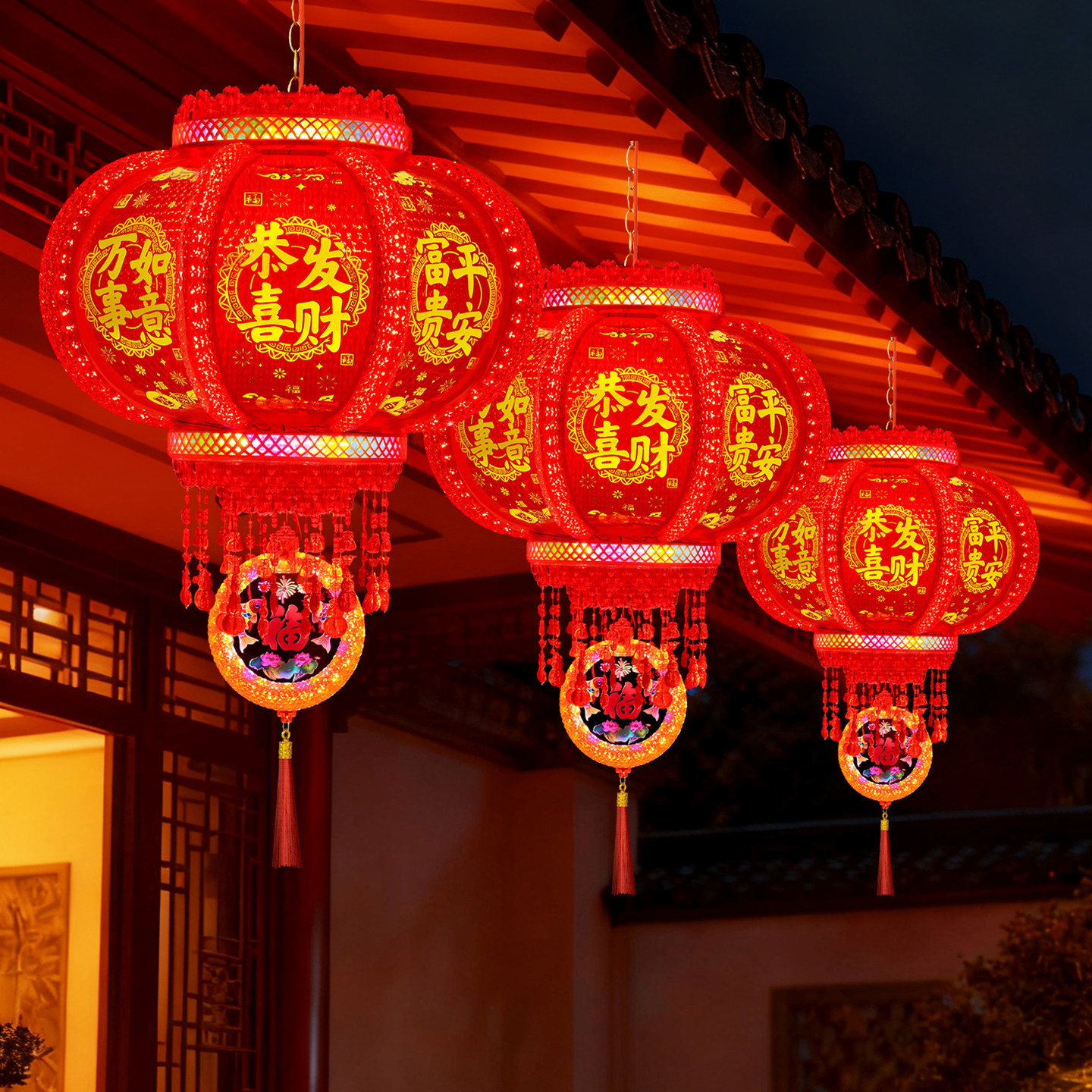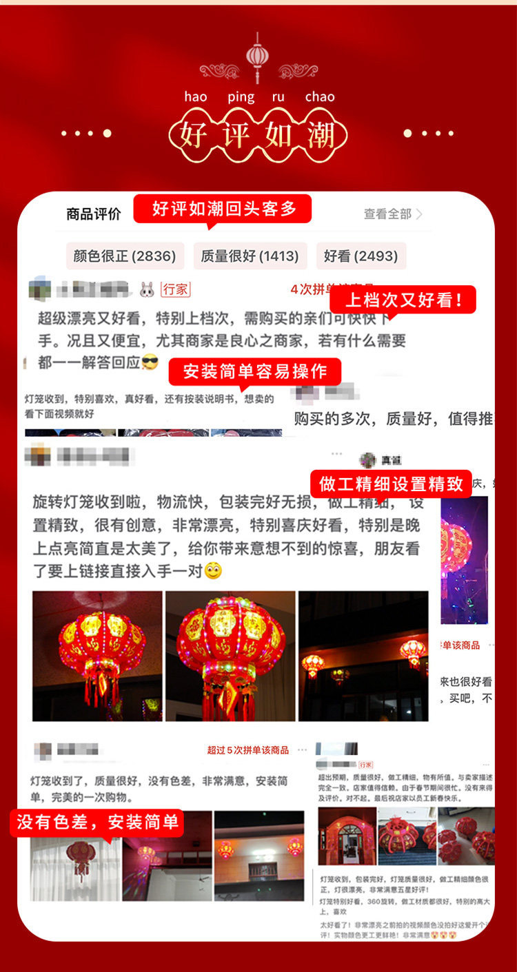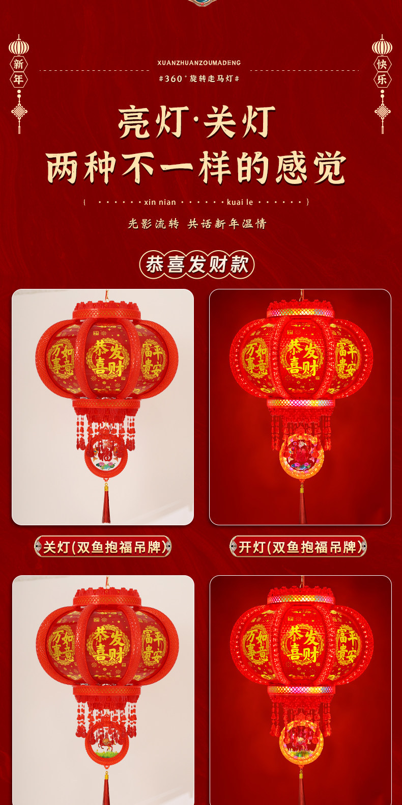 2026新款马年旋转灯笼春节七彩led走马灯插电阳台大门口新年挂饰