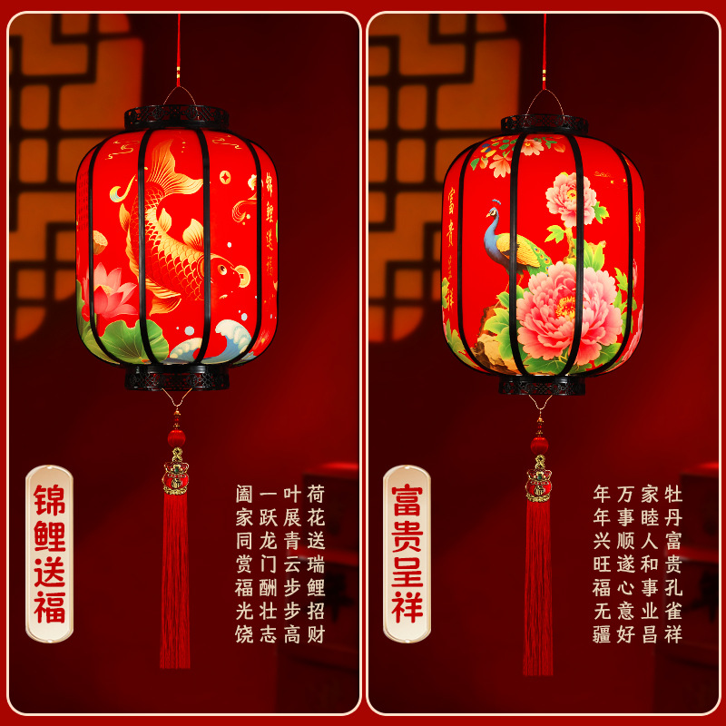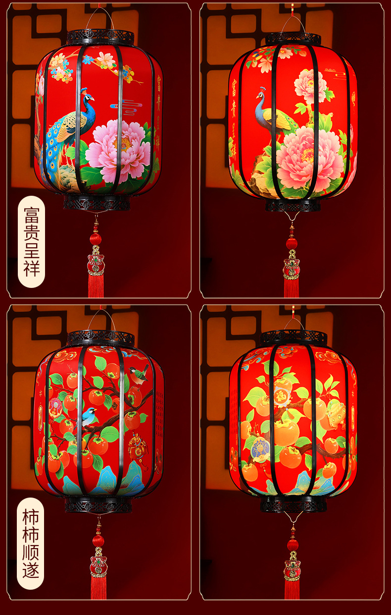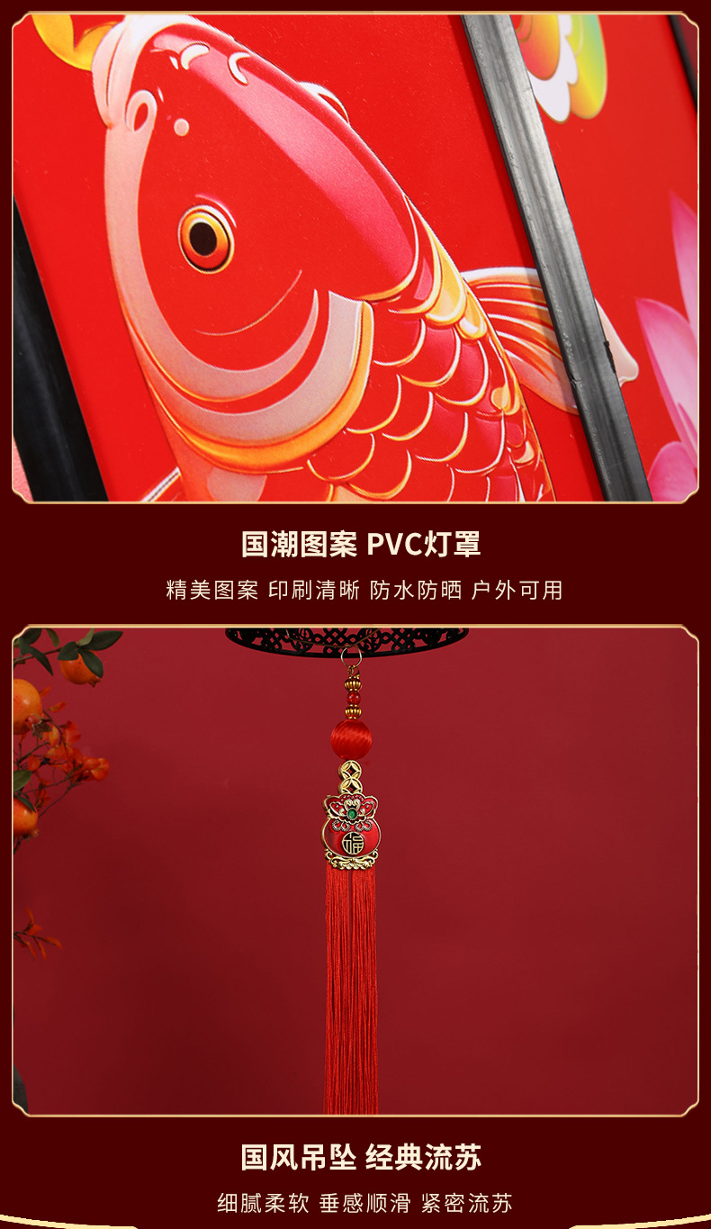 新年新款国潮灯笼旋转LED走马灯春节大门口阳台七彩可充电灯笼