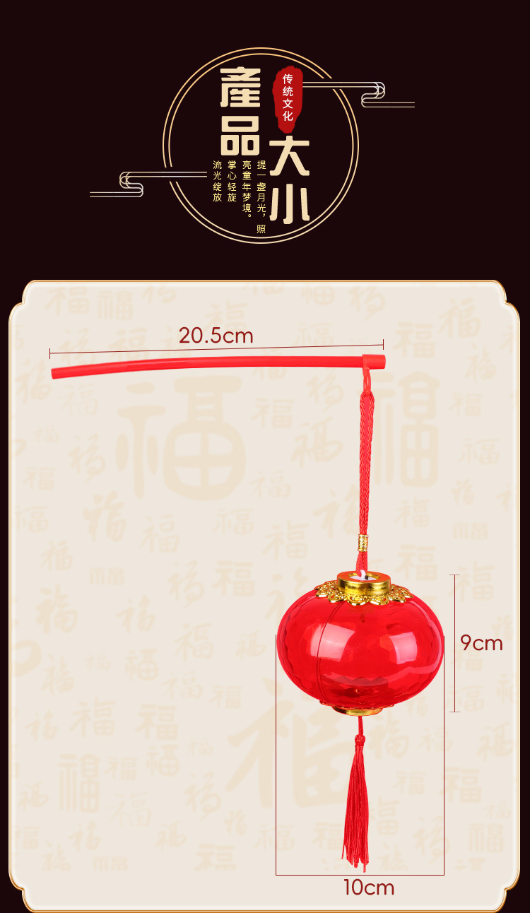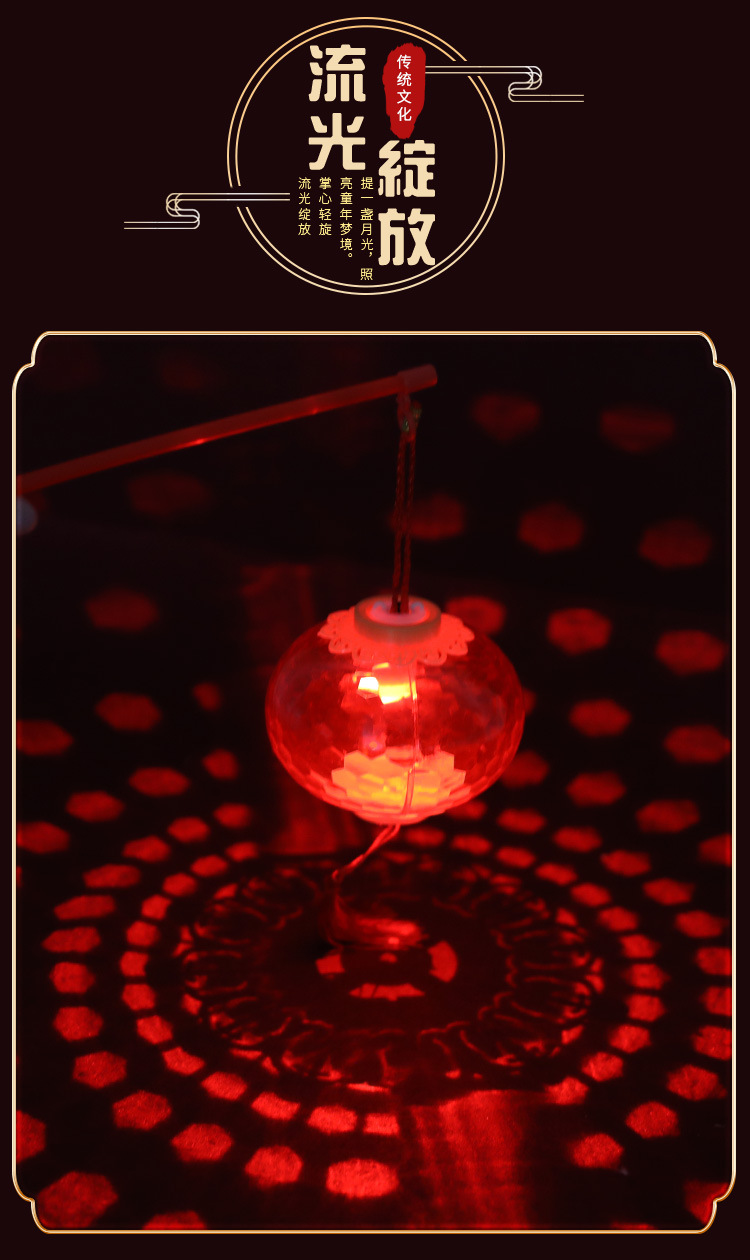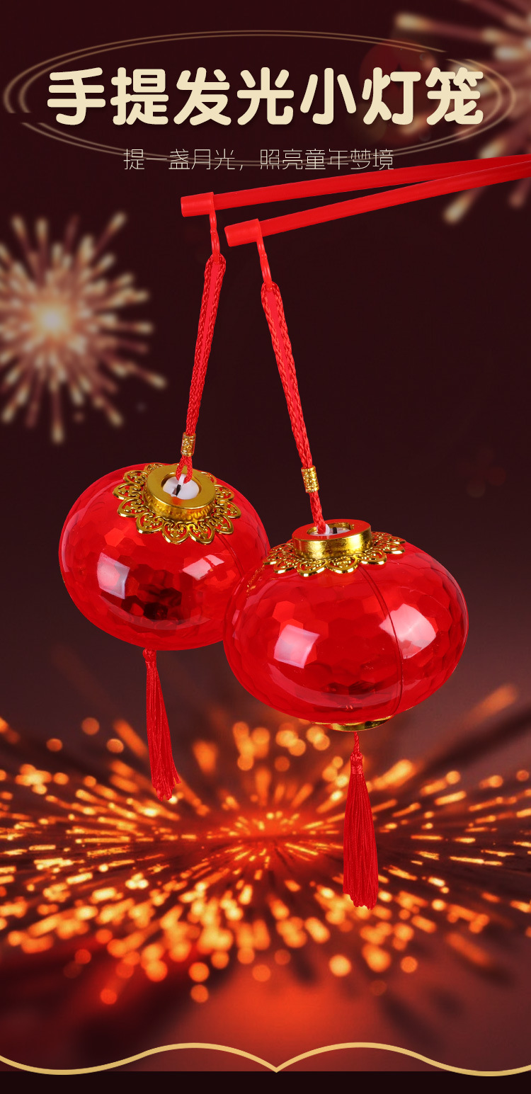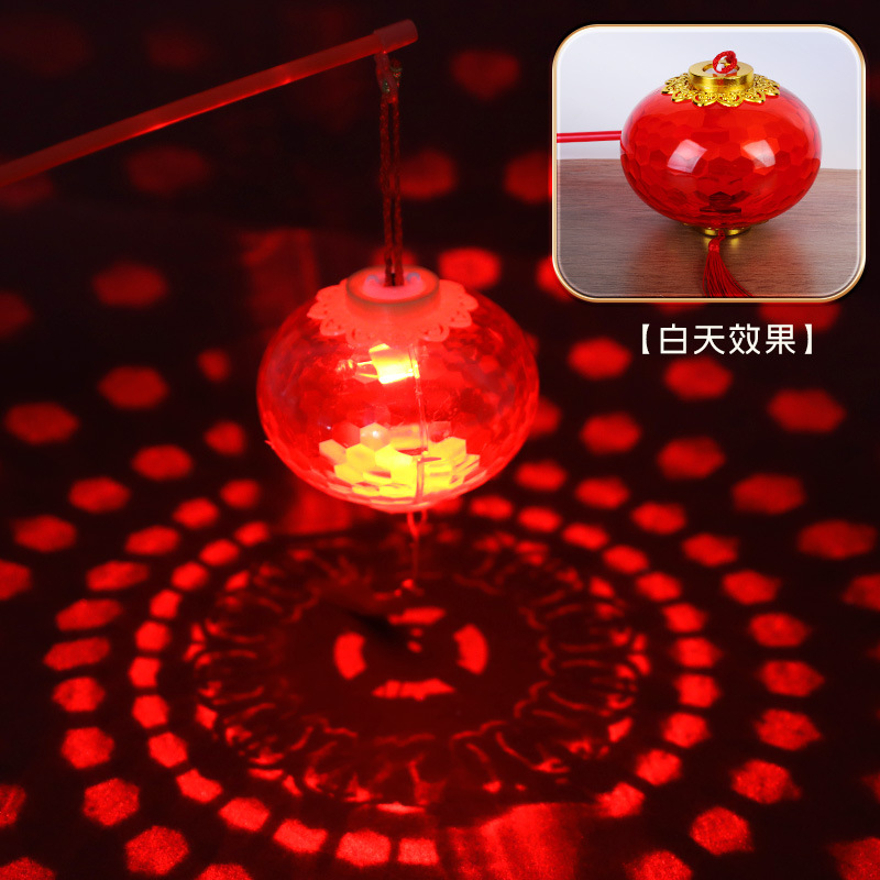新年手提发光小灯笼LED儿童玩具水晶投影红色灯笼幼儿园元宵花灯