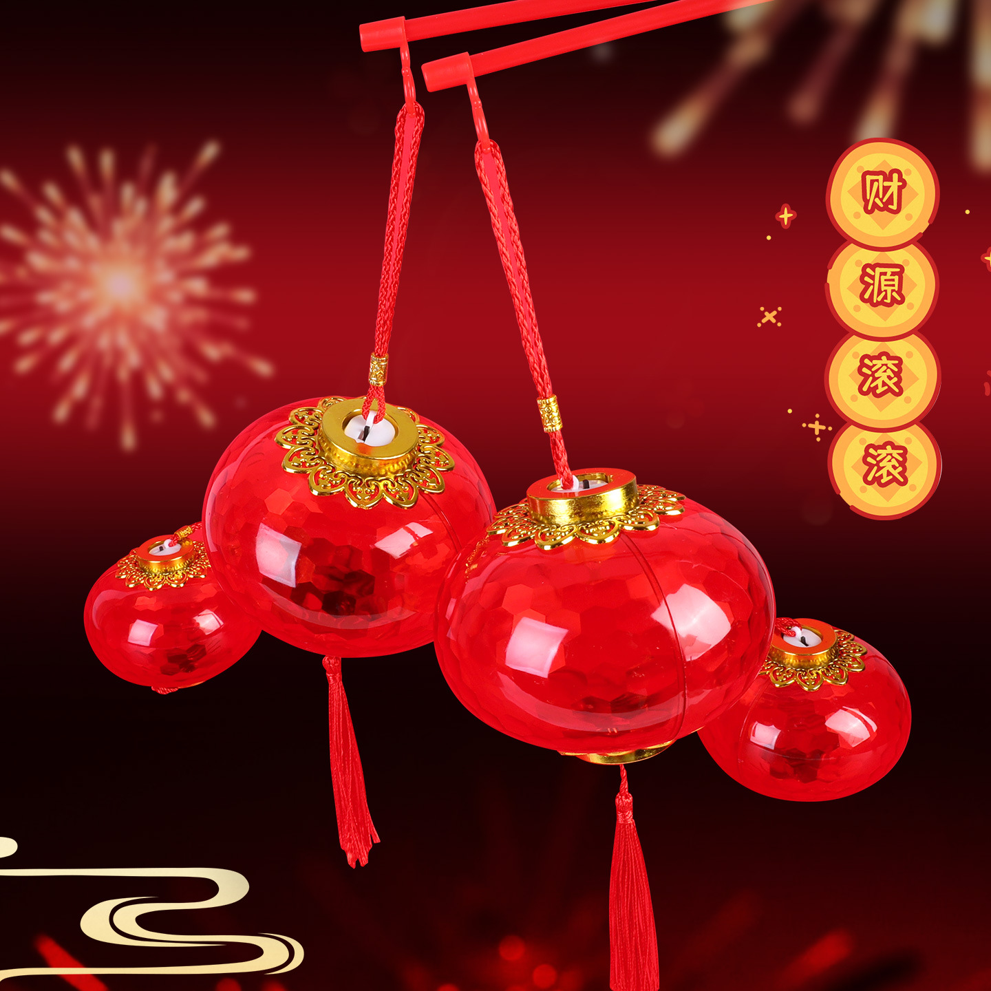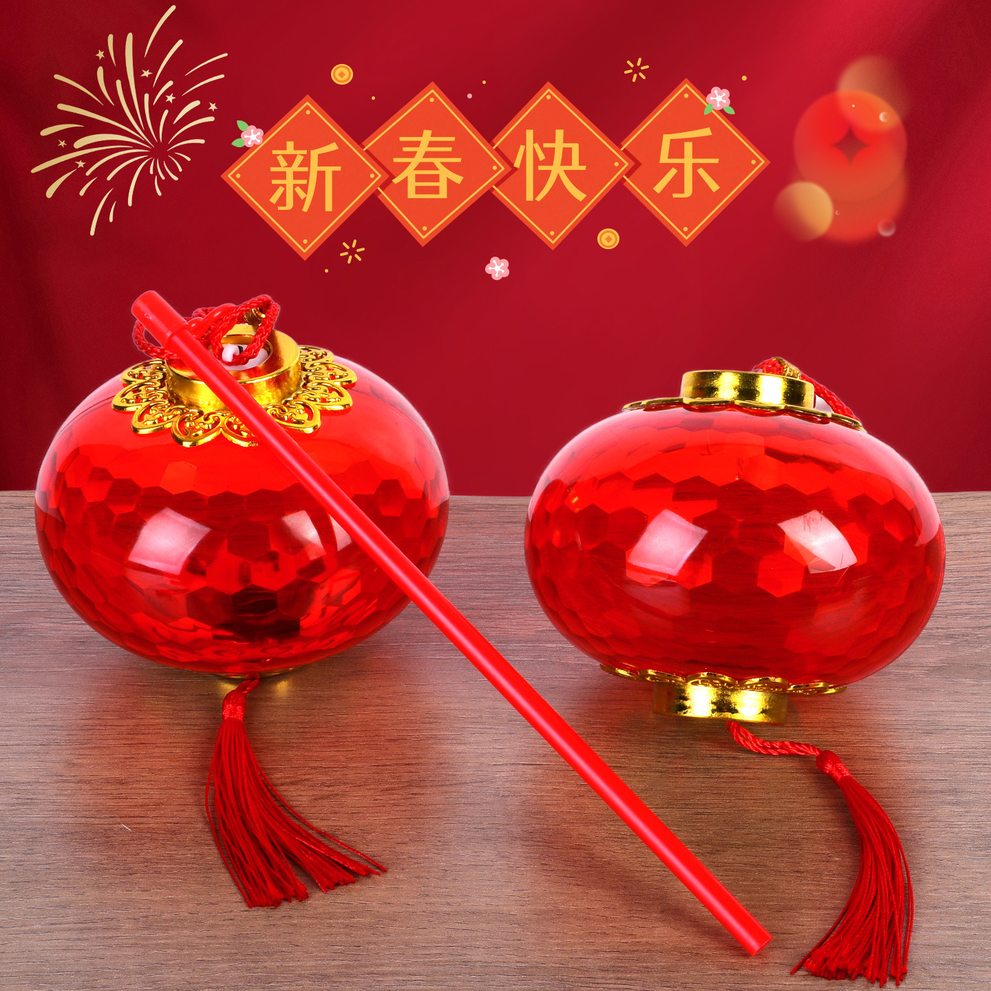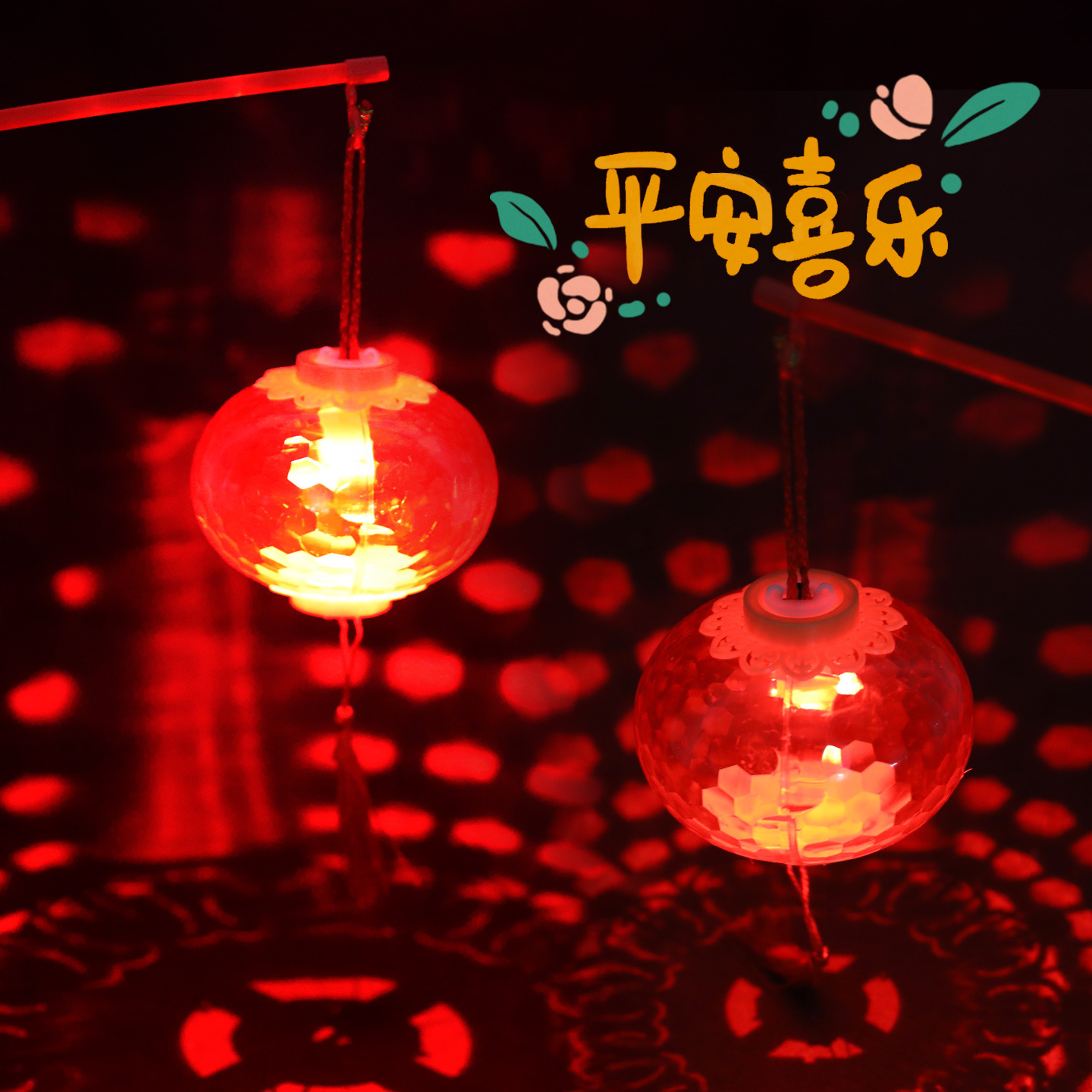 新年手提发光小灯笼LED儿童玩具水晶投影红色灯笼幼儿园元宵花灯