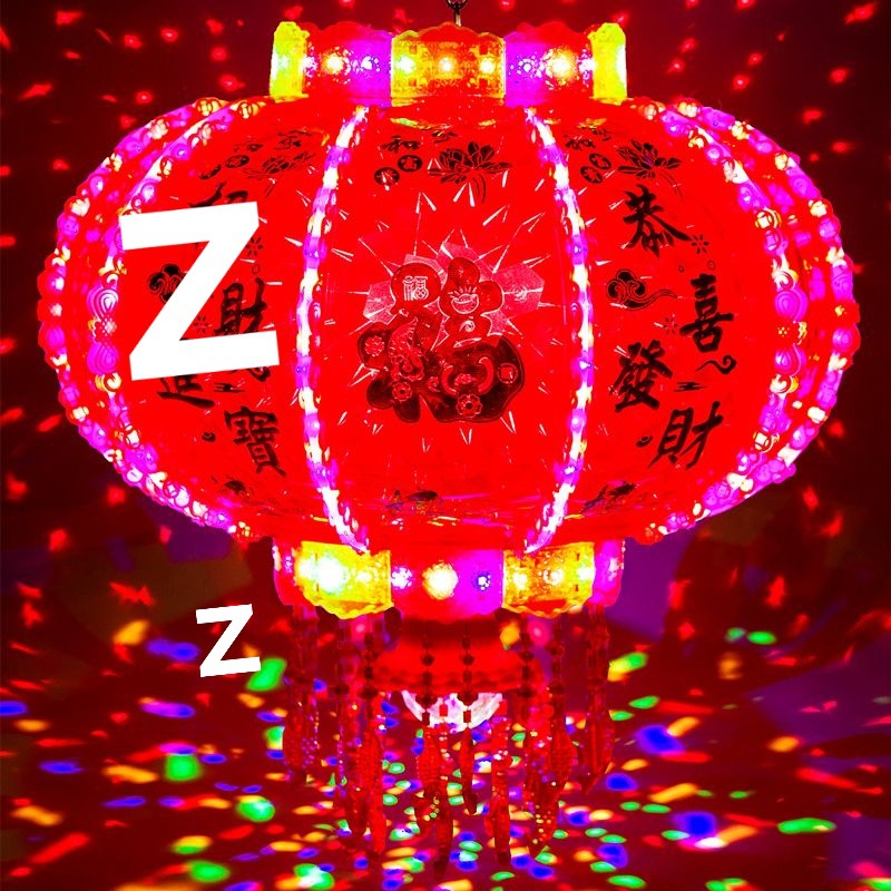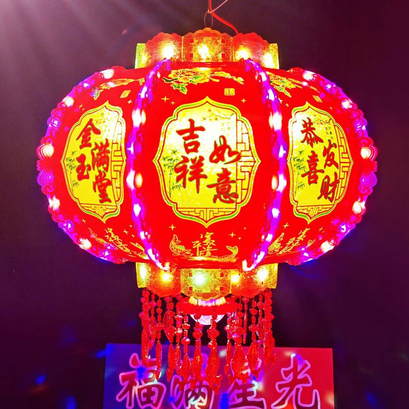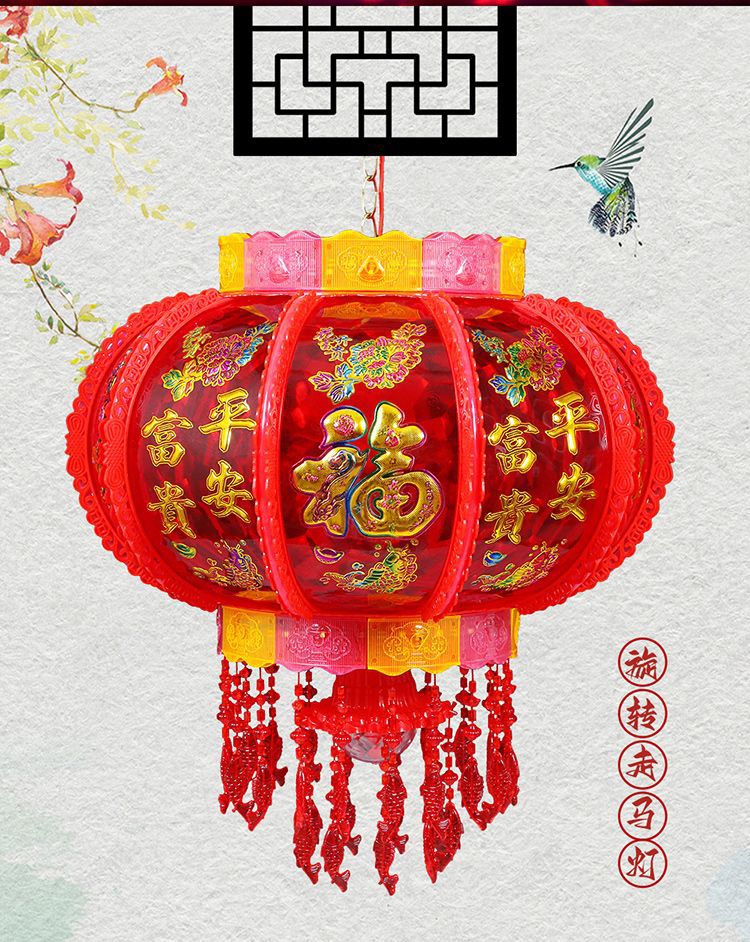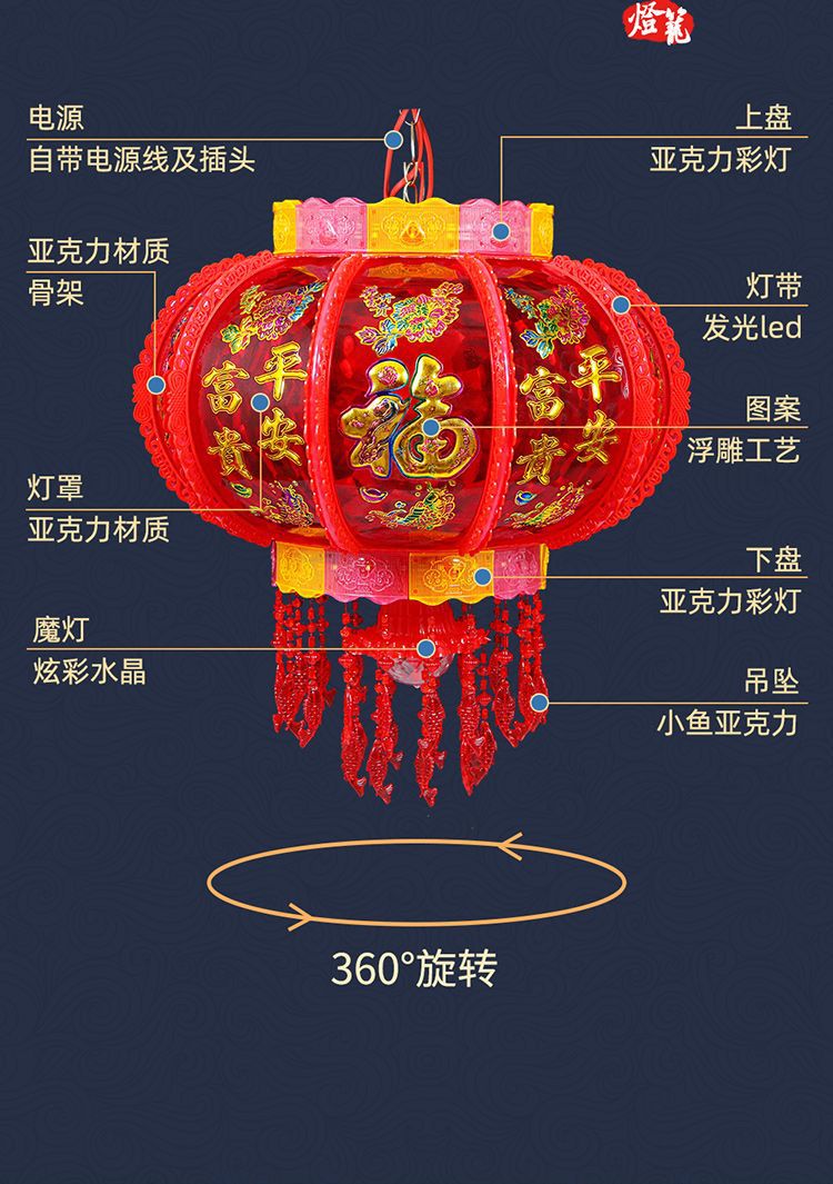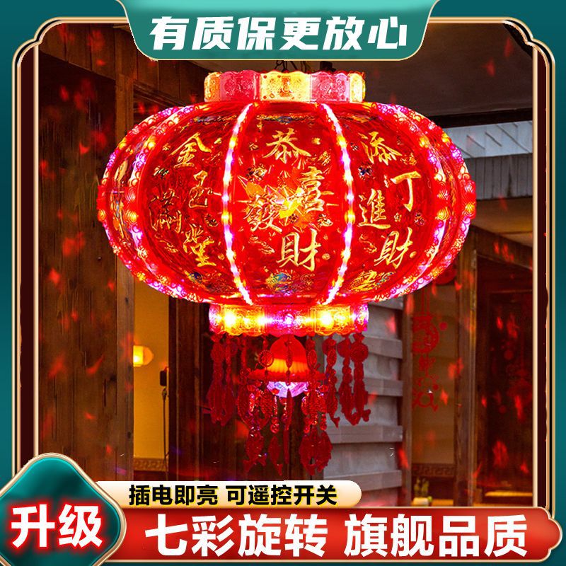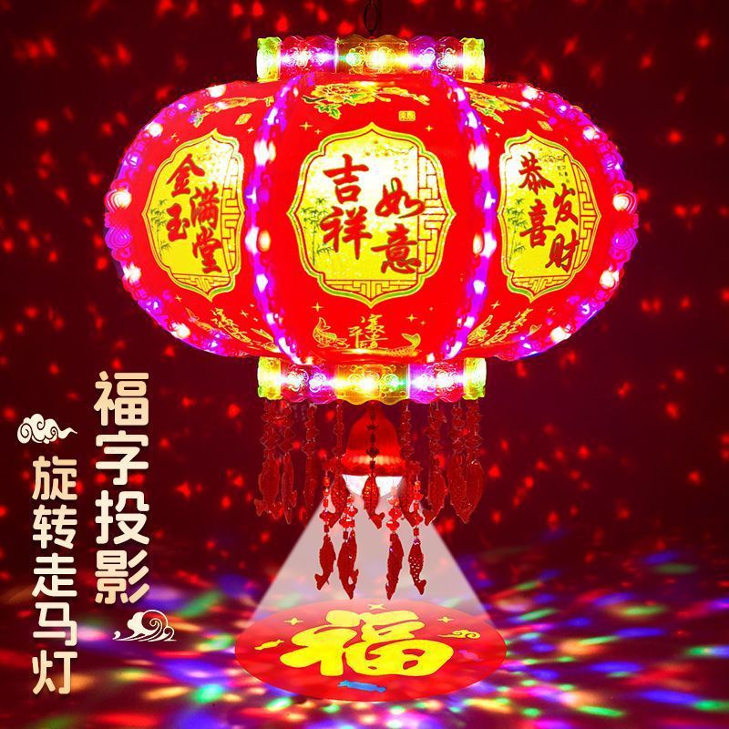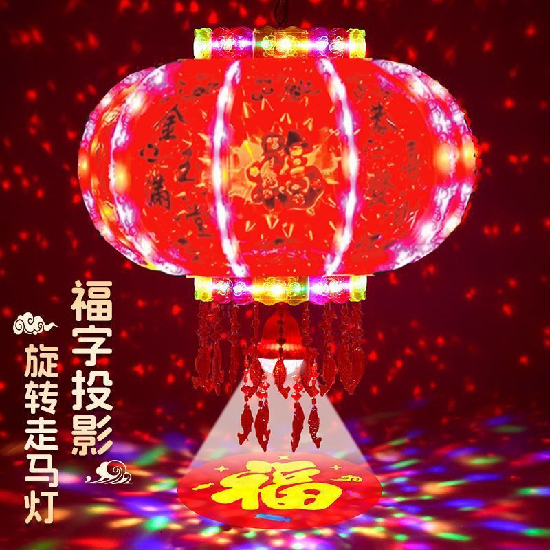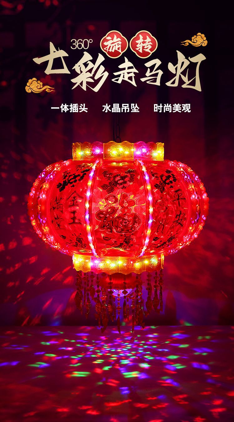 新年网红灯笼led七彩旋转灯笼走马灯春节福字流光阳台遥控插电式