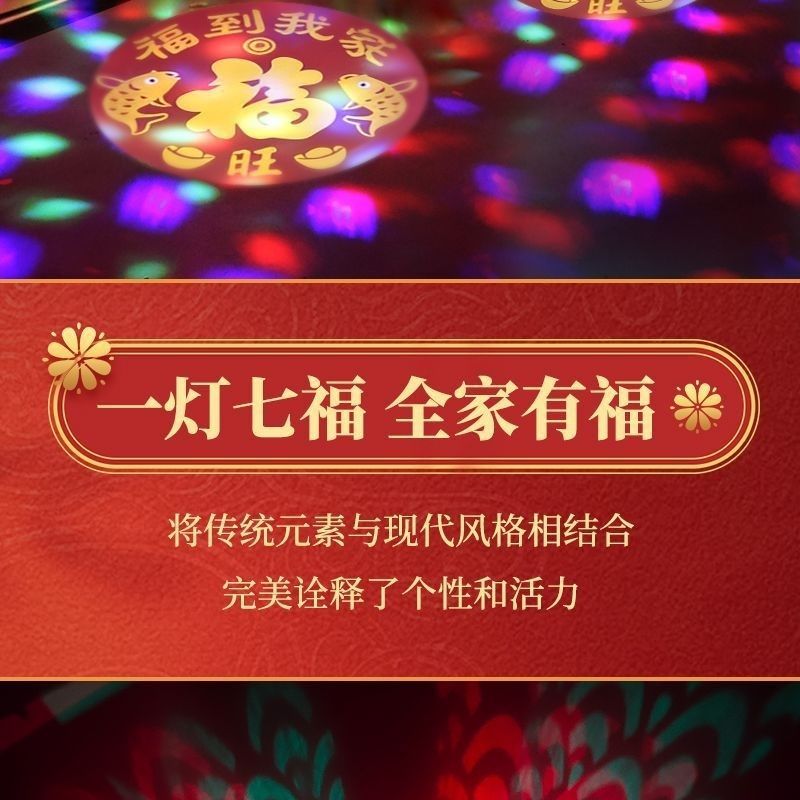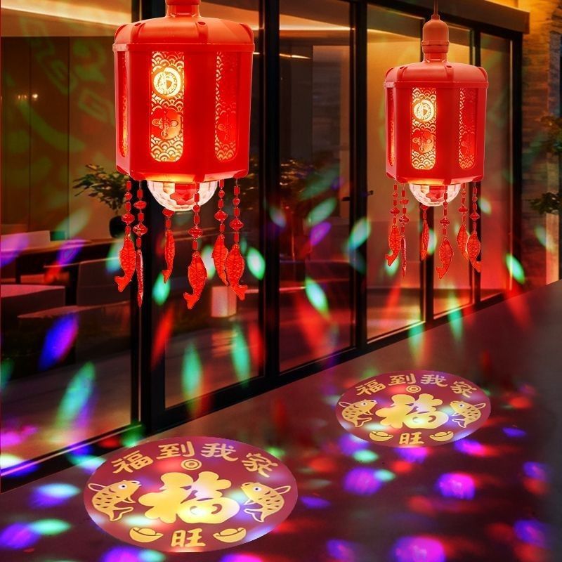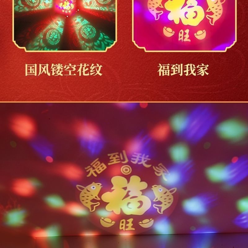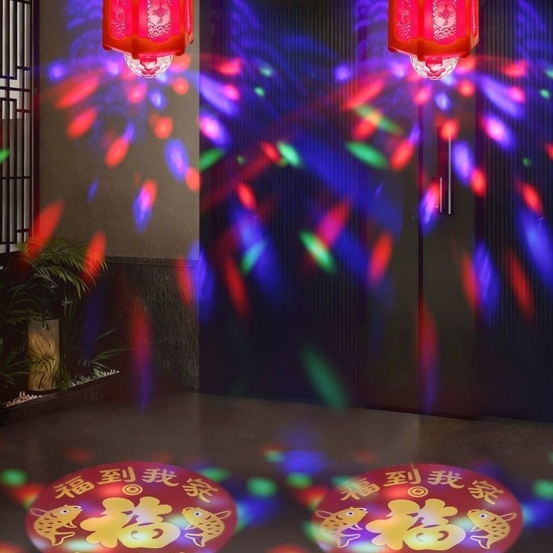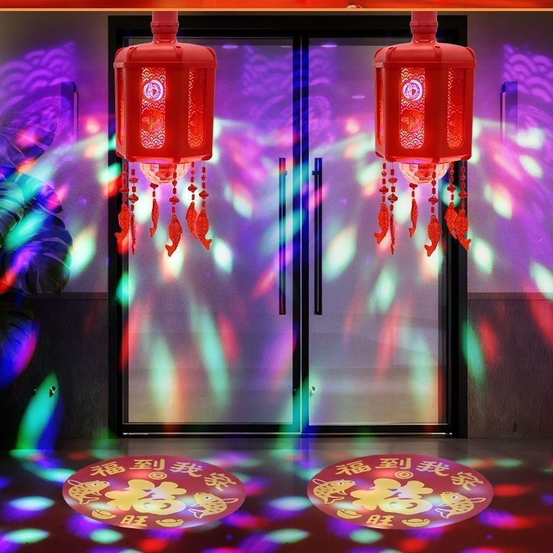 2026新年炫彩福字灯笼七彩魔球春节投影灯庭院阳台装饰彩灯批发