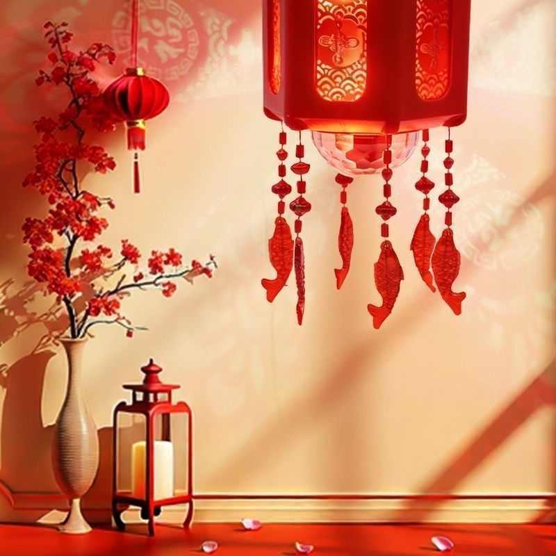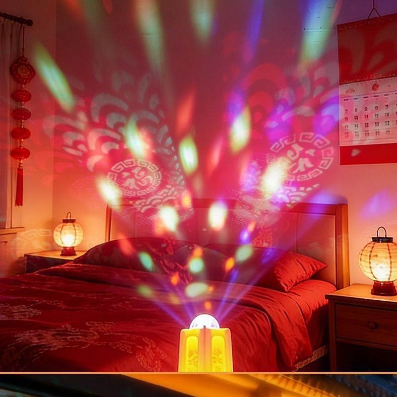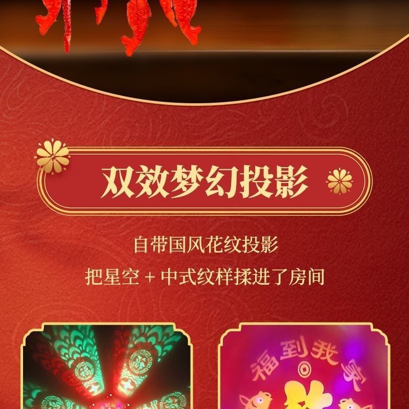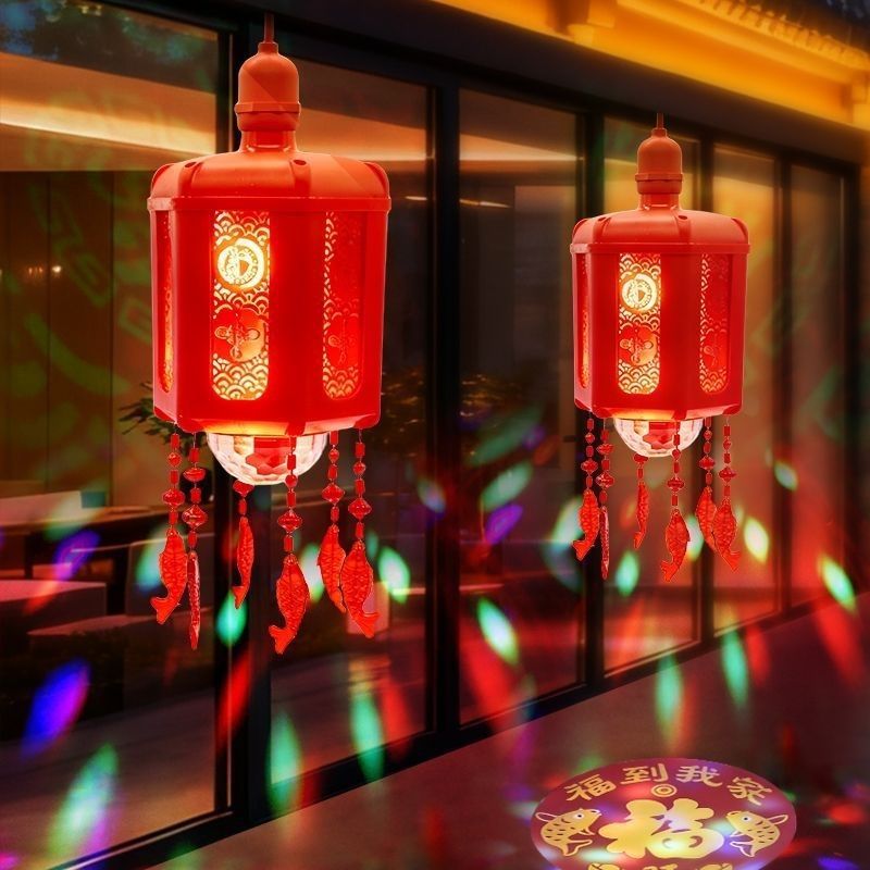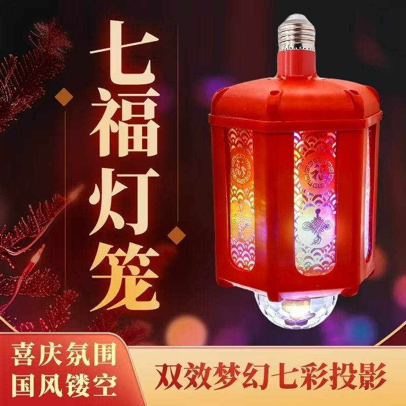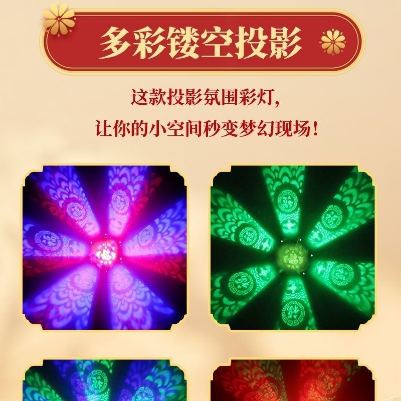 2026新年炫彩福字灯笼七彩魔球春节投影灯庭院阳台装饰彩灯批发