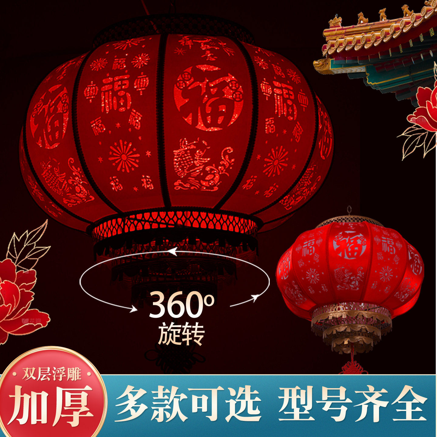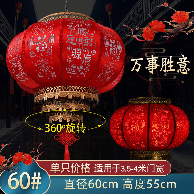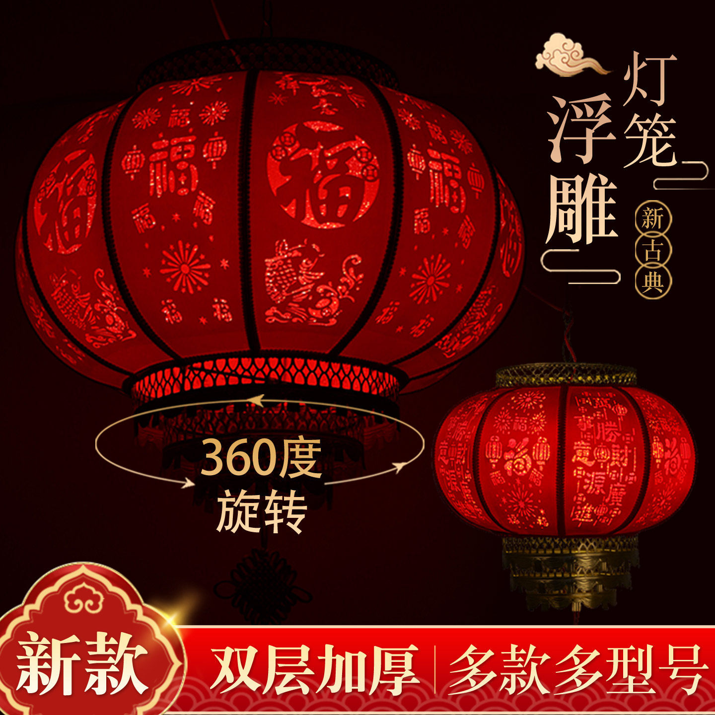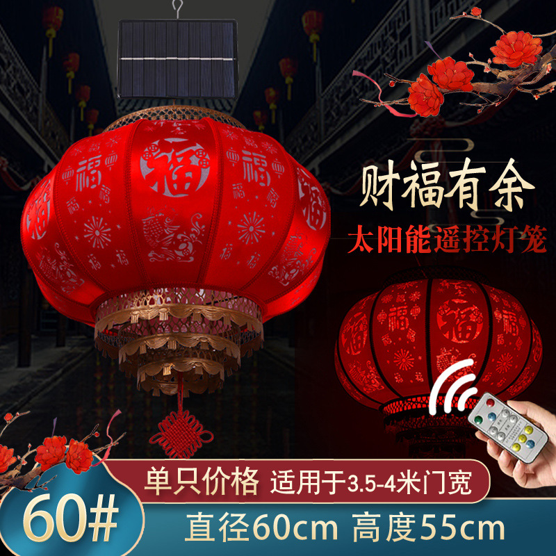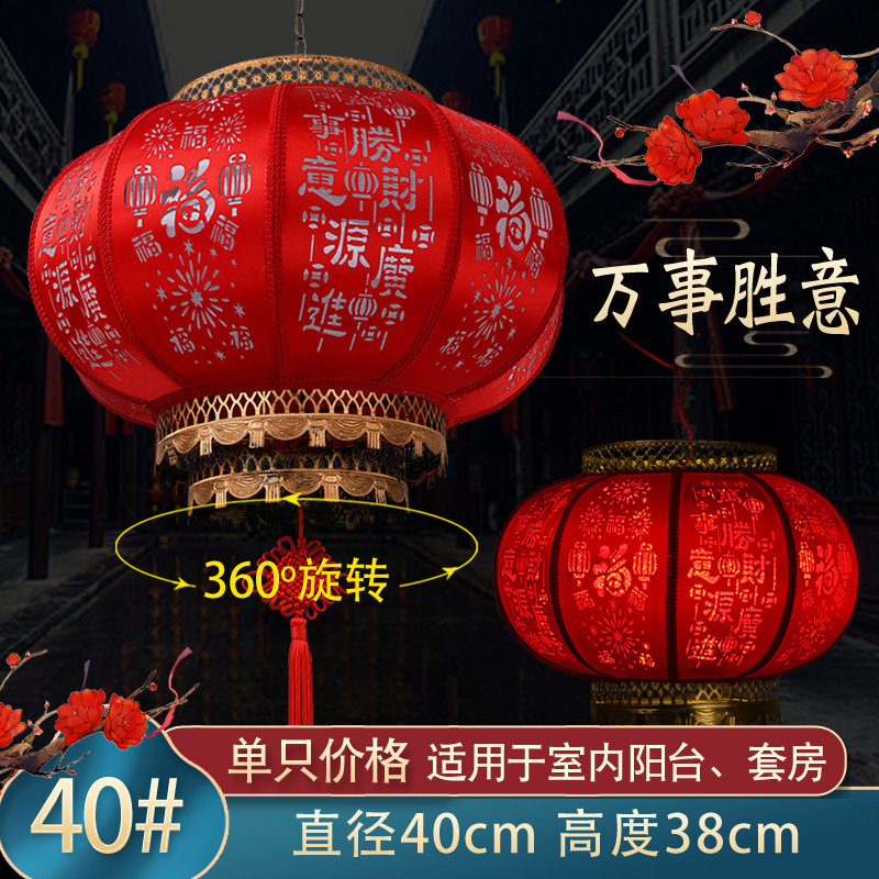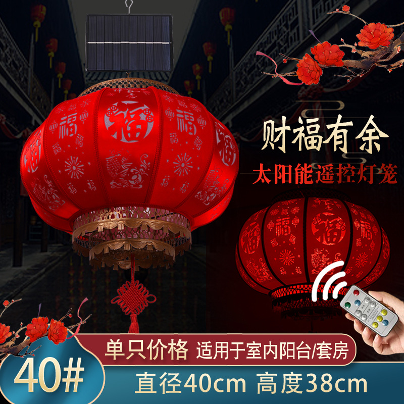 太阳能红灯笼春节免插电户外阳台大门口镂空浮雕旋转羊皮灯笼