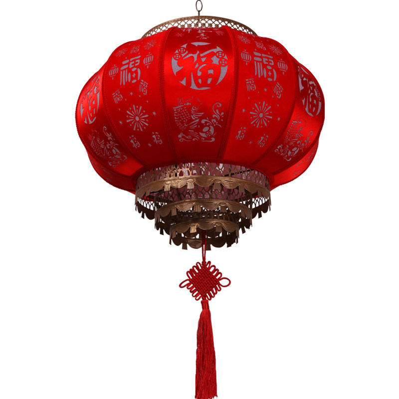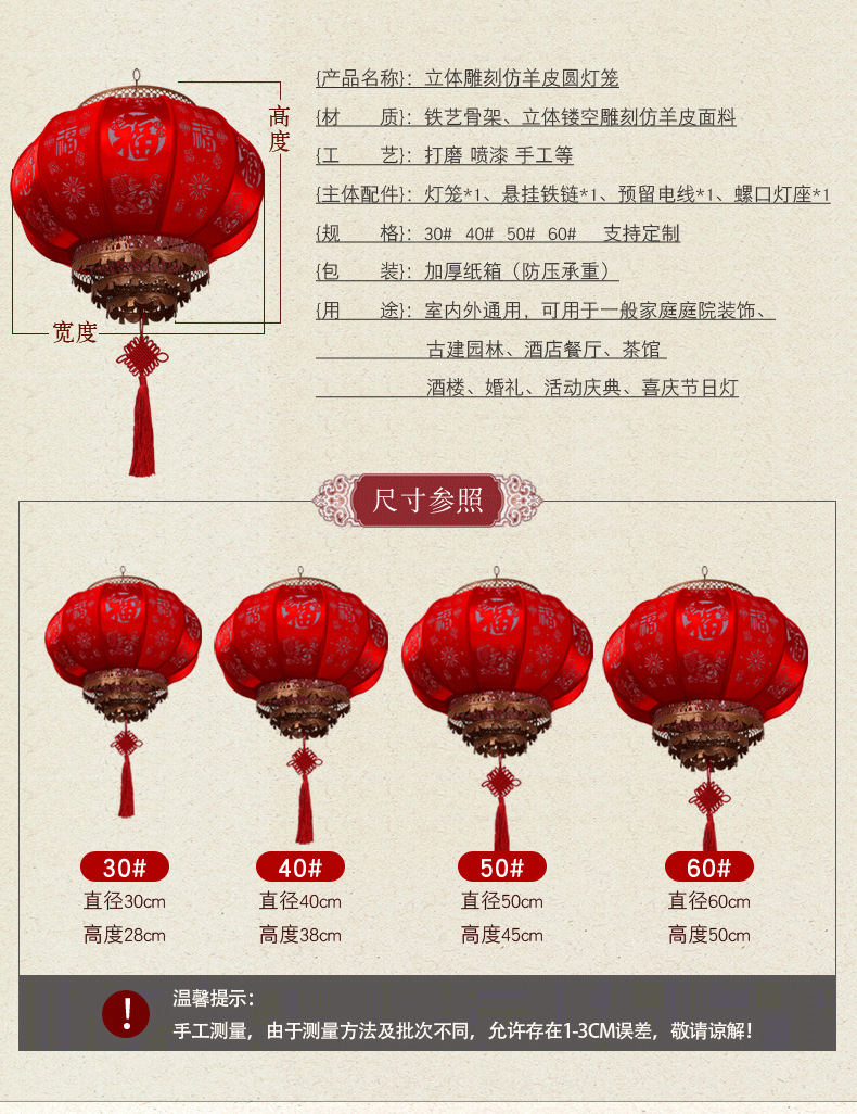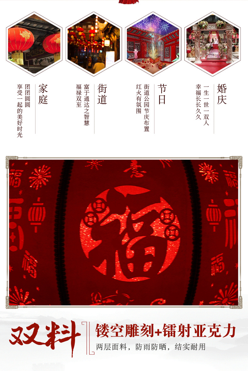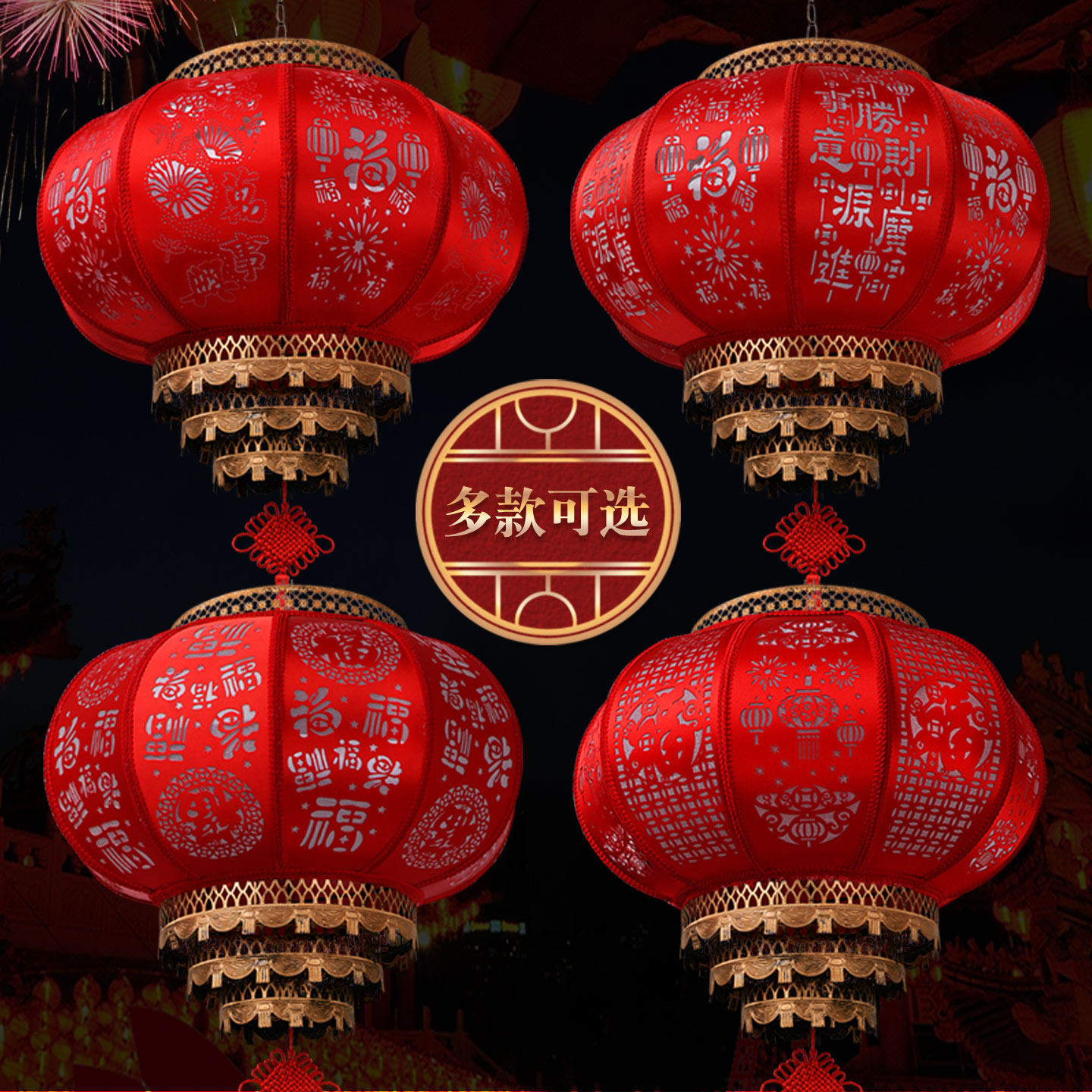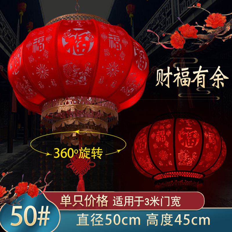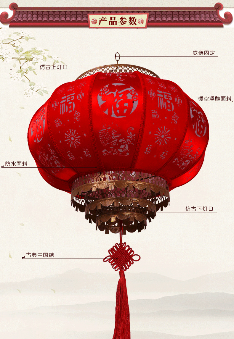 太阳能红灯笼春节免插电户外阳台大门口镂空浮雕旋转羊皮灯笼