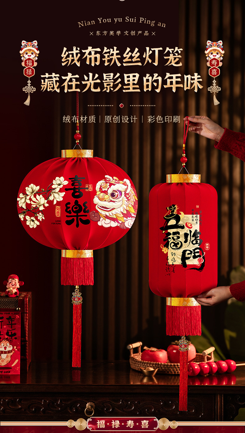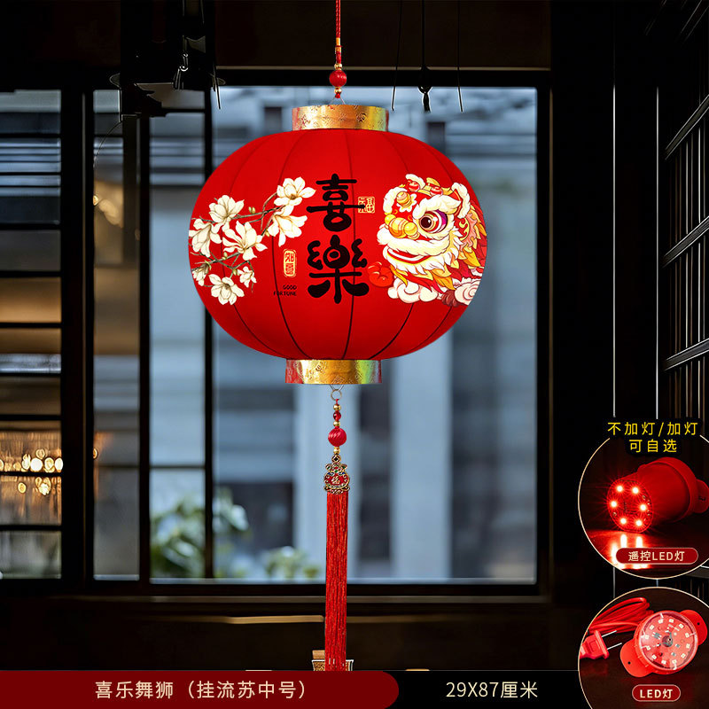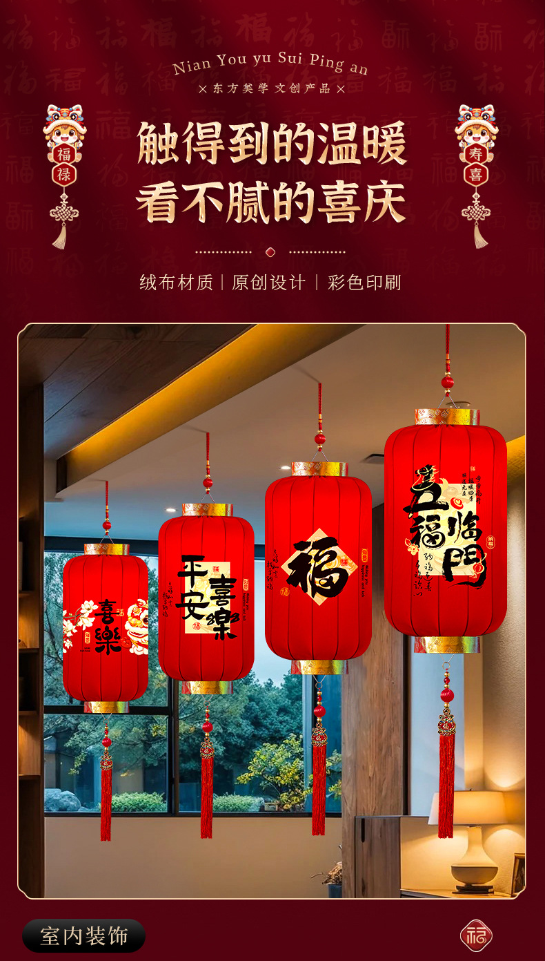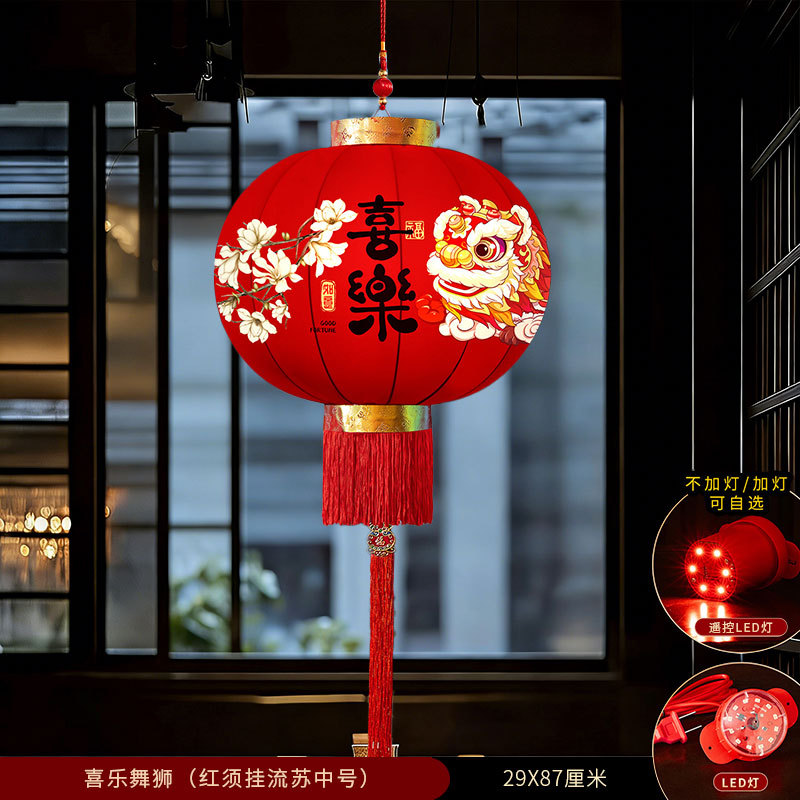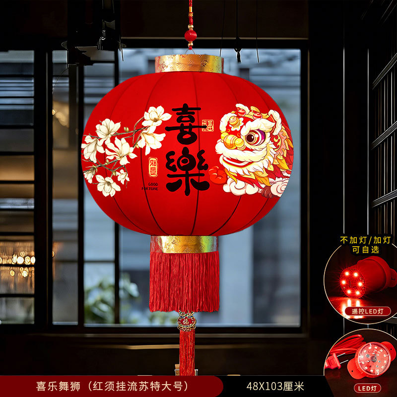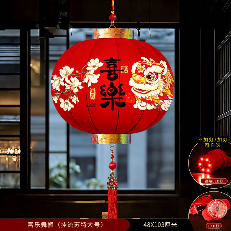 2026新款大红灯笼春节新年装饰免插电led灯阳台灯笼一对绒布灯笼