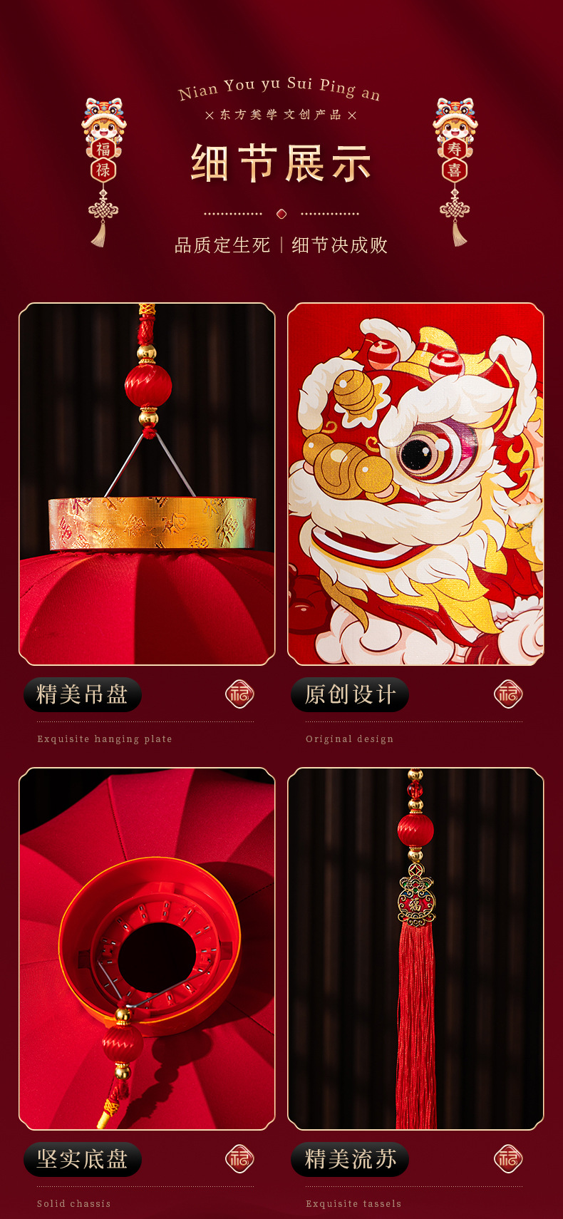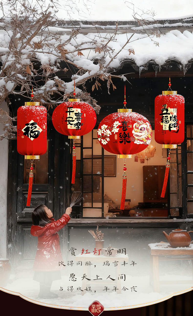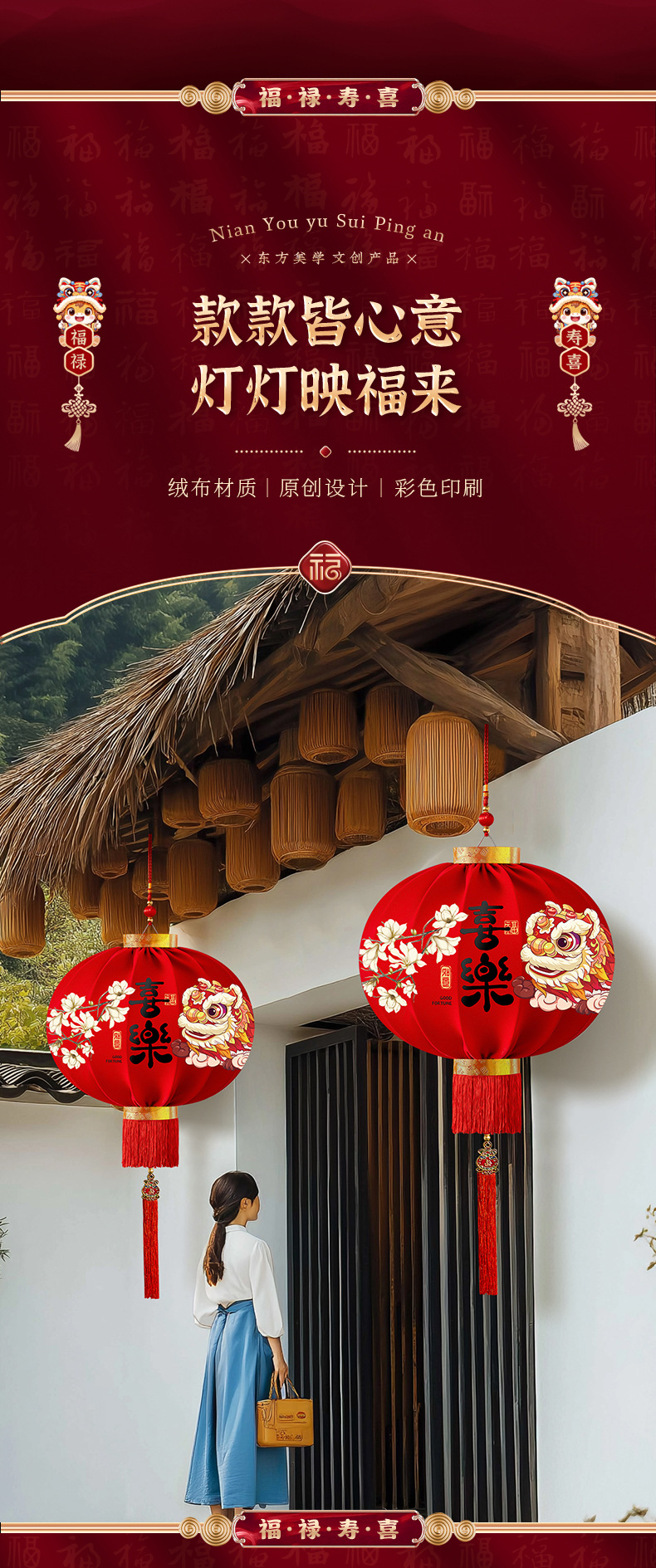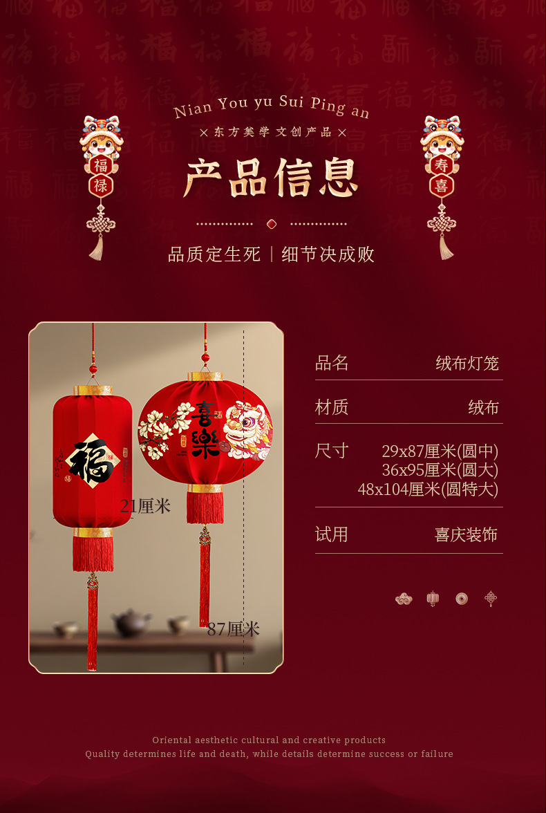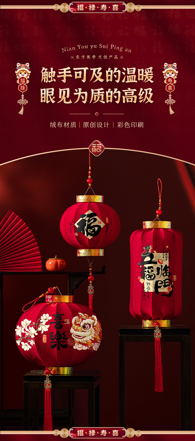 2026新款大红灯笼春节新年装饰免插电led灯阳台灯笼一对绒布灯笼