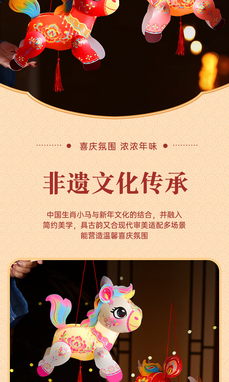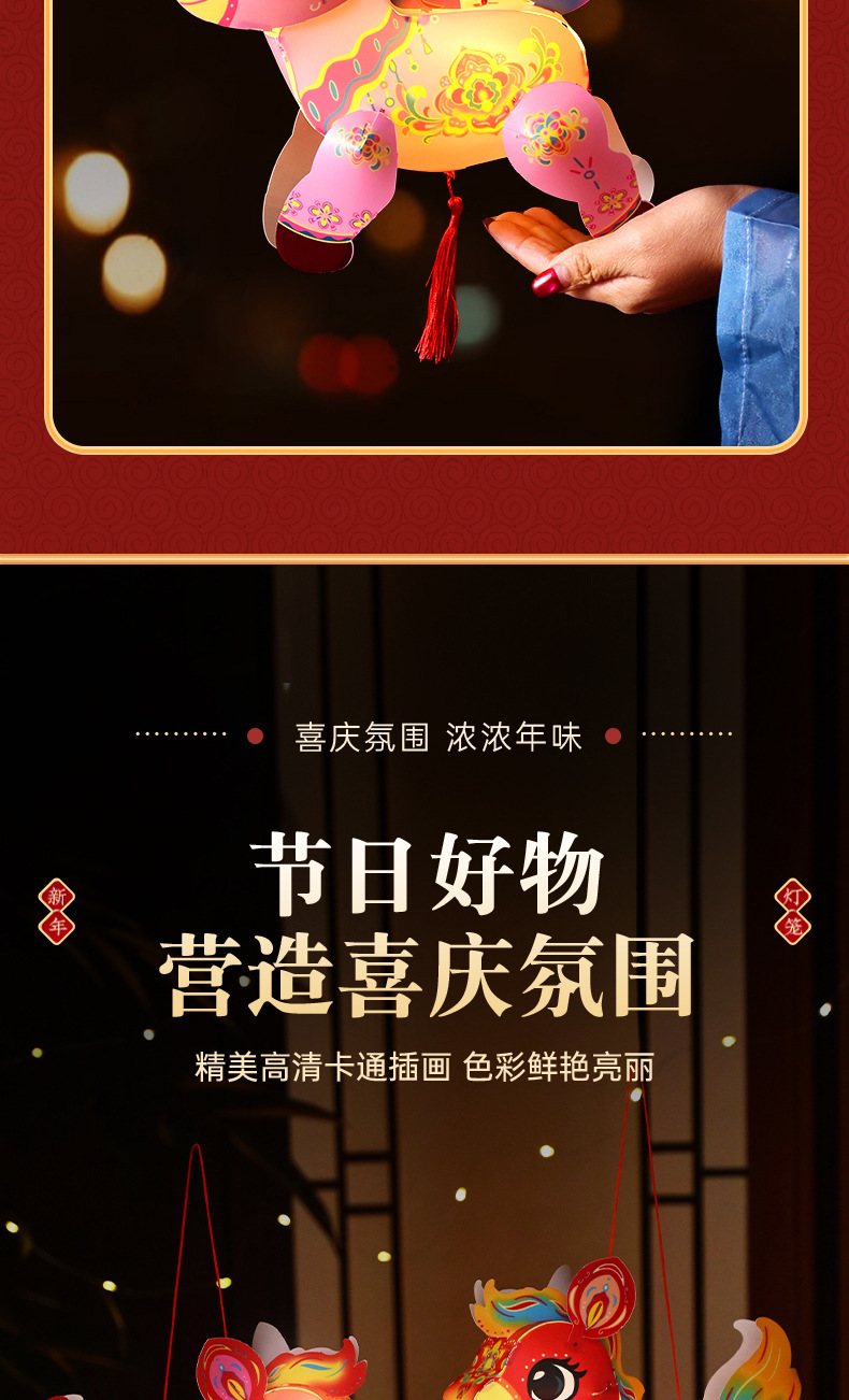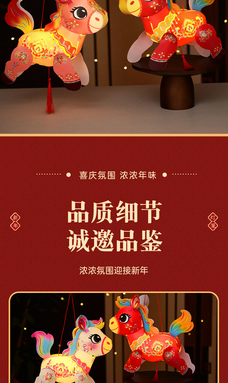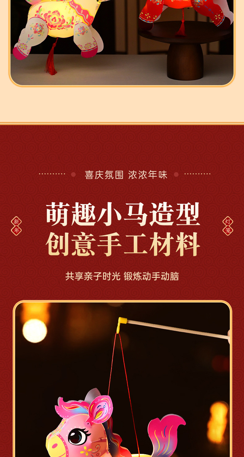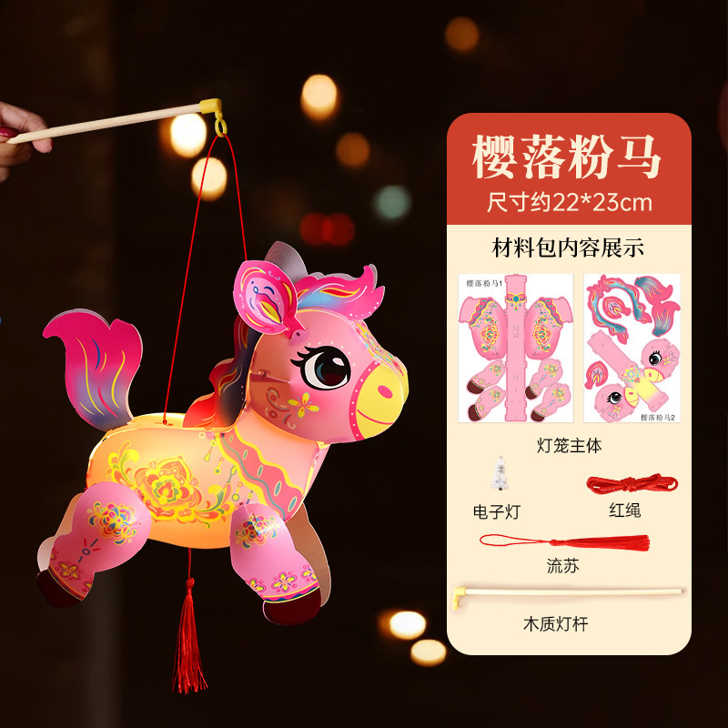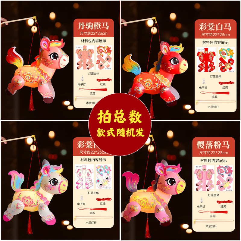 春节灯笼发光投影手提古风宫灯儿童手工diy材料小马灯笼花灯