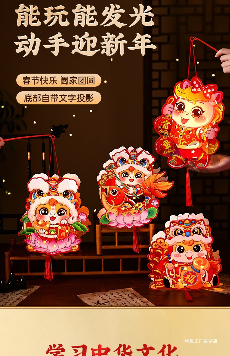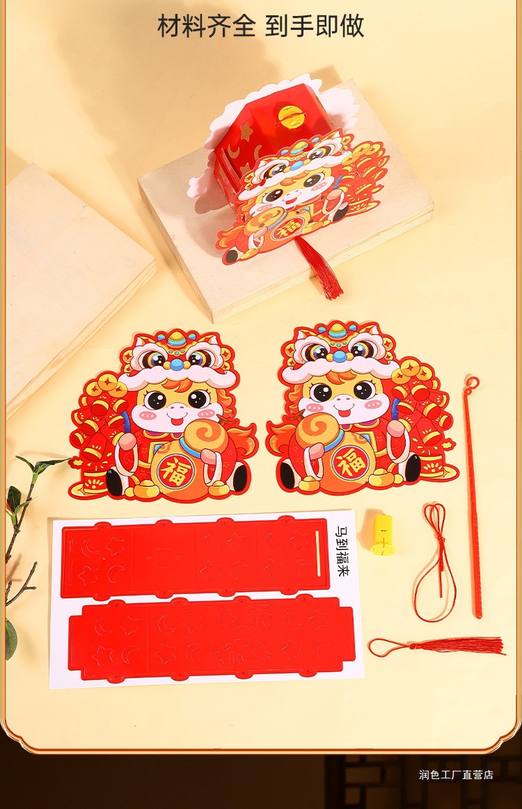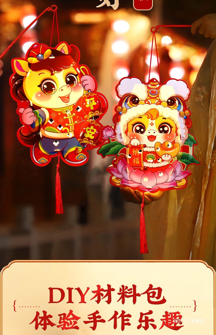 新年灯笼手工diy材料包儿童手提过马年花灯2026新款发光春节挂饰