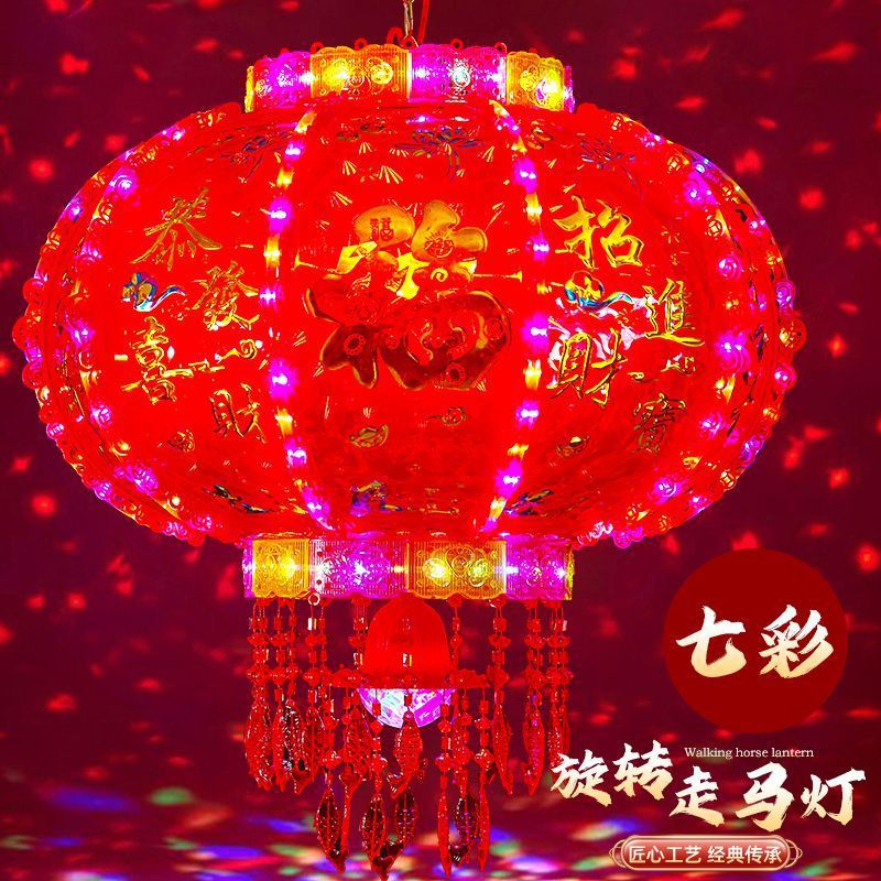 led七彩灯笼装饰旋转吊灯走马灯阳台红灯笼大门乔迁新年灯笼跨境