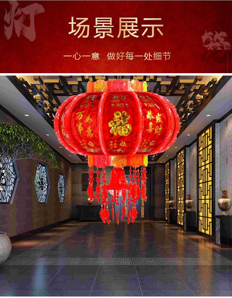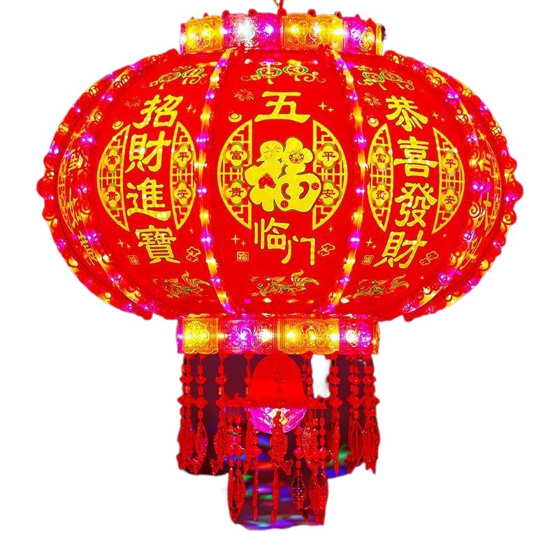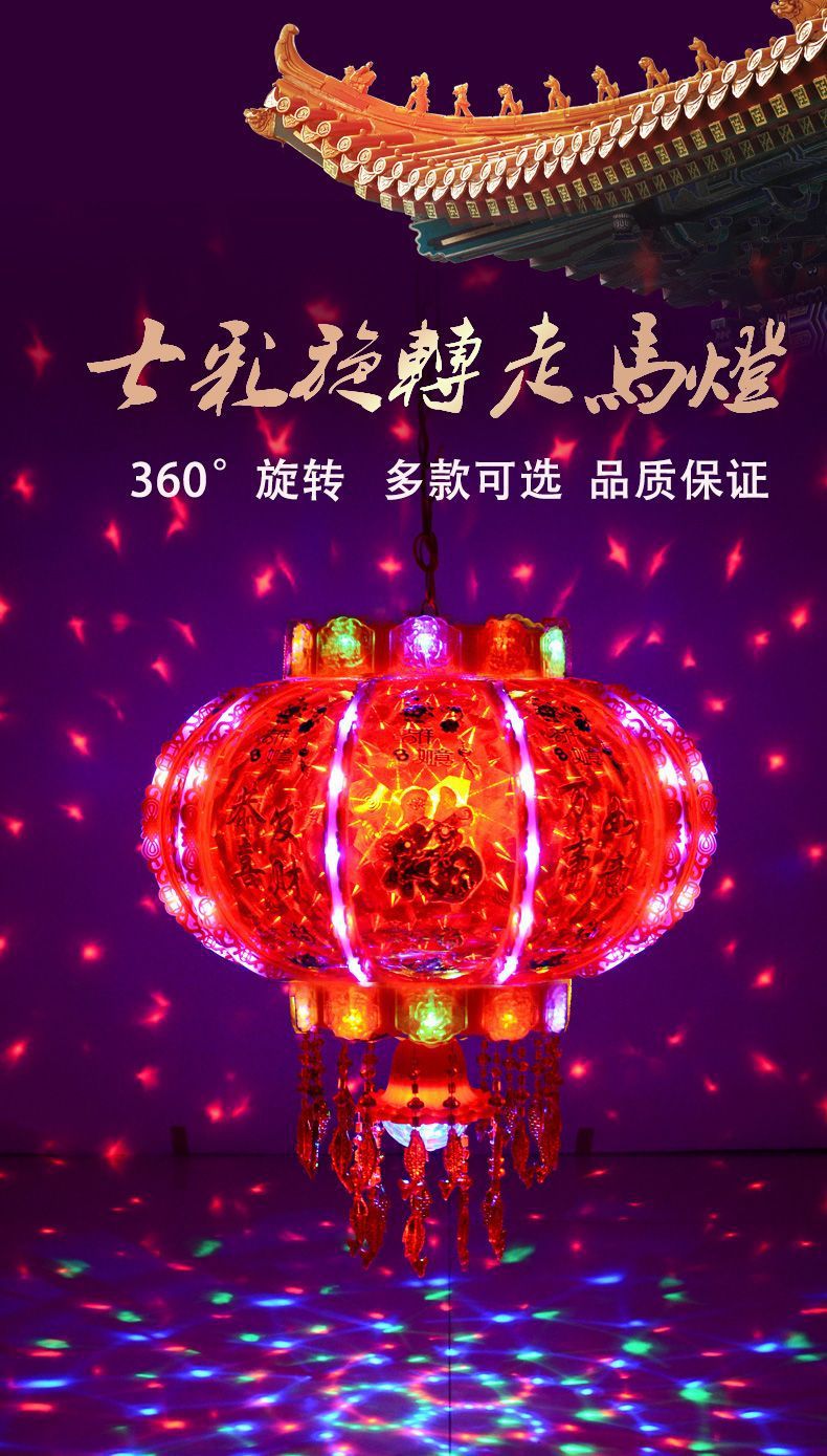 新年灯笼led七彩旋转阳台乔迁装饰大门福字春节灯笼红新款走马灯