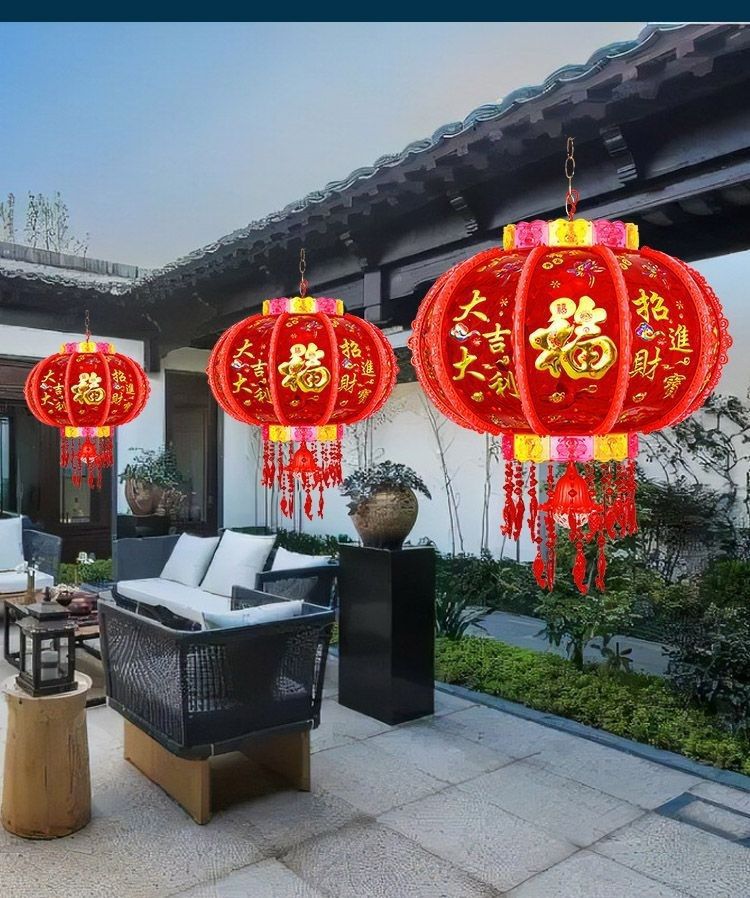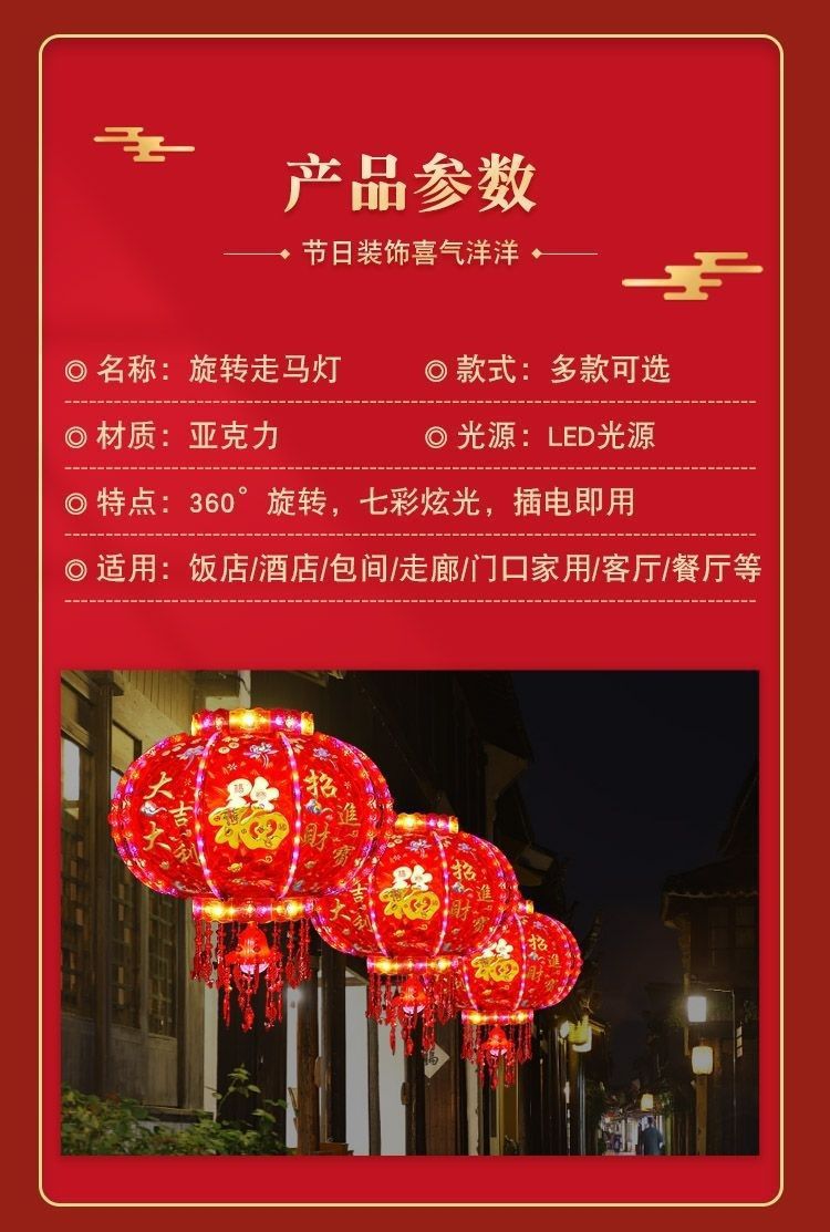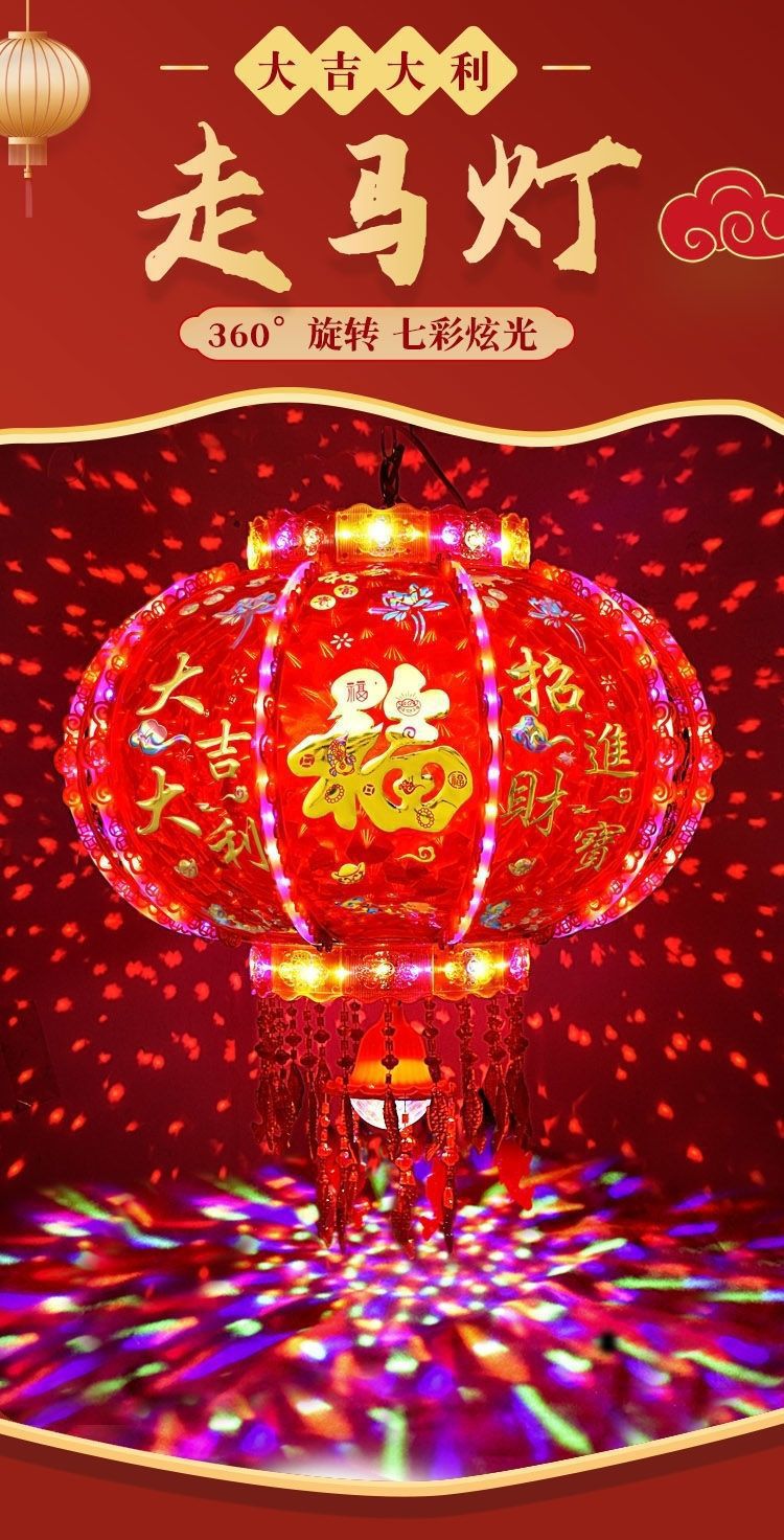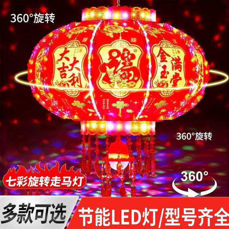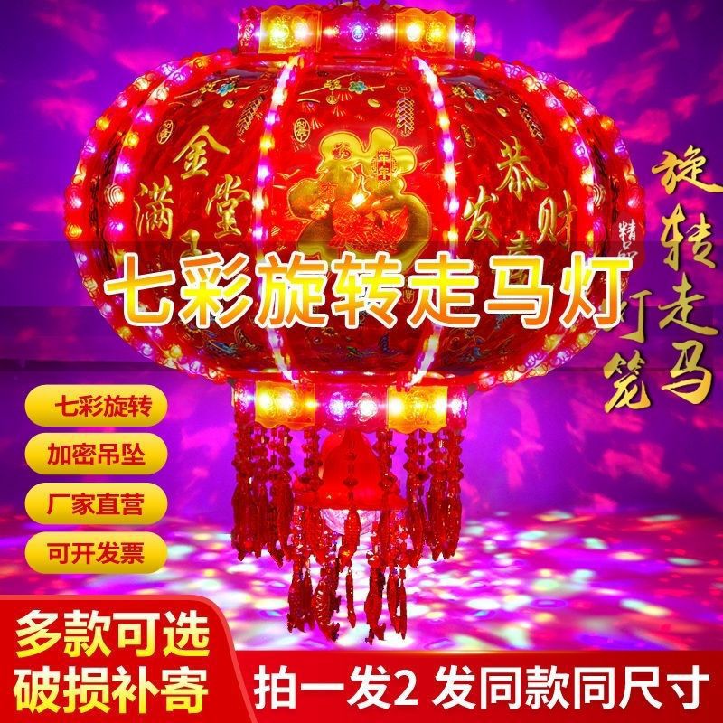 新年发光灯笼旋转走马灯过年LED七彩阳台大门口一对春节2026新款