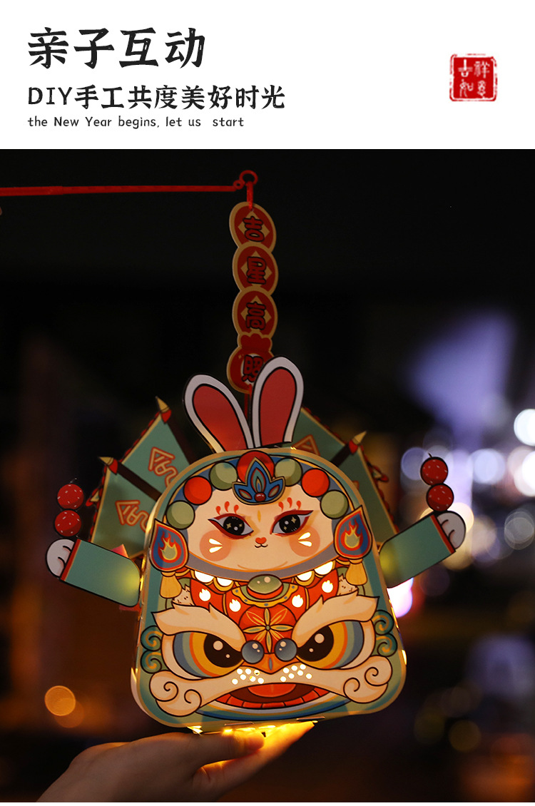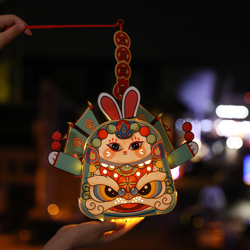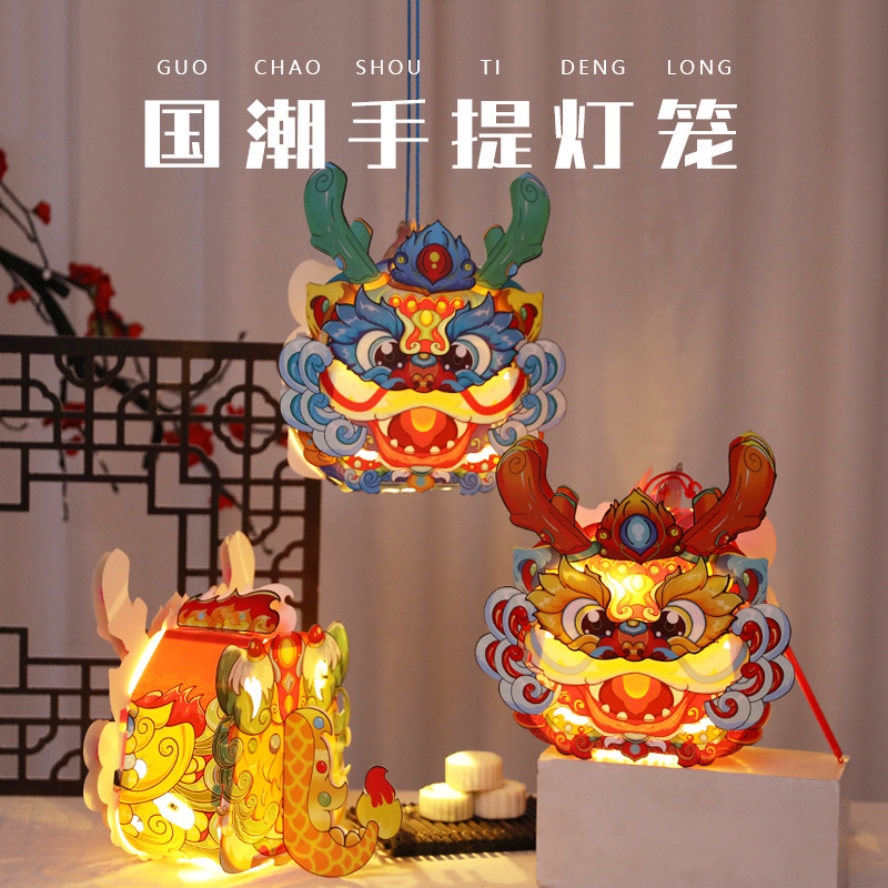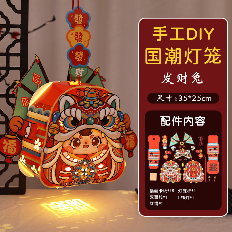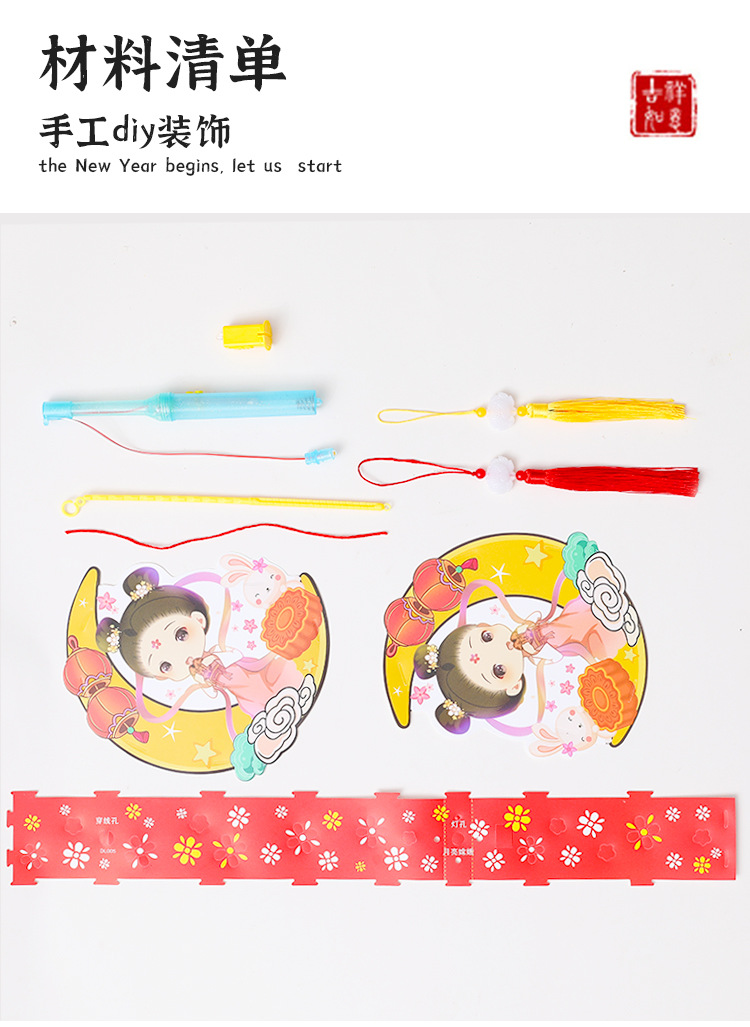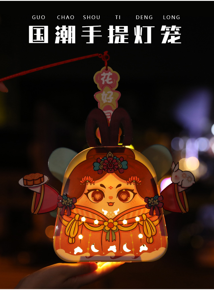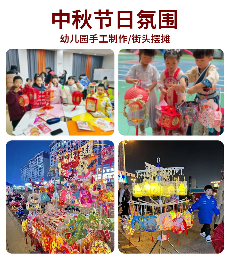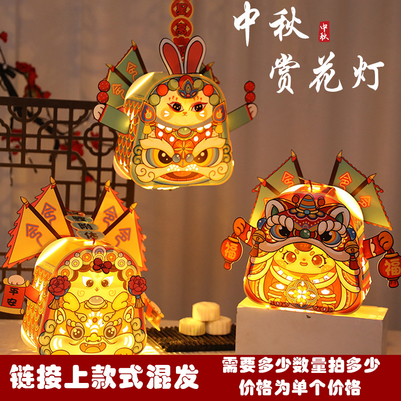 跨境中秋节手提发光灯笼国潮手工diy花灯投影灯笼儿童古风走马灯