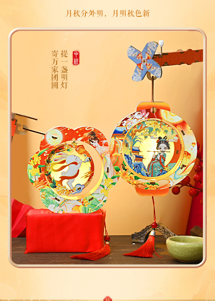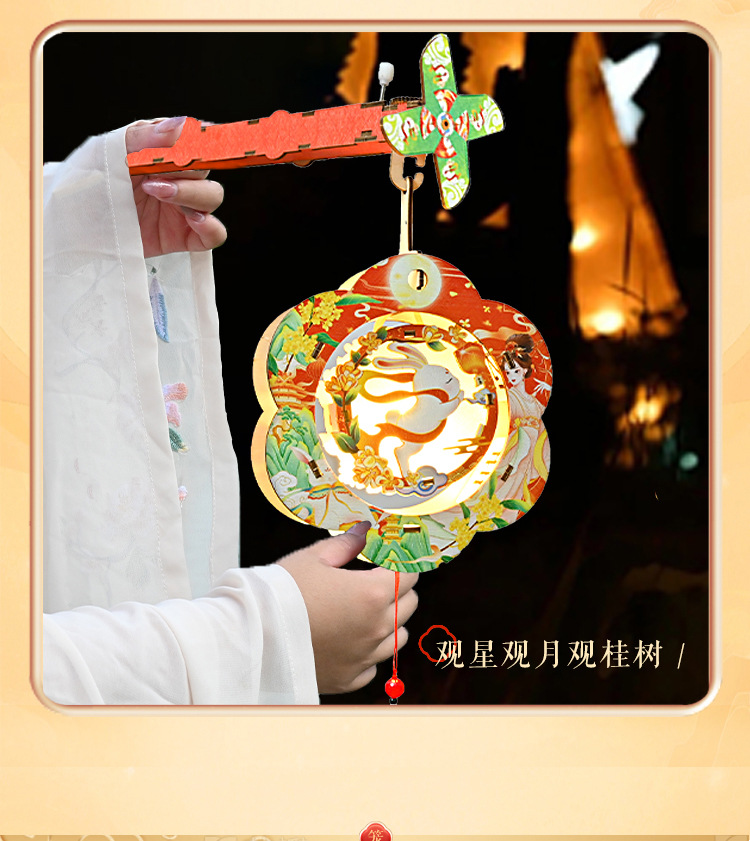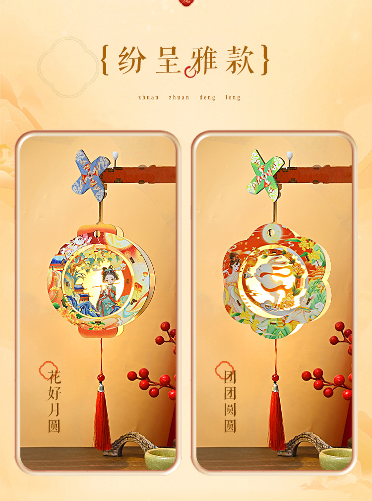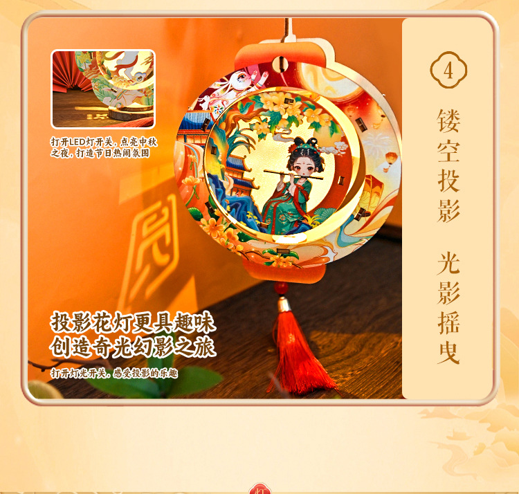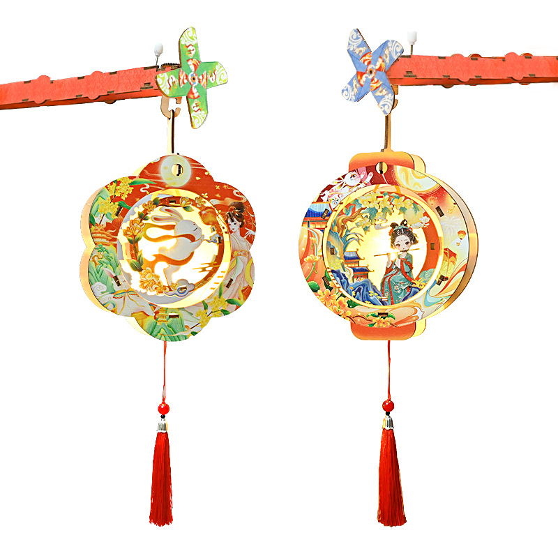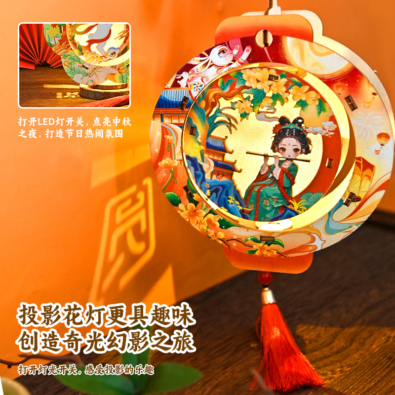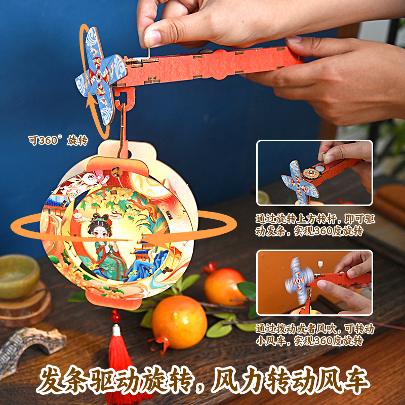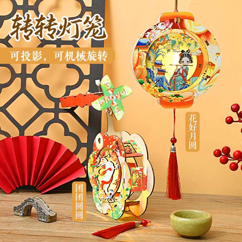 2026新款旋转灯笼diy新年投影风车灯儿童手提益智玩具宫灯材料包