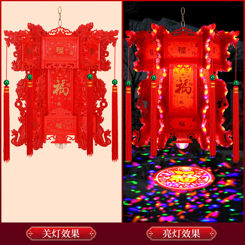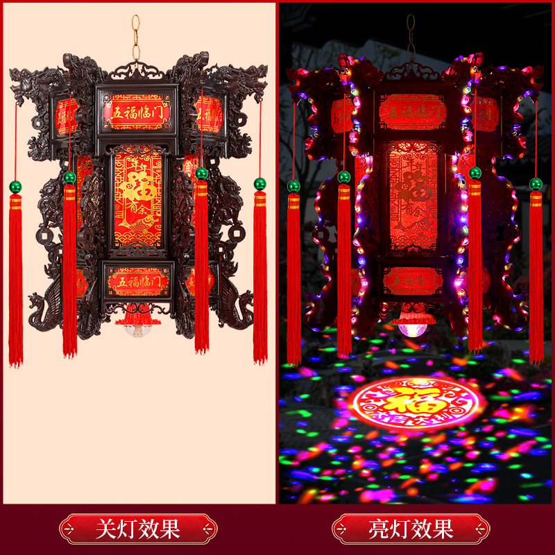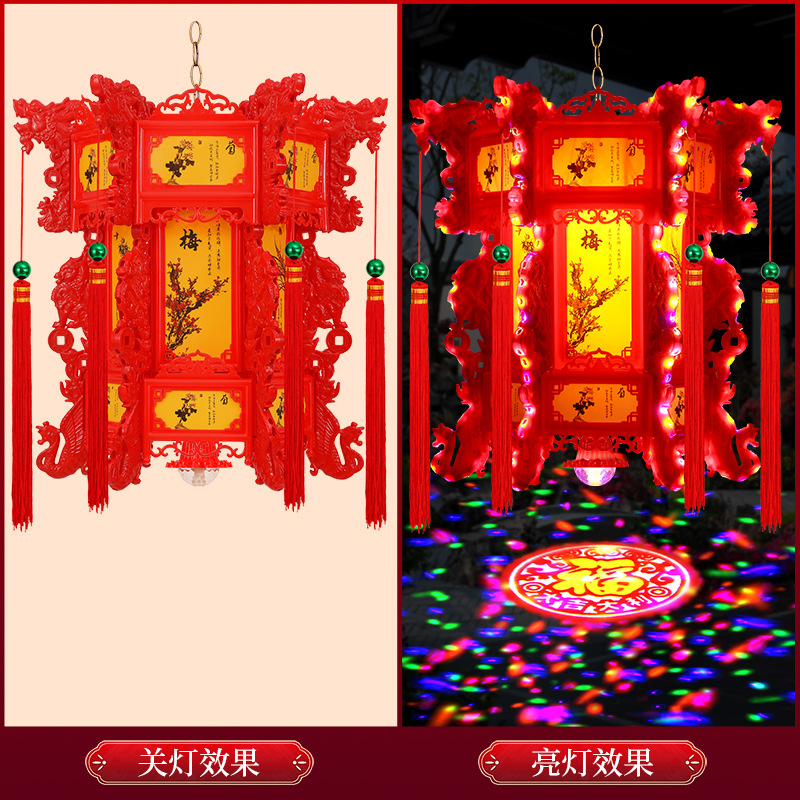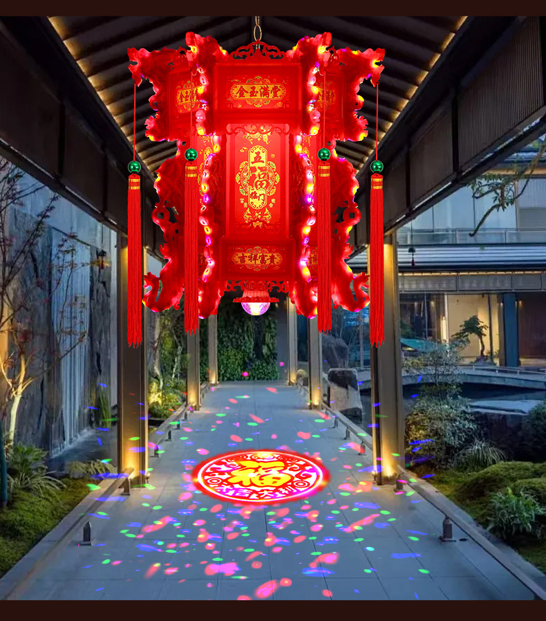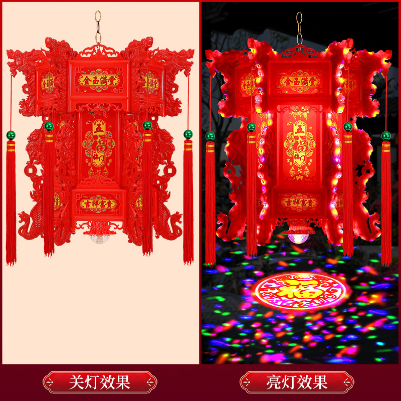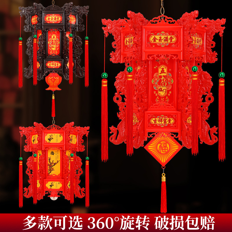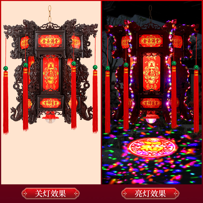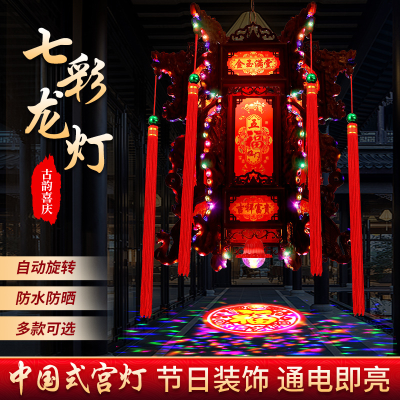 仿古六角龙灯笼中式宫灯旋转走马灯新春节元旦阳台七彩流水款灯笼
