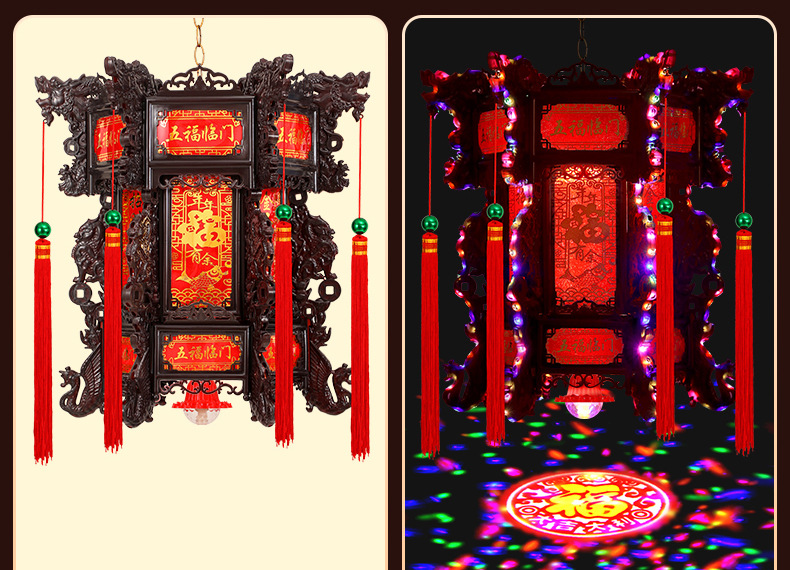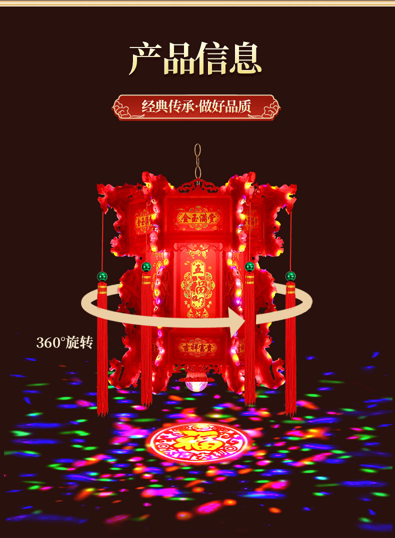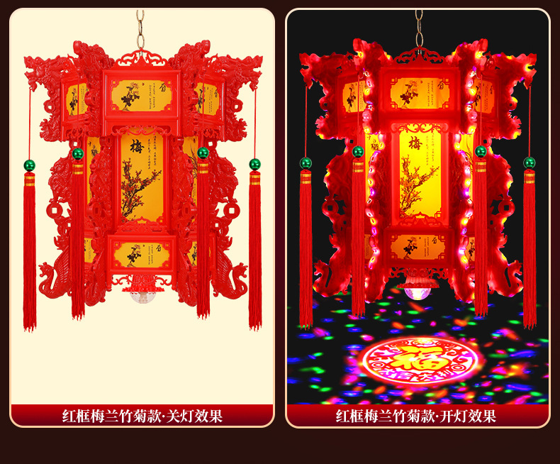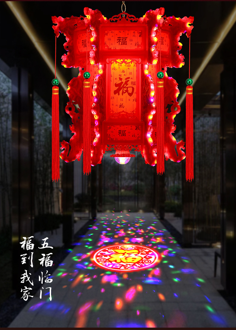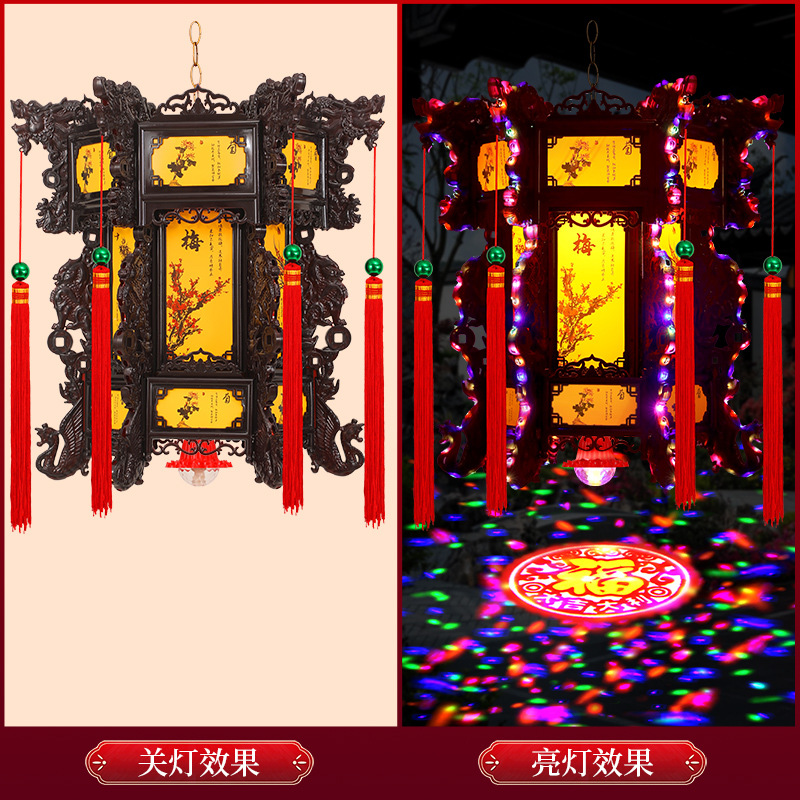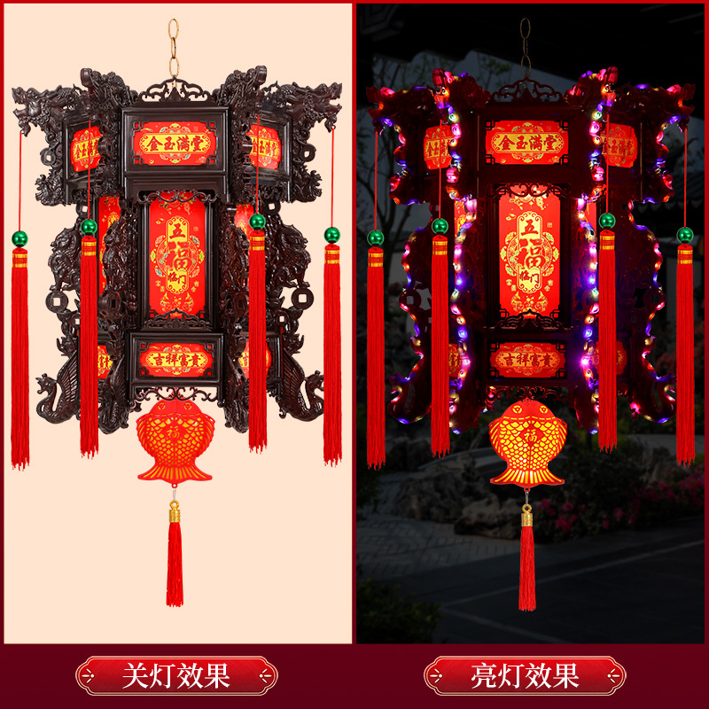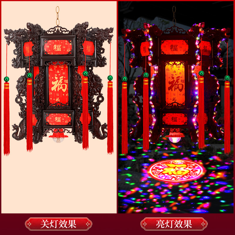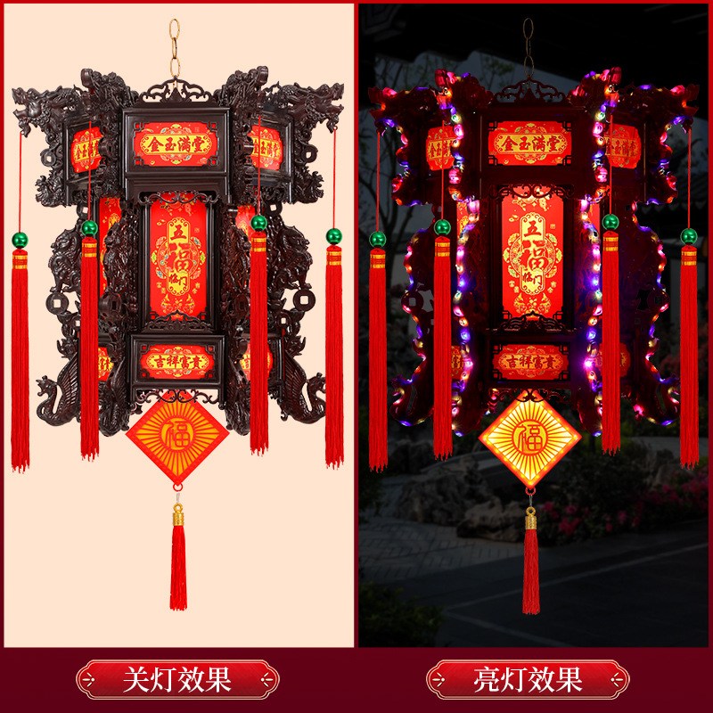 仿古六角龙灯笼中式宫灯旋转走马灯新春节元旦阳台七彩流水款灯笼