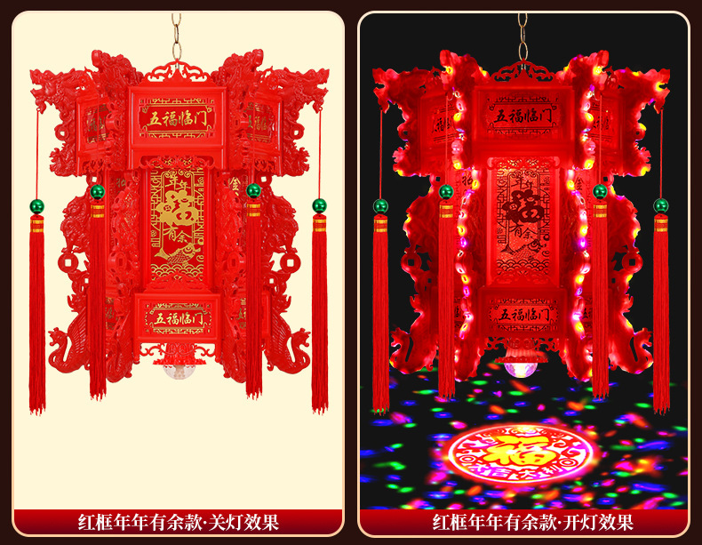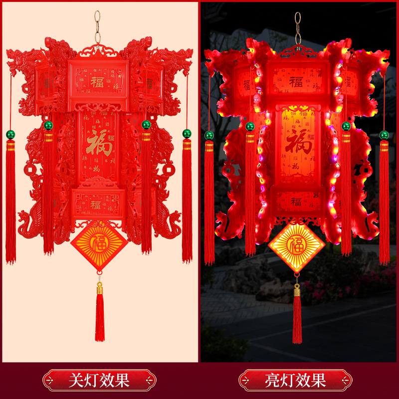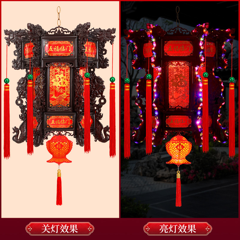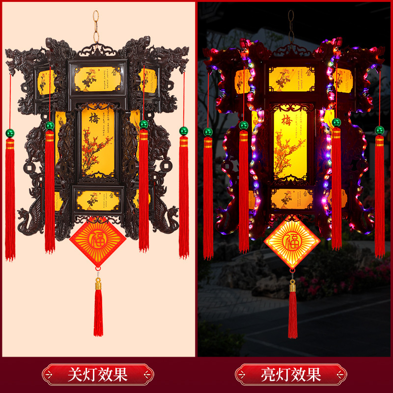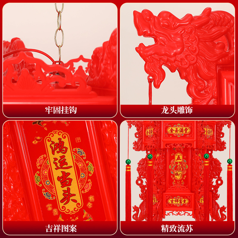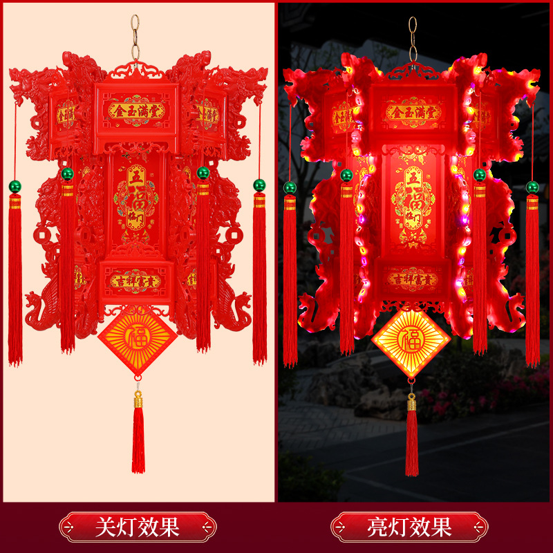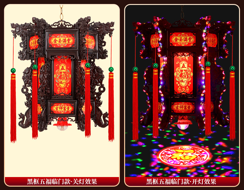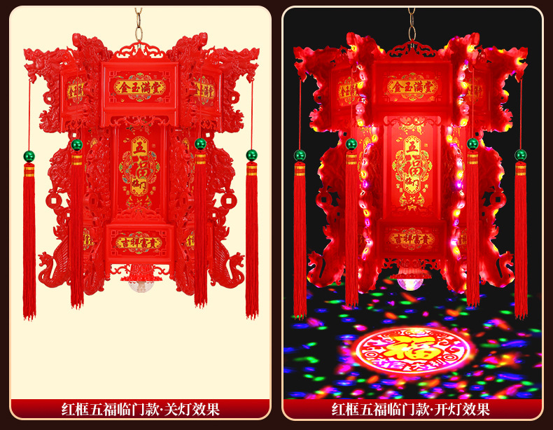 仿古六角龙灯笼中式宫灯旋转走马灯新春节元旦阳台七彩流水款灯笼