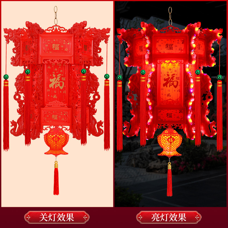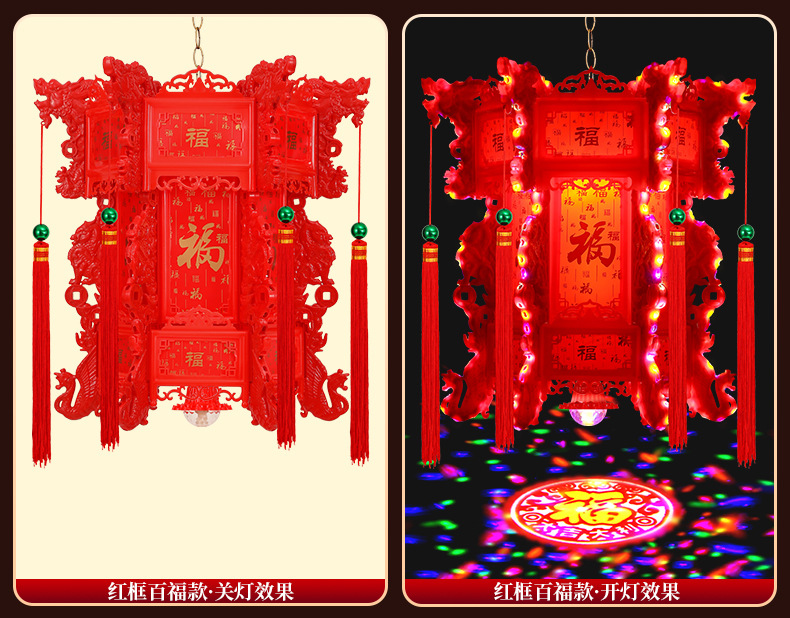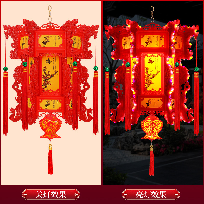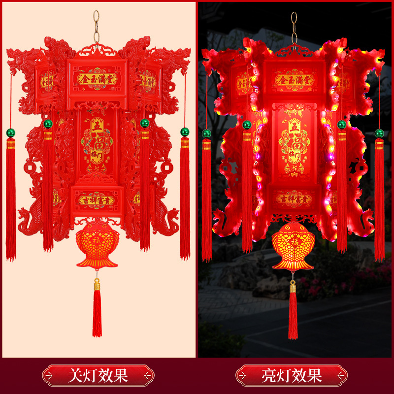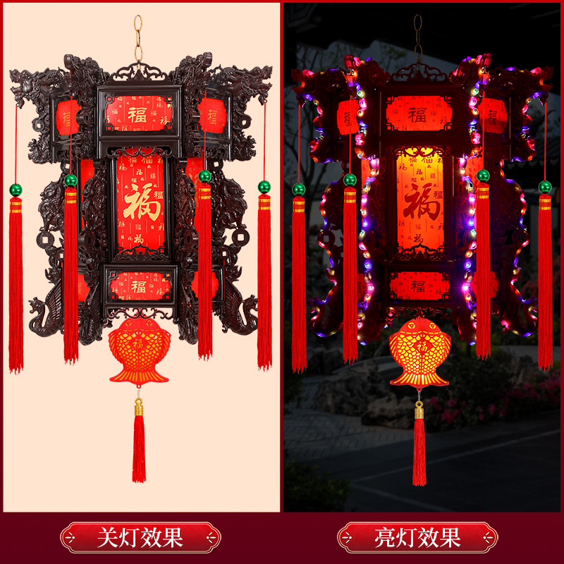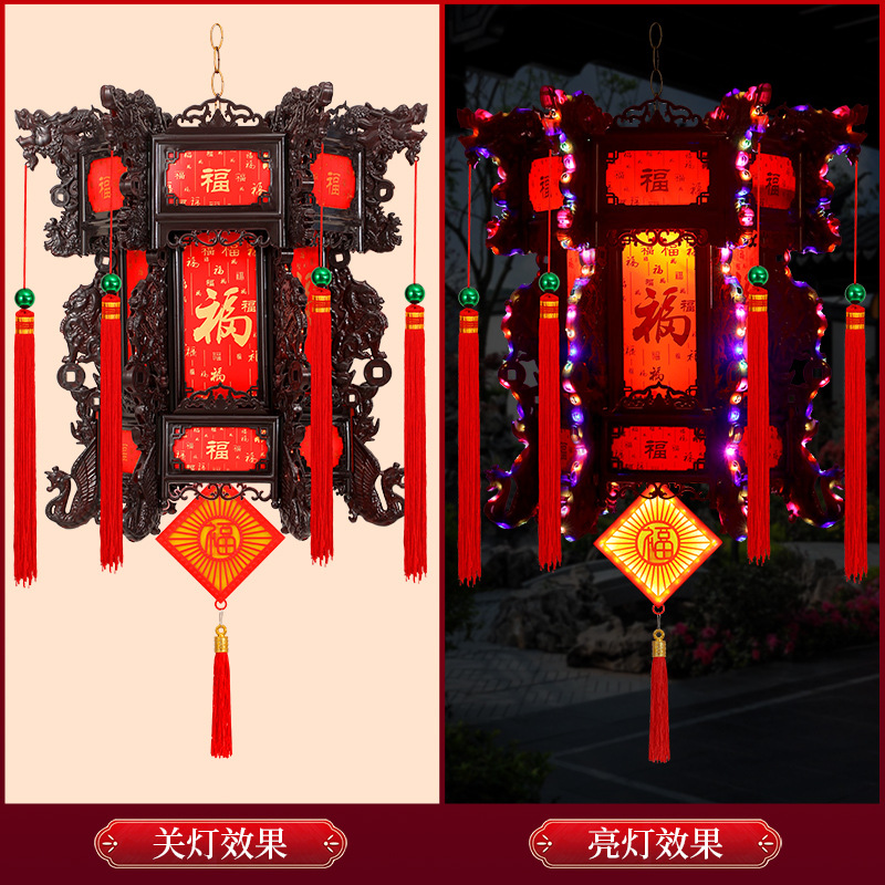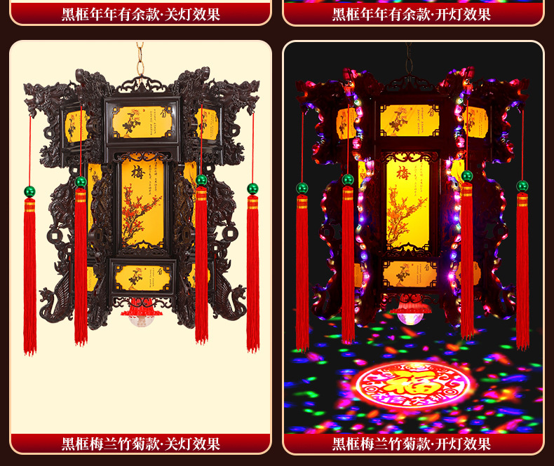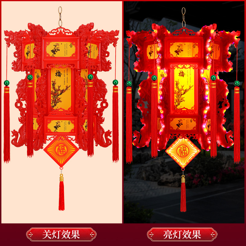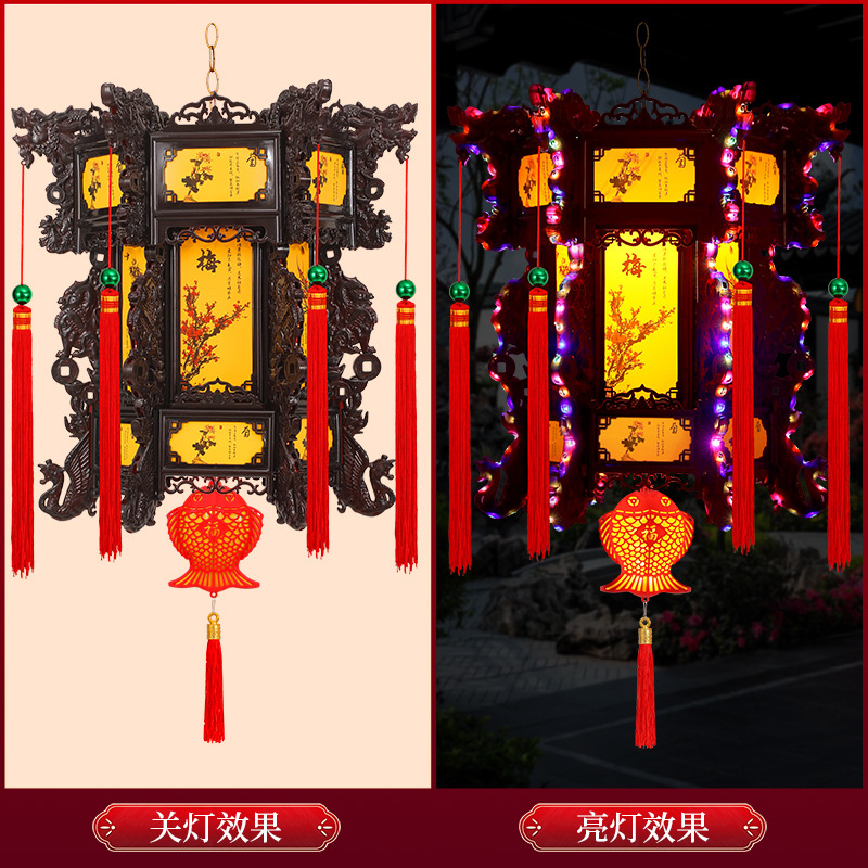 仿古六角龙灯笼中式宫灯旋转走马灯新春节元旦阳台七彩流水款灯笼