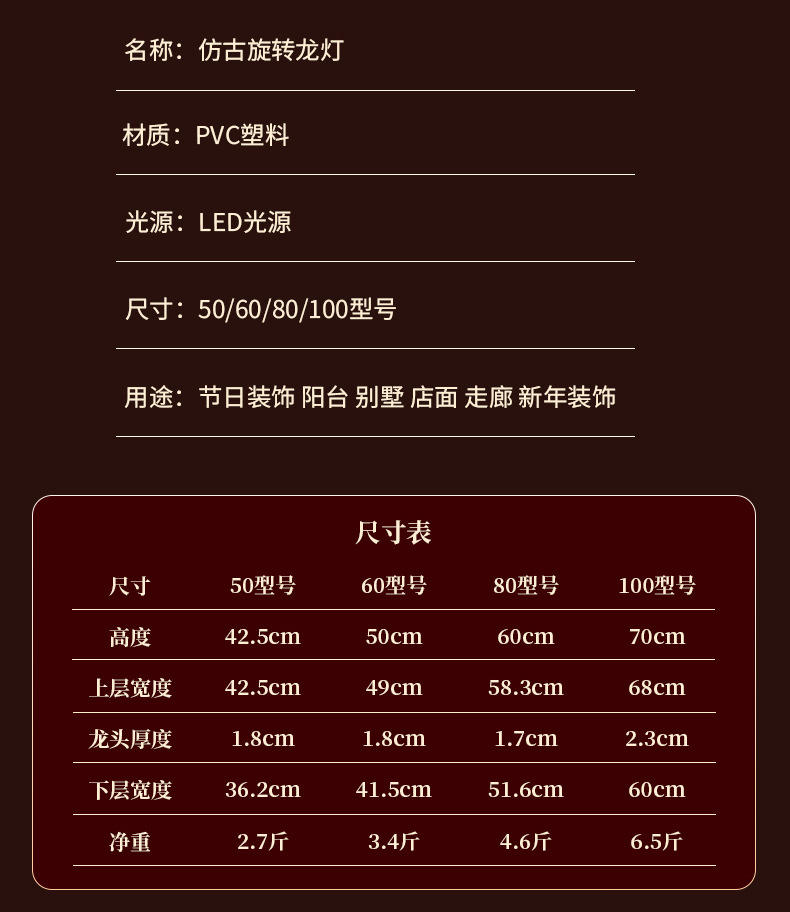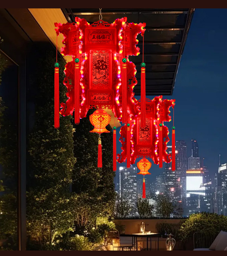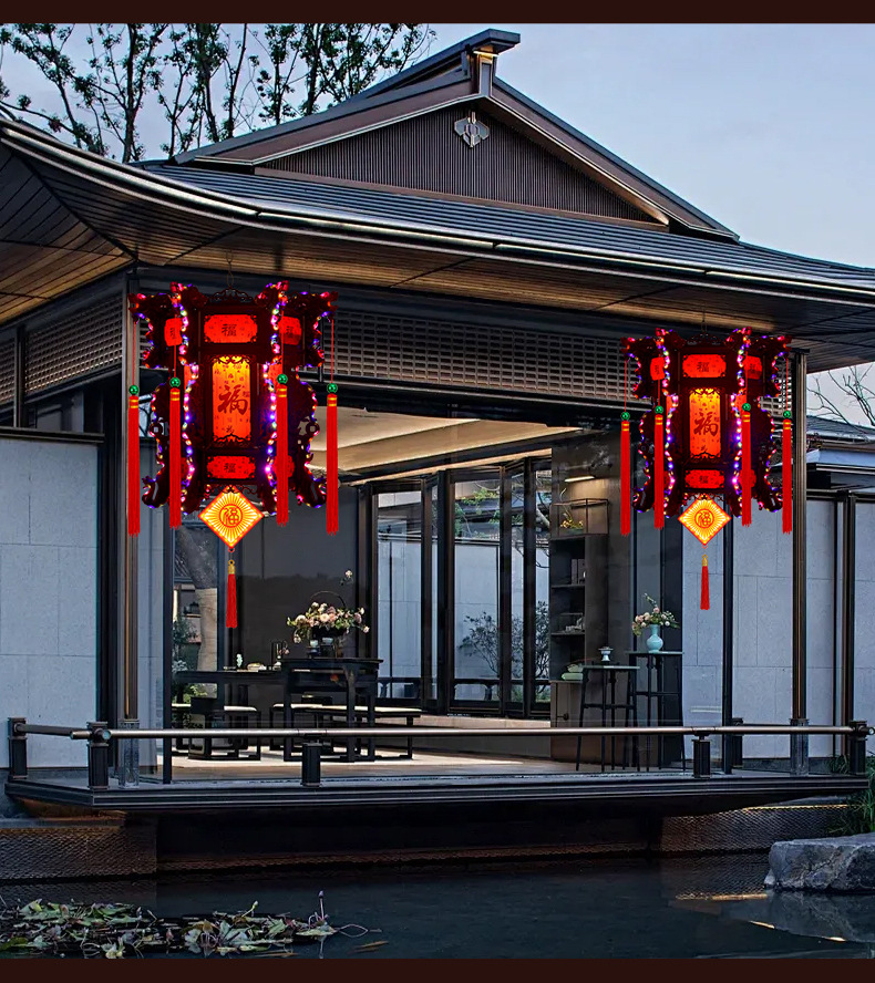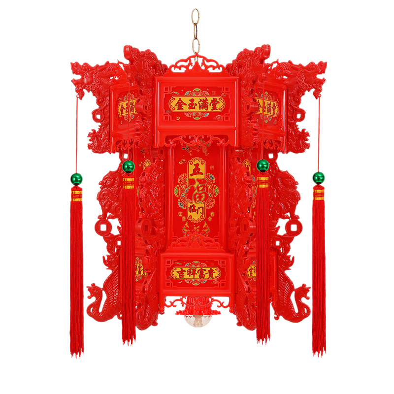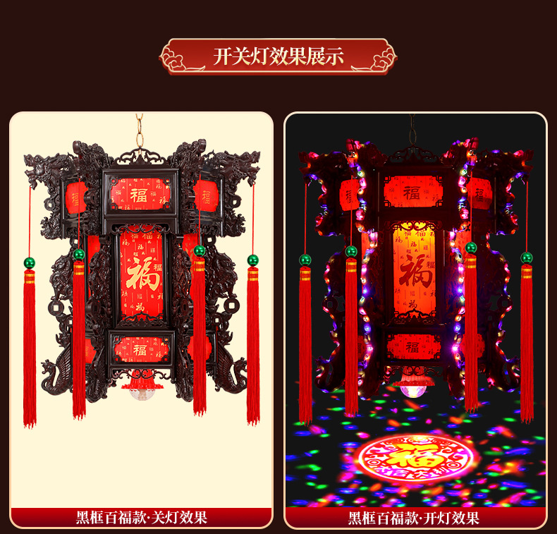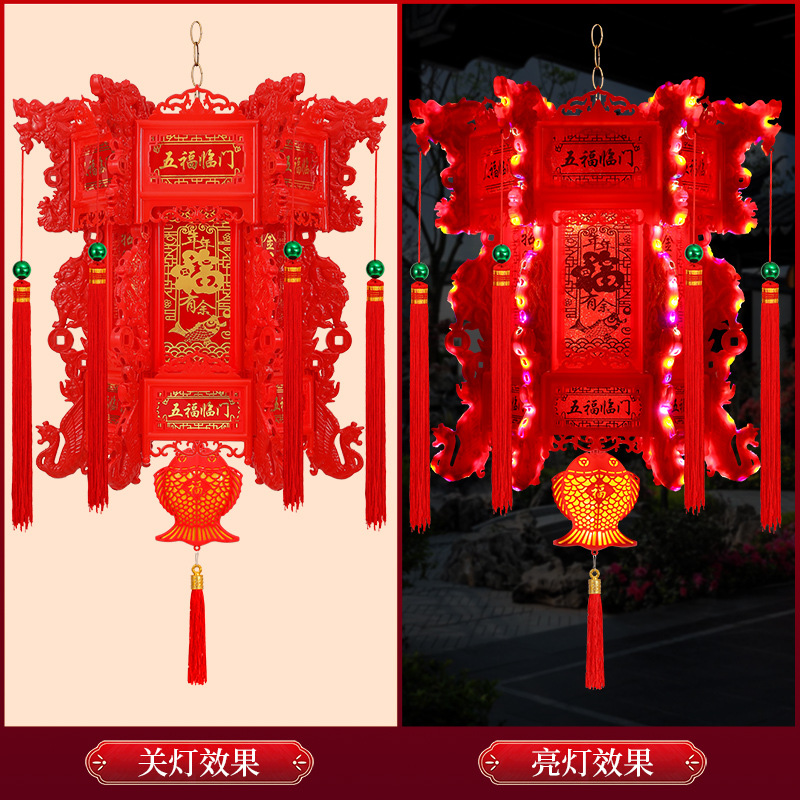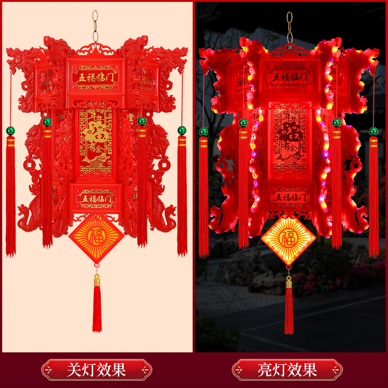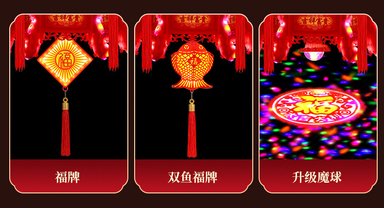 仿古六角龙灯笼中式宫灯旋转走马灯新春节元旦阳台七彩流水款灯笼