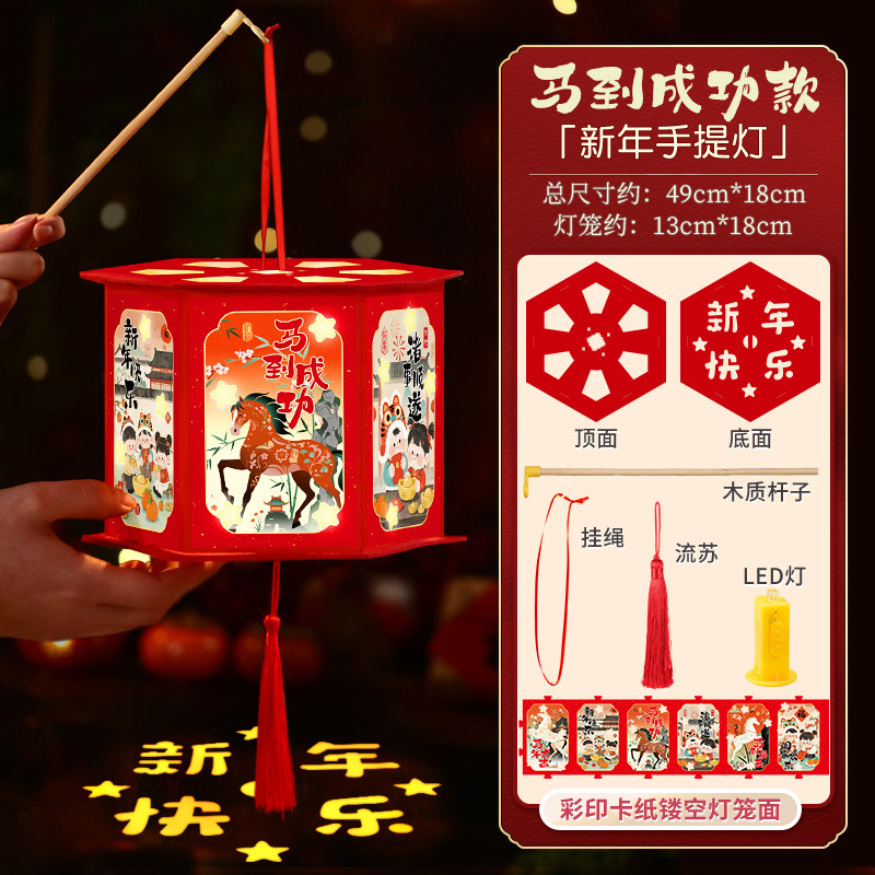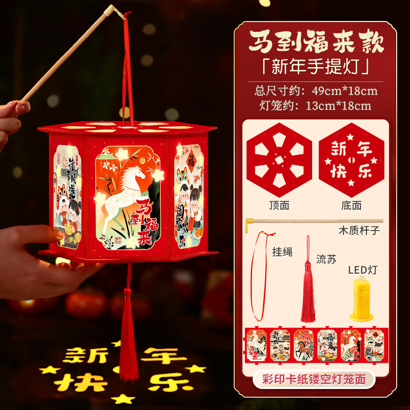 马年2026投影走马灯马年儿童diy花灯新年元旦装饰幼儿园灯笼礼物