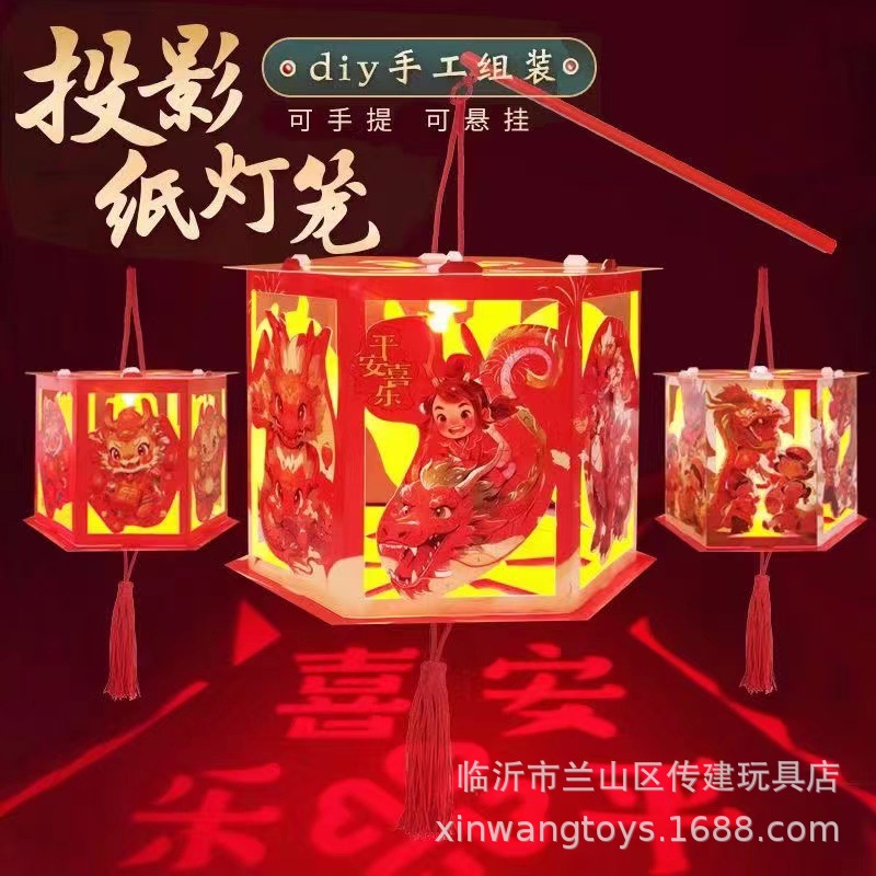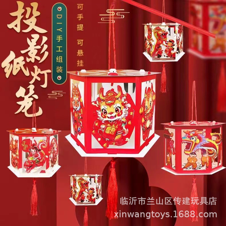 春节手工灯笼投影走马灯发光灯笼儿童手工制作材料包古风花灯龙年